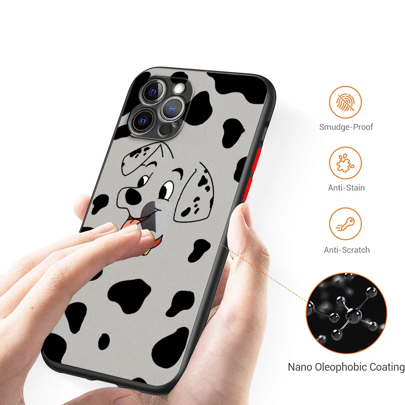 Funda translúcida esmerilada de dálmatas cien uno para iPhone de Apple, 16, 15, 14, 13, 12, 11, XS, XR, X Pro Max Plus, Mini funda de teléfono de TPU