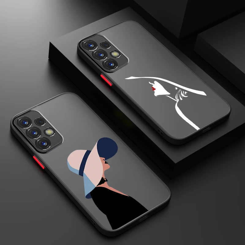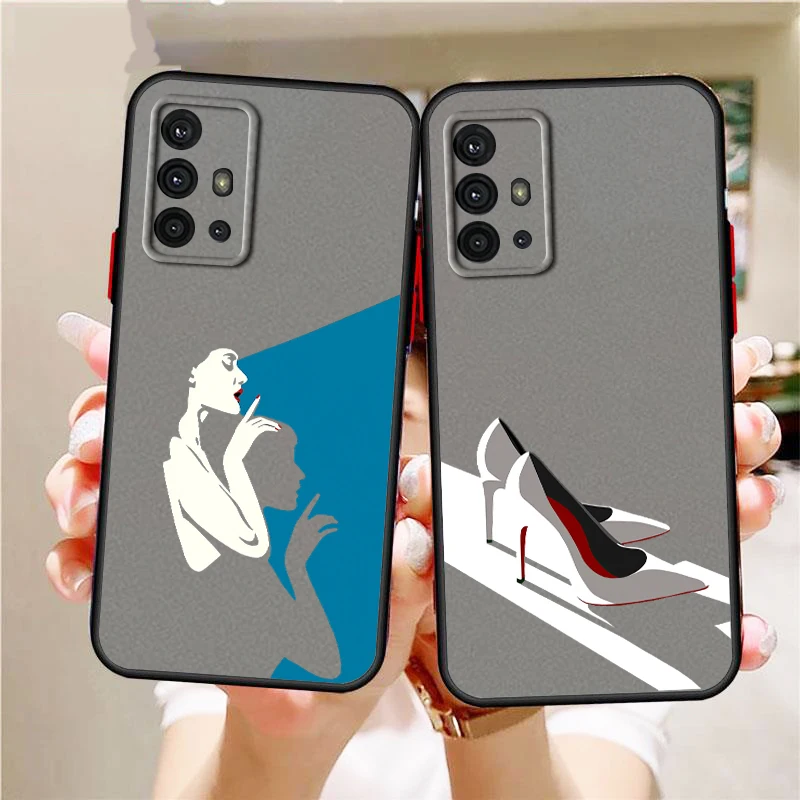 Funda translúcida esmerilada de tacón alto para mujer, carcasa de teléfono para Samsung A53, A52, A33, A32, A51, A71, A21S, A13, A73, A50, A22, A12, 5G