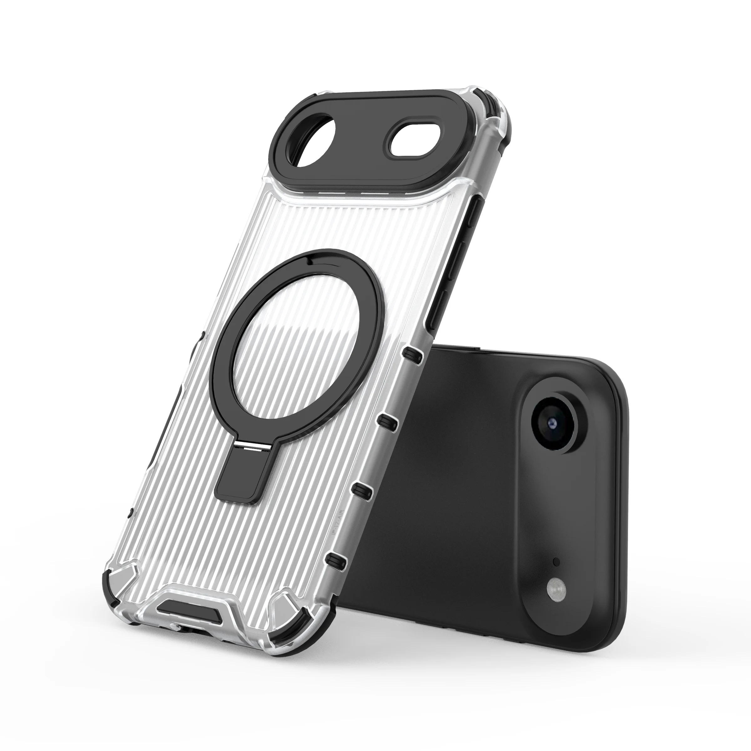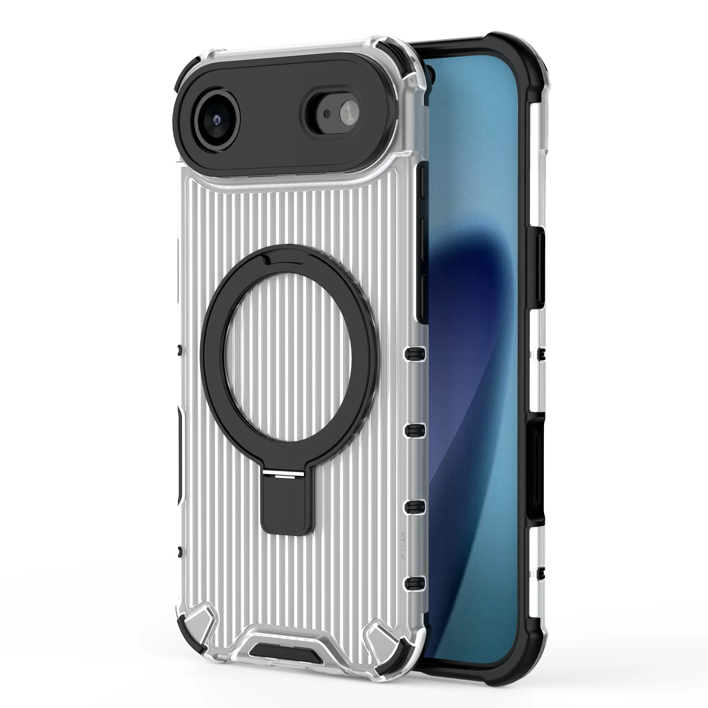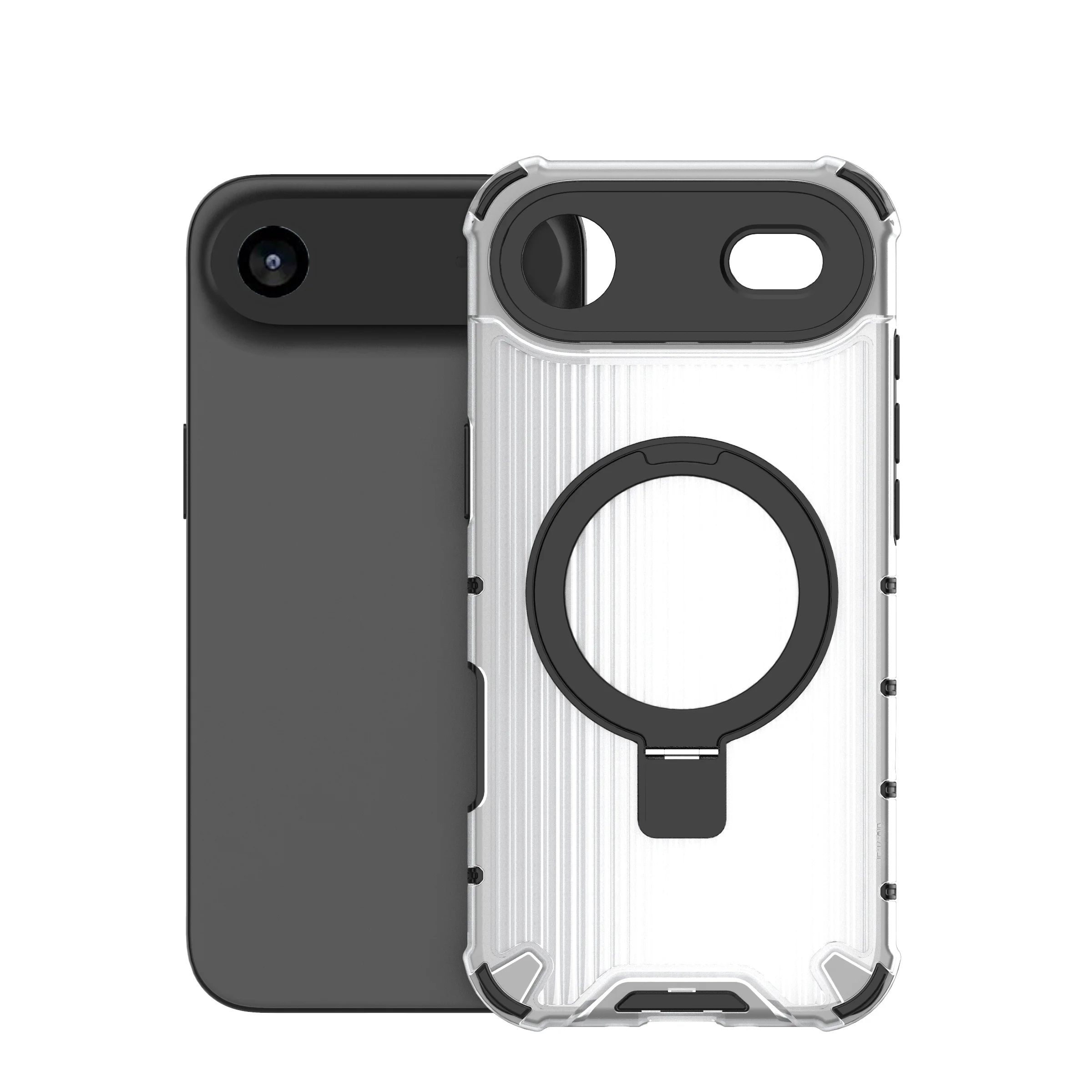 Comprar Funda translúcida con soporte de Metal con patrón corrugado para iPhone 17 Air 16 15 14 13 12 11 Plus Pro Max Airbag cubierta mate a prueba de golpes