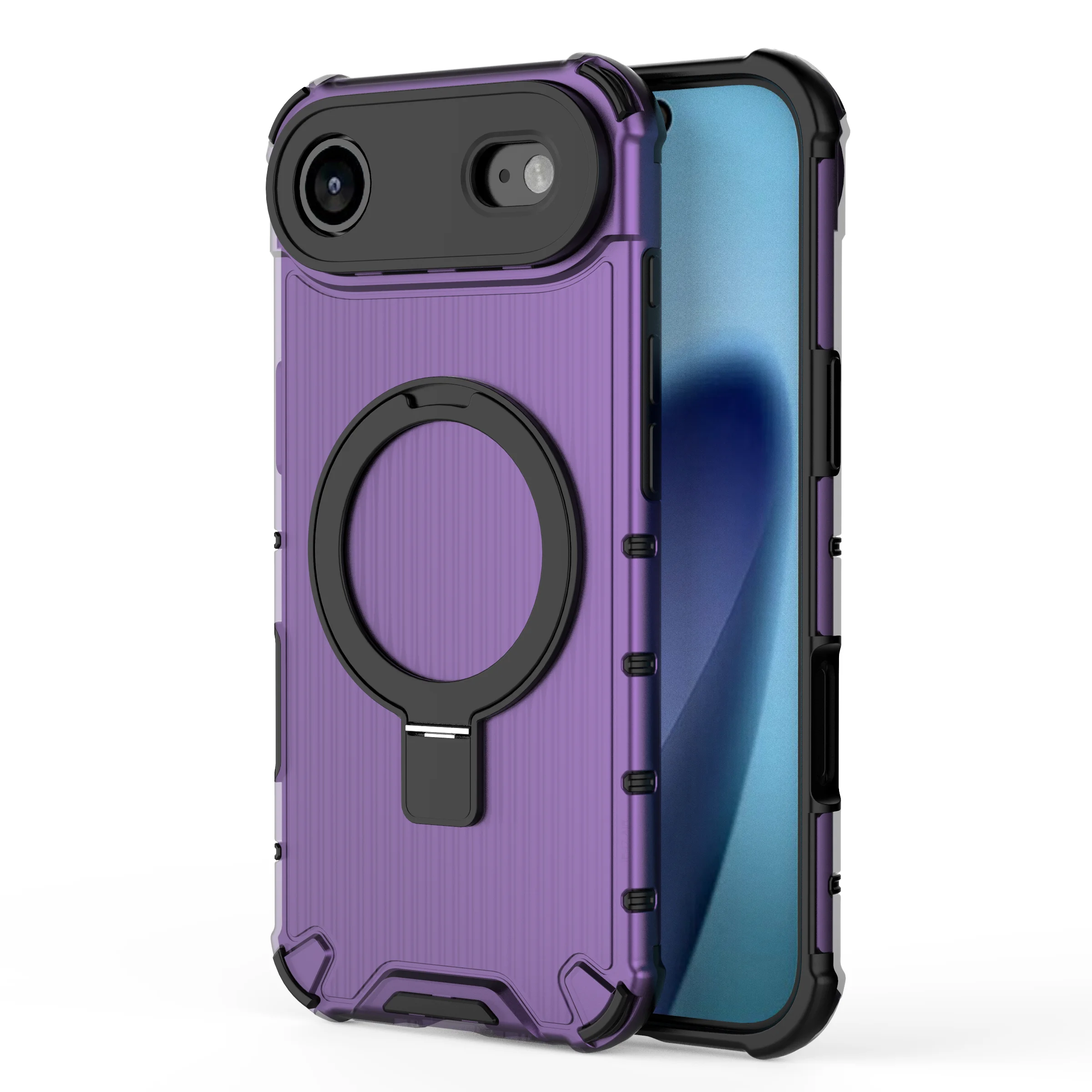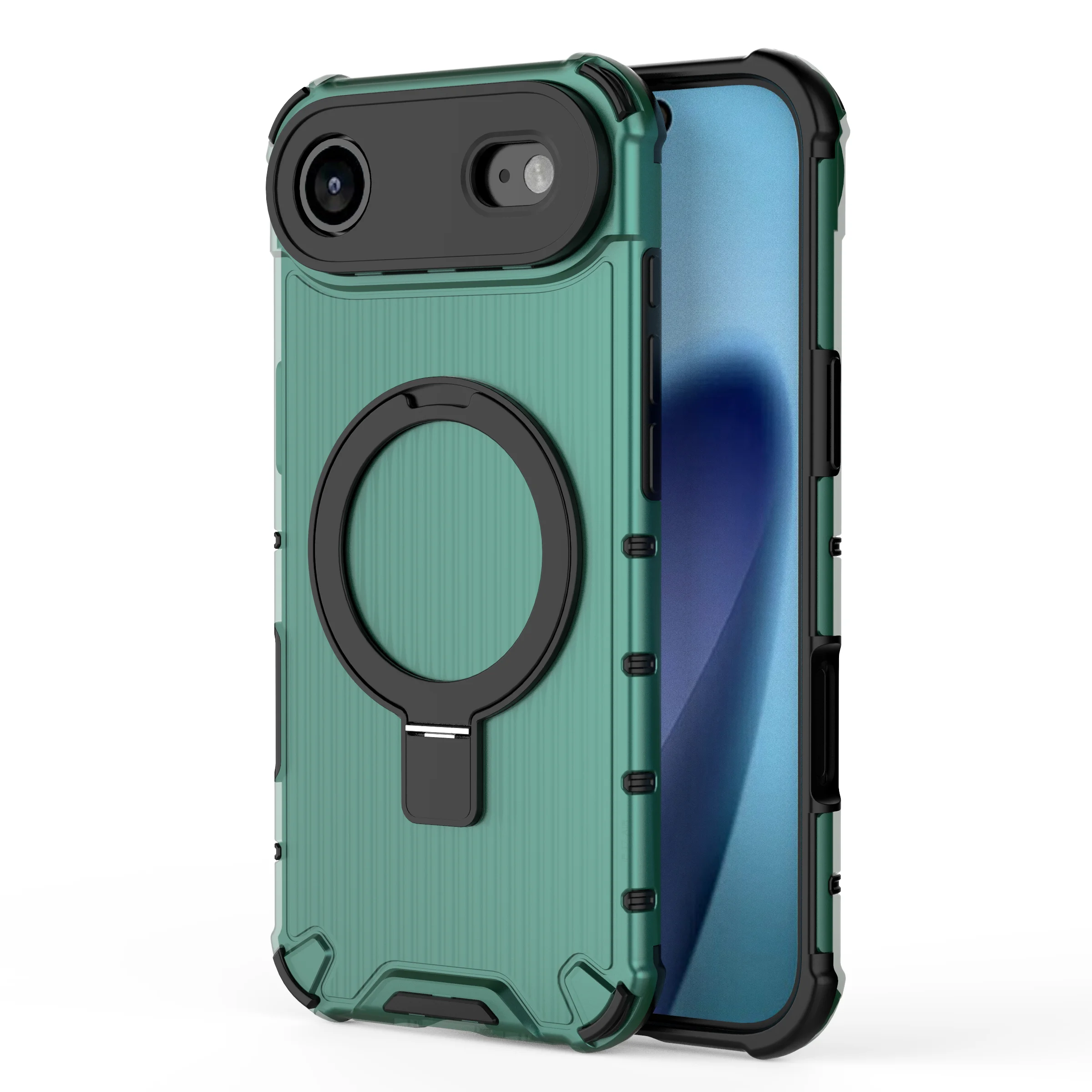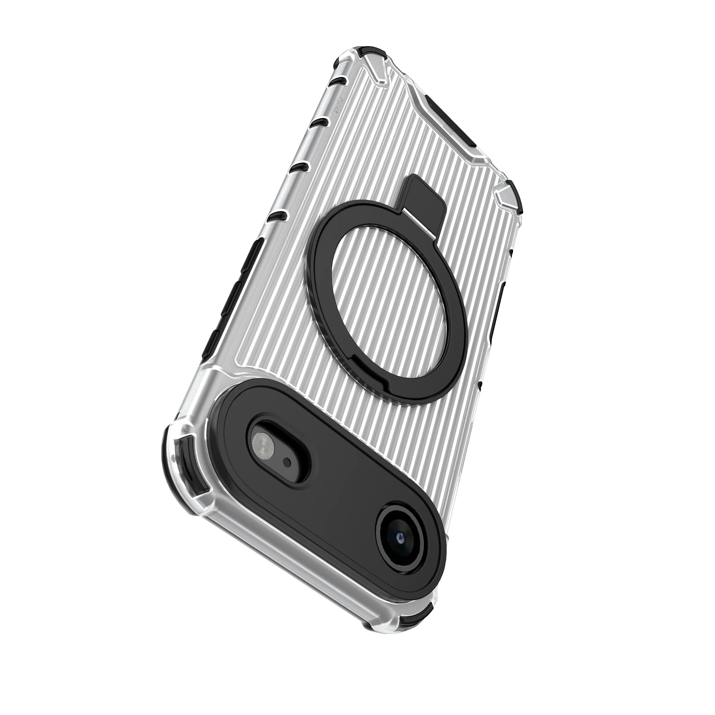 Comprar Funda translúcida con soporte de Metal con patrón corrugado para iPhone 17 Air 16 15 14 13 12 11 Plus Pro Max Airbag cubierta mate a prueba de golpes