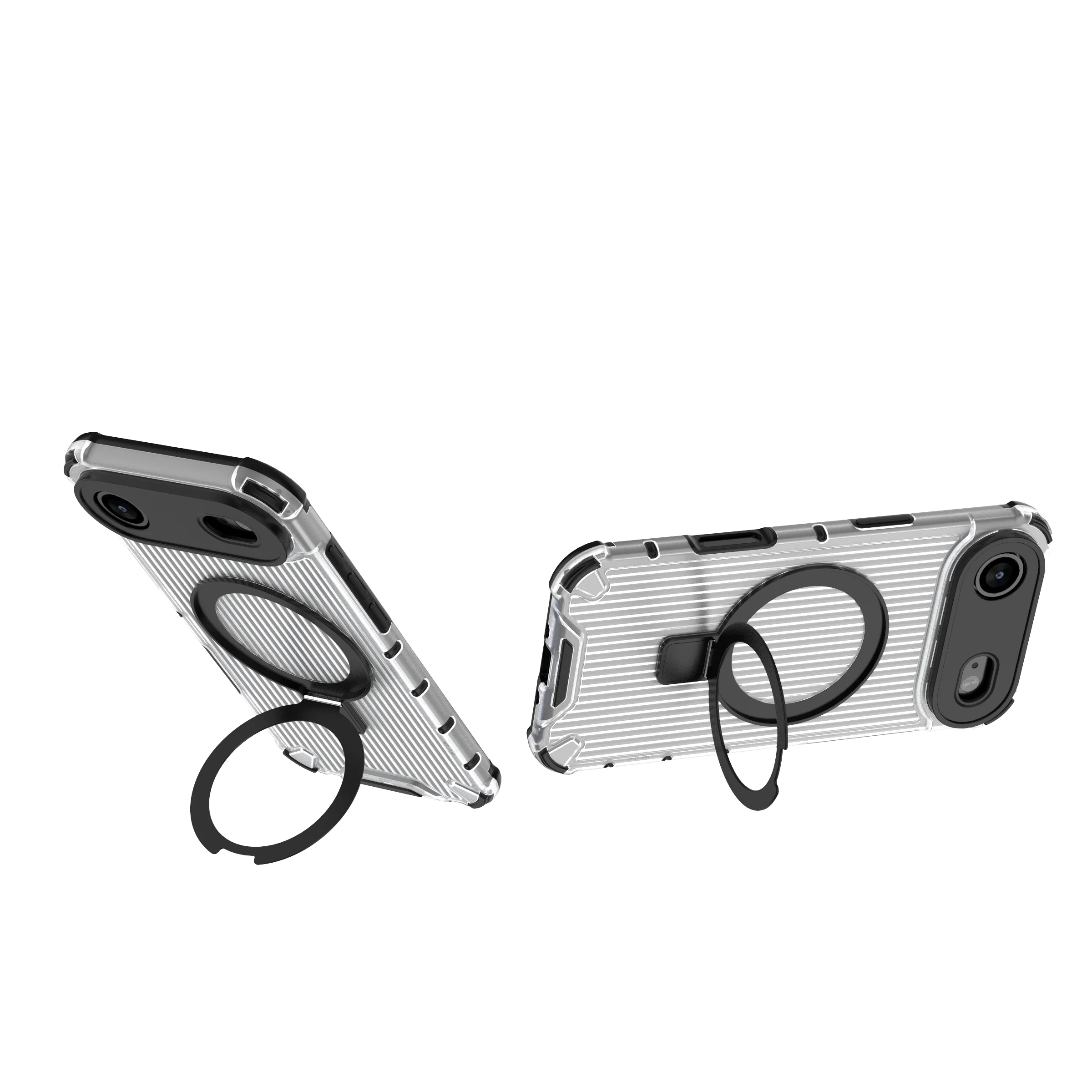 Funda translúcida con soporte de Metal con patrón corrugado para iPhone 17 Air 16 15 14 13 12 11 Plus Pro Max Airbag cubierta mate a prueba de golpes