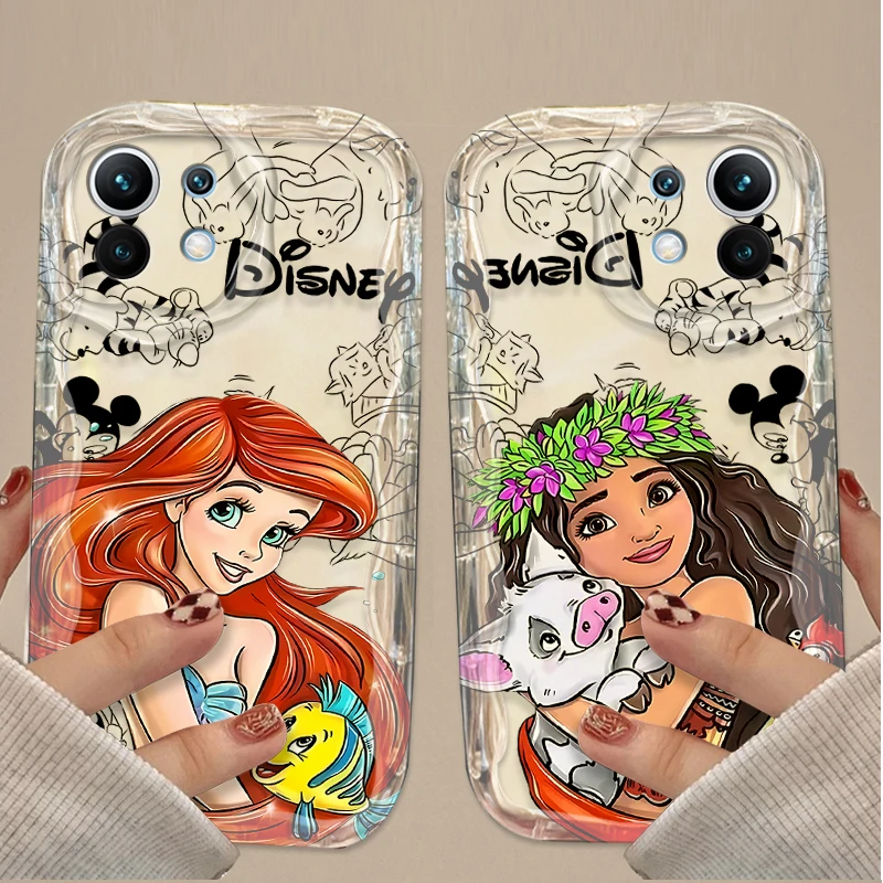 Comprar Funda transparente 3D de princesa de Disney para Xiaomi 14T 13T 12T 13 12 11 11i Lite 5G 10T POCO X5 X6 Pro X3 NFC X4 GT F3 F4 F5 F6 M6 M5S C65