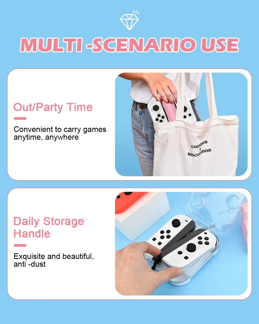 4 Colors Transparent Case For NS Switch/OLED Joycons Handle Storage Shell For Joy-cons Dust-proof Magnetic Clear Protective BoxFeature :❤️ Specially designed Storage Case for NS Switch & OLED Joycons both compatible .