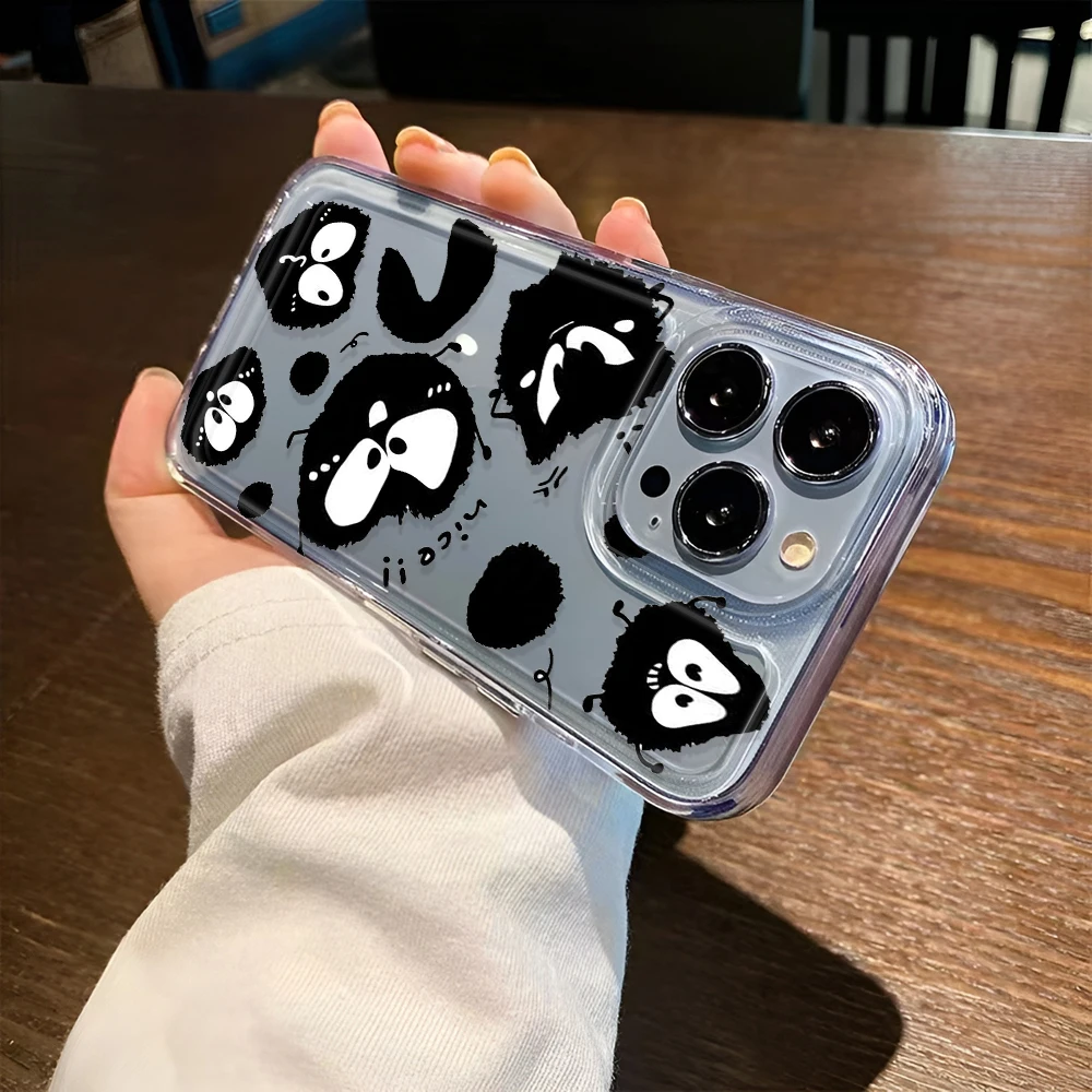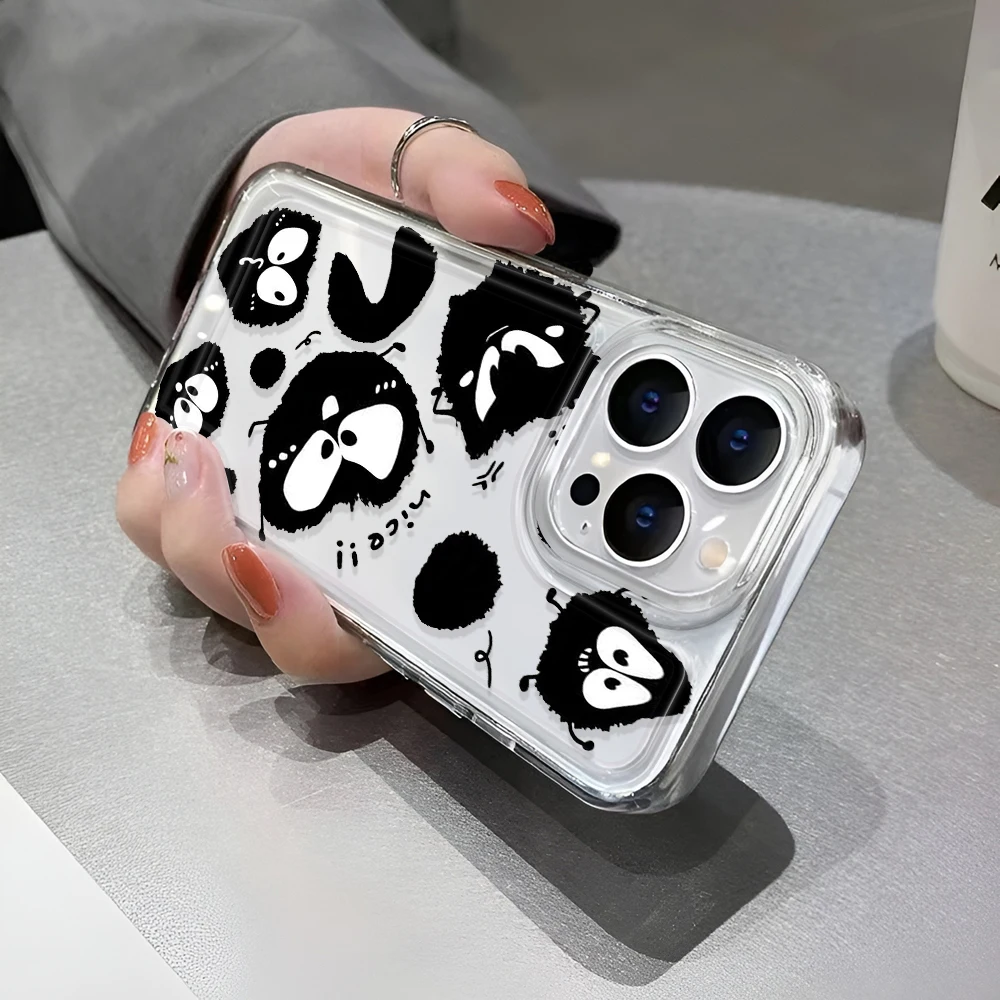Funda transparente bonita de pequeño monstruo negro para iPhone 16 16e 15 14 13 12 11 Pro Max fundas de parachoques