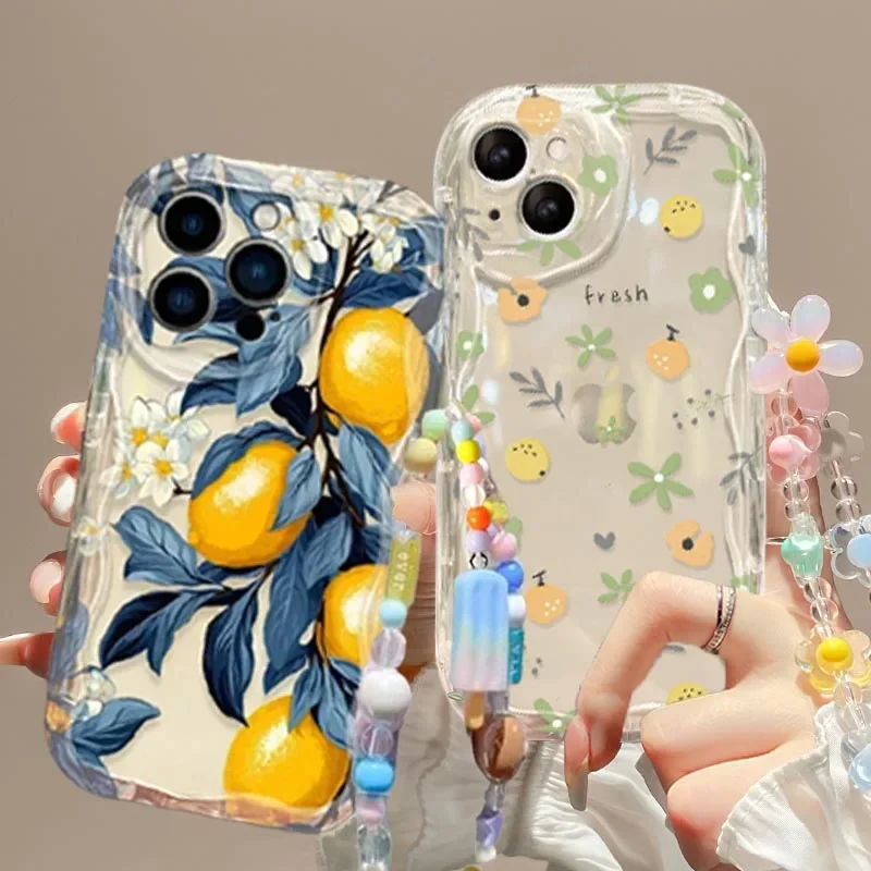 Comprar Funda transparente con cadena y pulsera de flor de limón para Samsung Galaxy A56 A36 A26 A16 A06 A55 A35 A15 A25 A05 A54 A52 A03 funda de silicona suave