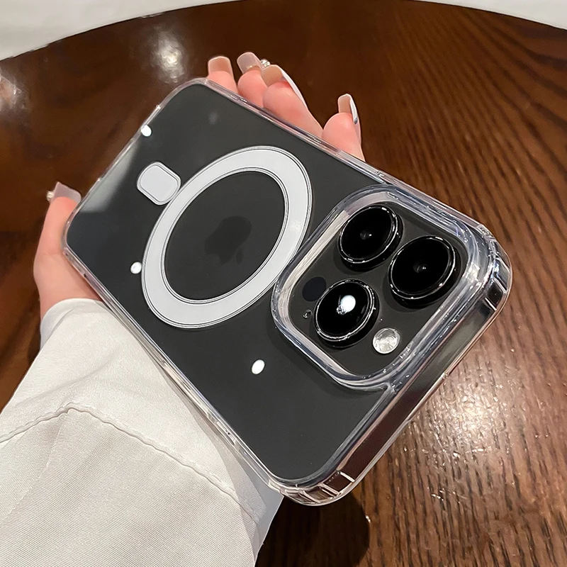 Transparente para Magesafe funda de carga inalámbrica magnética para iPhone 7 8 Xs 11 12 13 14 15 16 17 Pro Max Air Plus funda a prueba de golpes