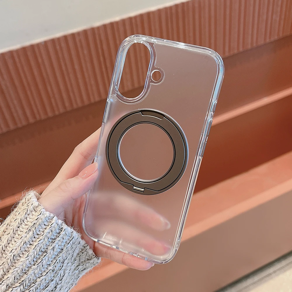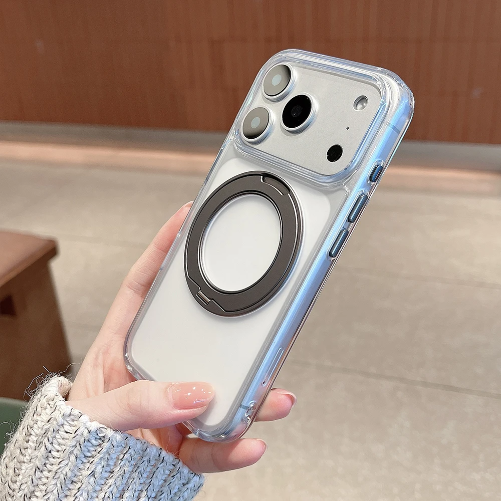 Funda transparente con soporte de Metal oculto 360 para carga inalámbrica magnética para Iphone 14 13 15 16pro 17pro 17 Pro Max Air Compatible con funda MagSafe