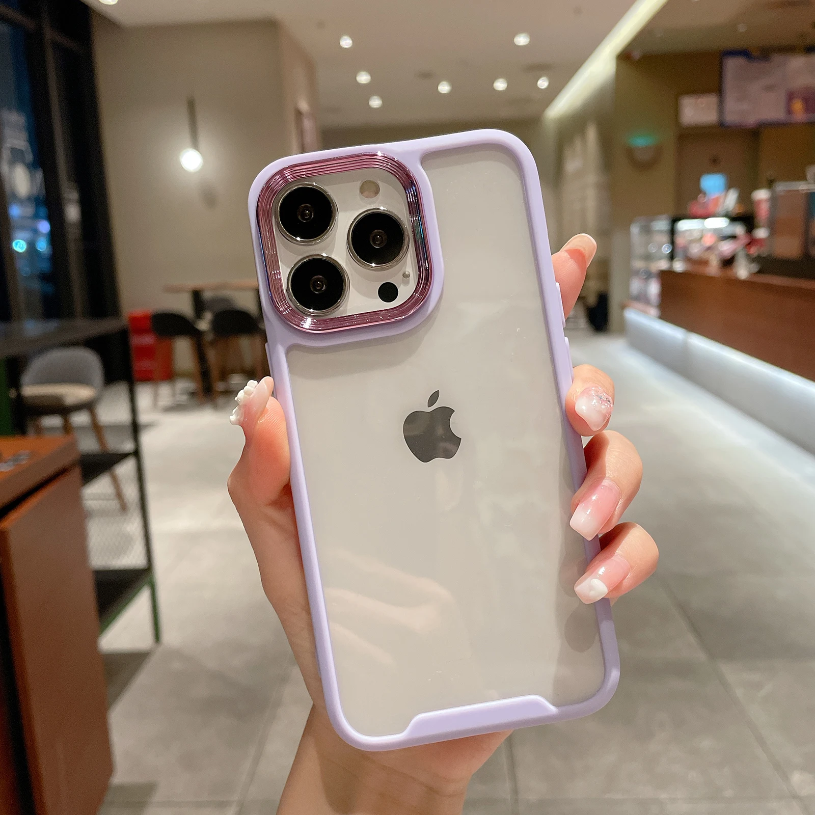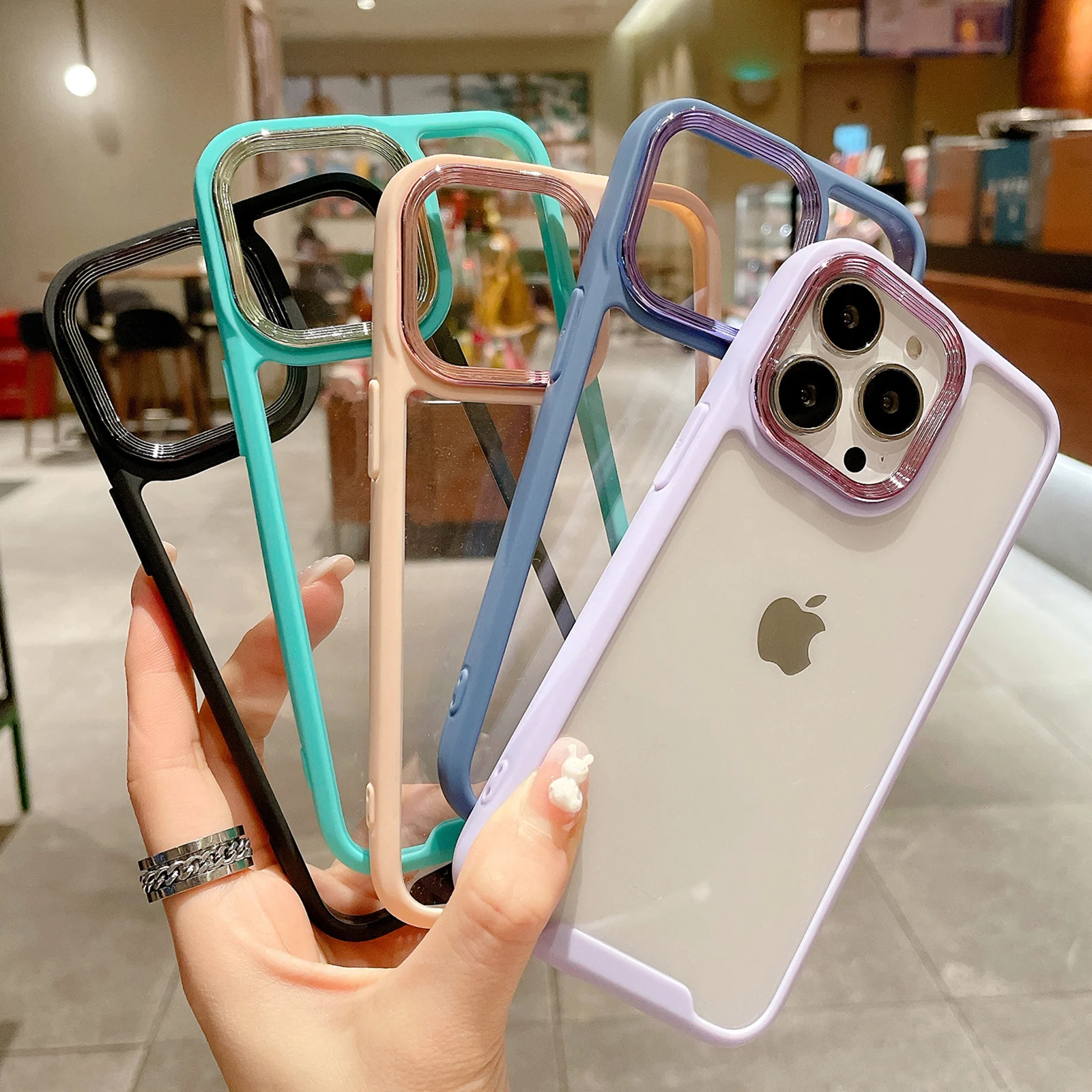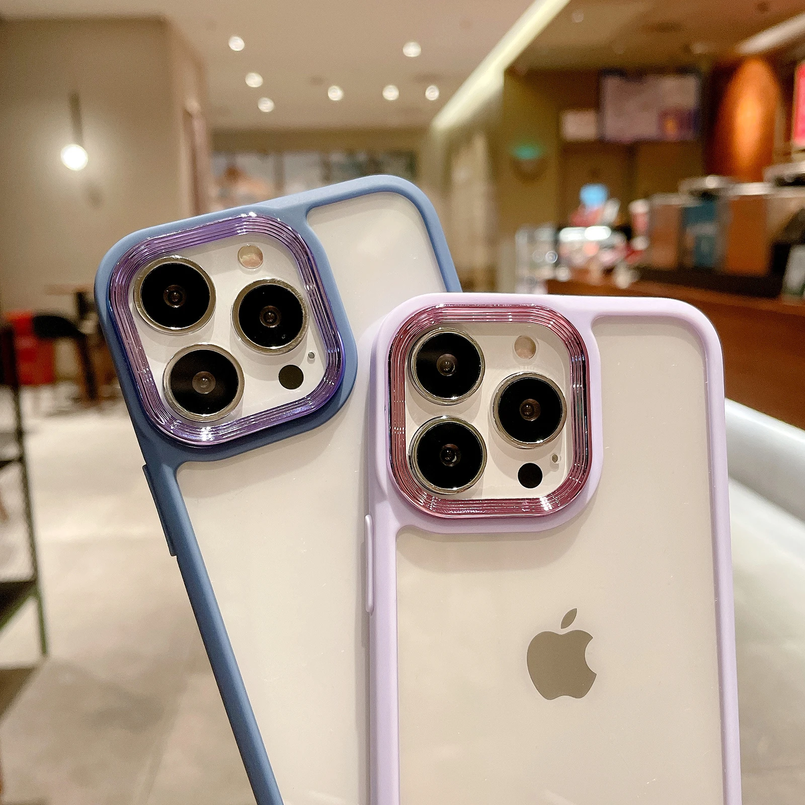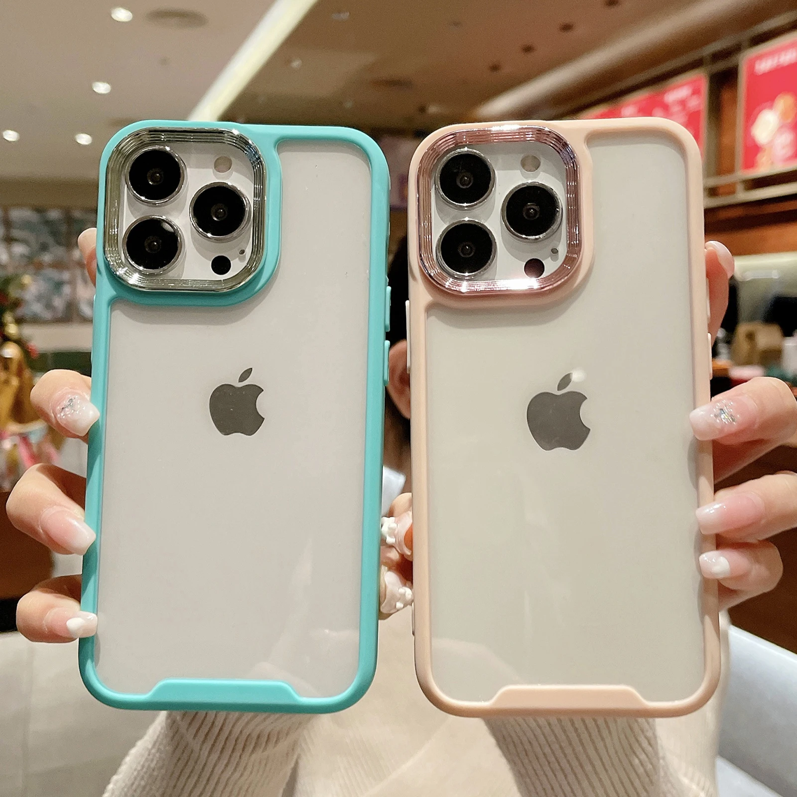Comprar Funda transparente chapada de lujo para iPhone 15 Pro Max, 14, 13, 12, 11 Pro Max, XS Max, XR, X, 7, 8 Plus, protección de cámara, cubierta suave