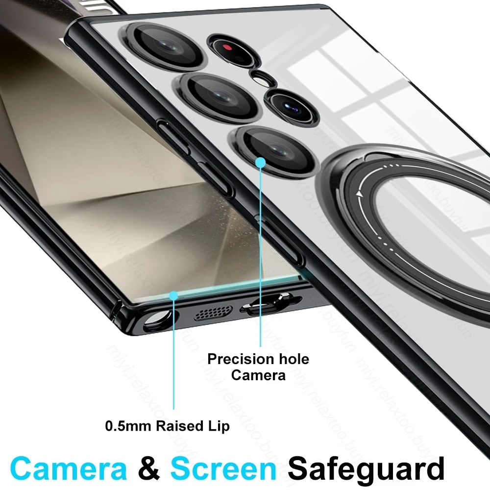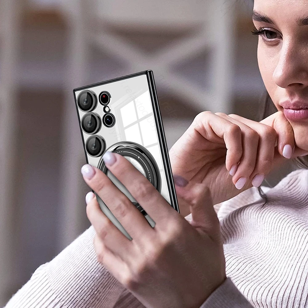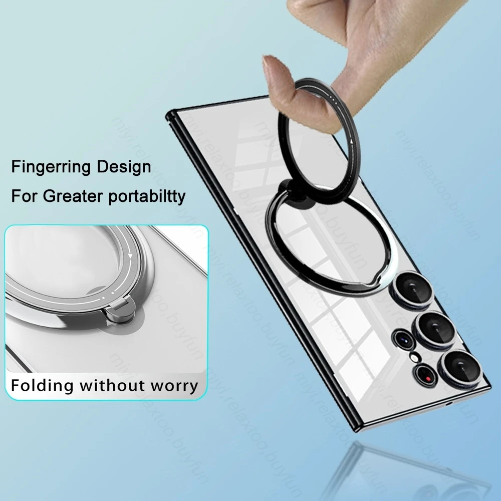 Comprar Funda transparente chapada para Samsung Galaxy S24 Ultra Sumsung S 24 Plus S24Ultra, soporte de anillo, Protector de cámara, cubierta de teléfono