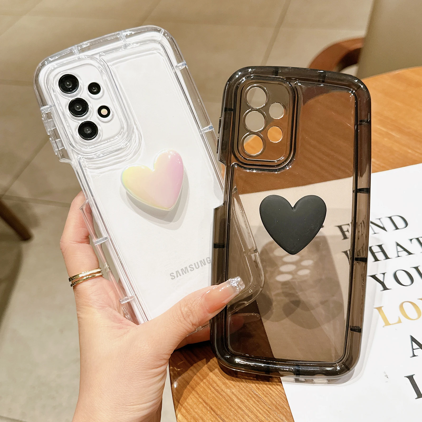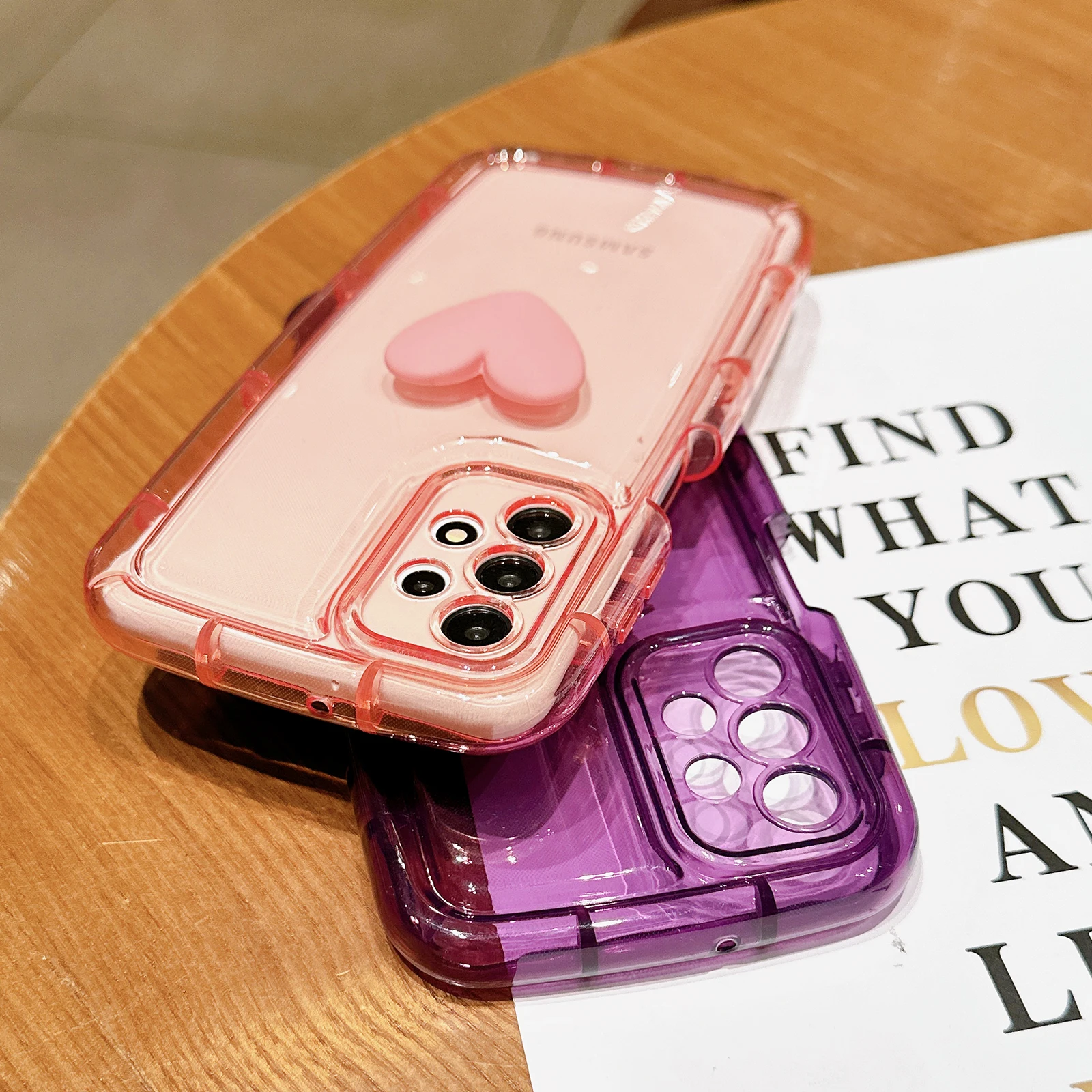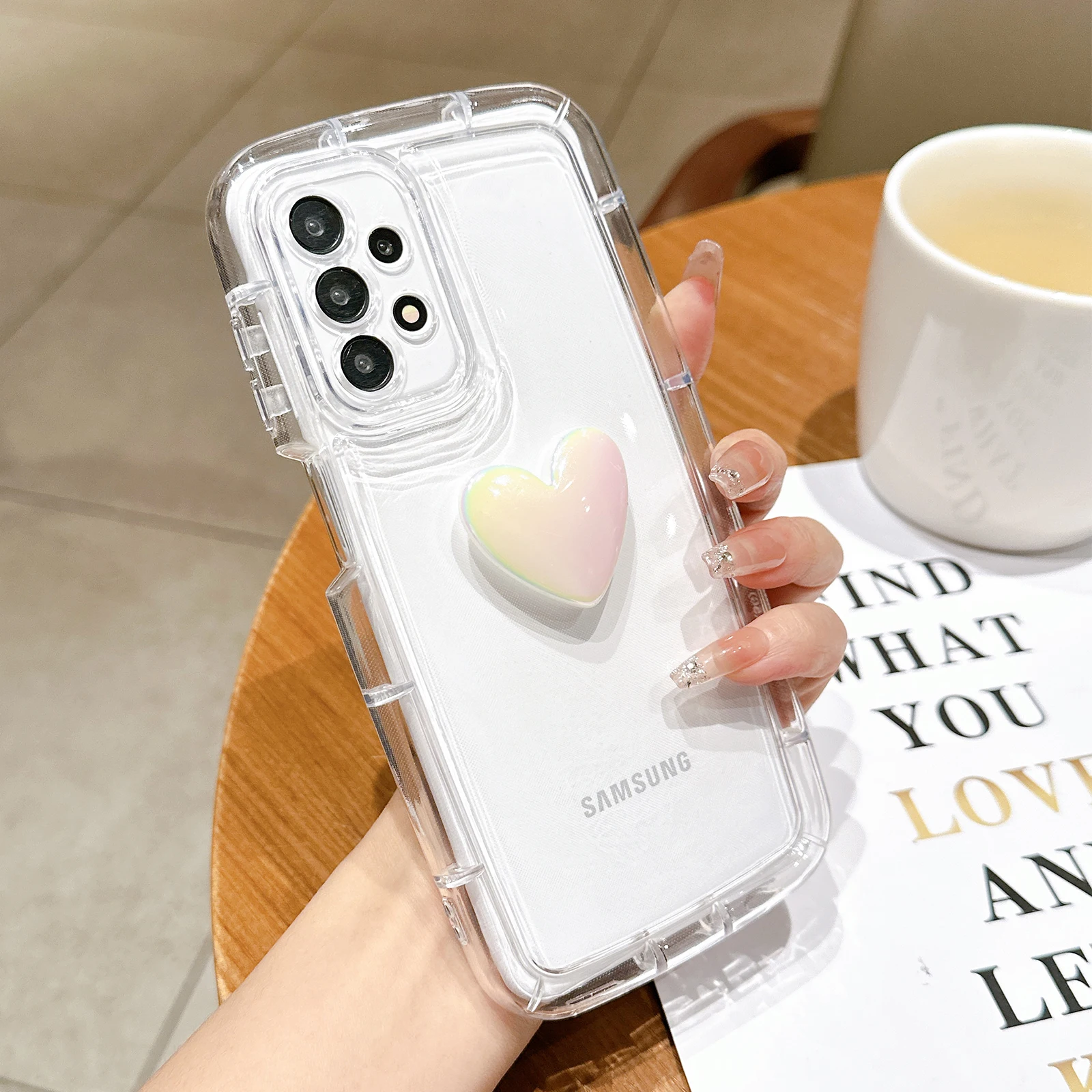 Funda transparente con corazón 3D para Samsung Galaxy, carcasa suave a prueba de golpes, bonita, para S23, S22, S21 Ultra Plus, A54, A52, A34, A14, A32, A13, A12, A51