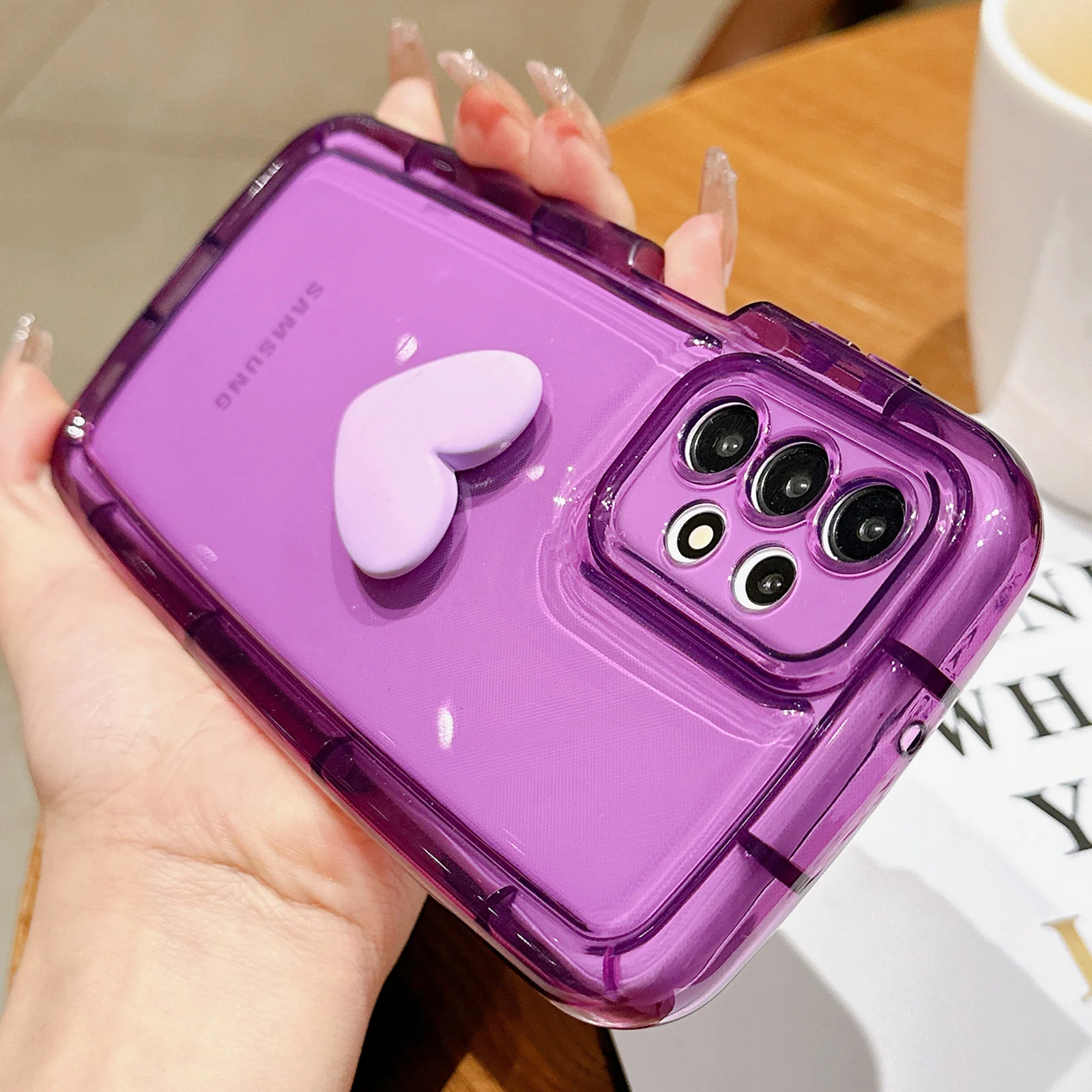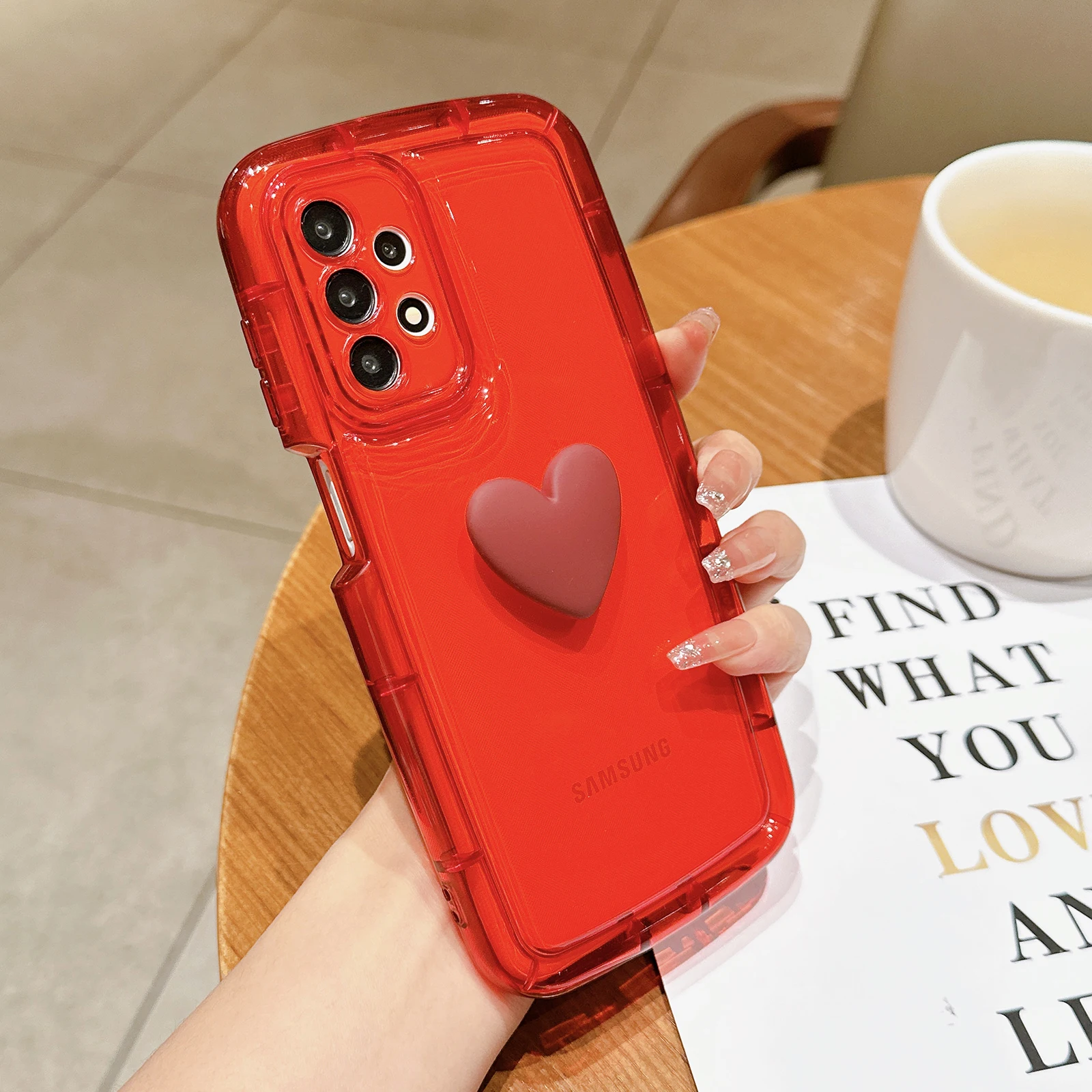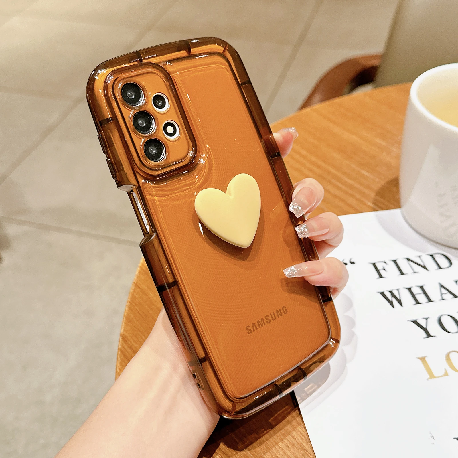 Funda transparente con corazón 3D para Samsung Galaxy, carcasa suave a prueba de golpes, bonita, para S23, S22, S21 Ultra Plus, A54, A52, A34, A14, A32, A13, A12, A51