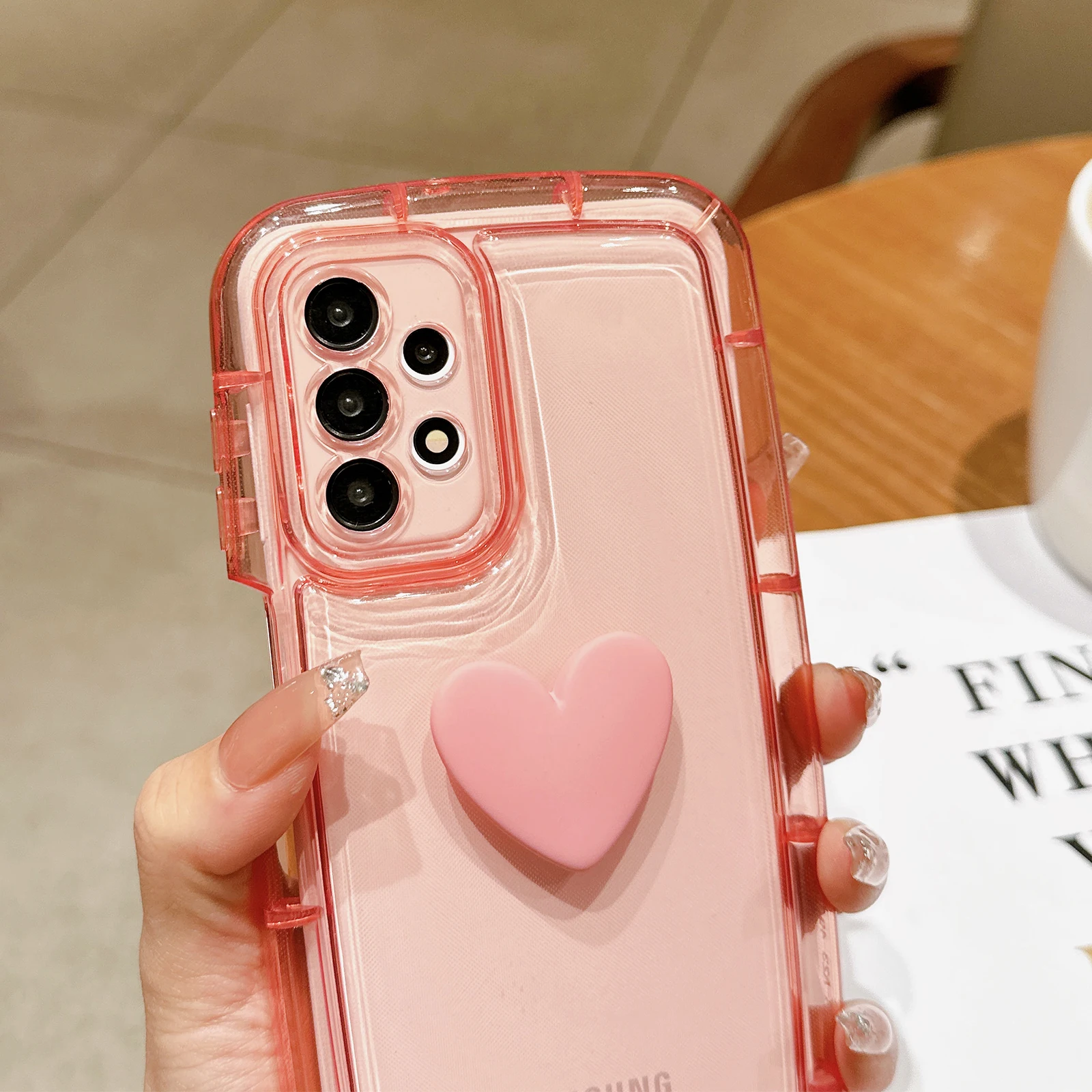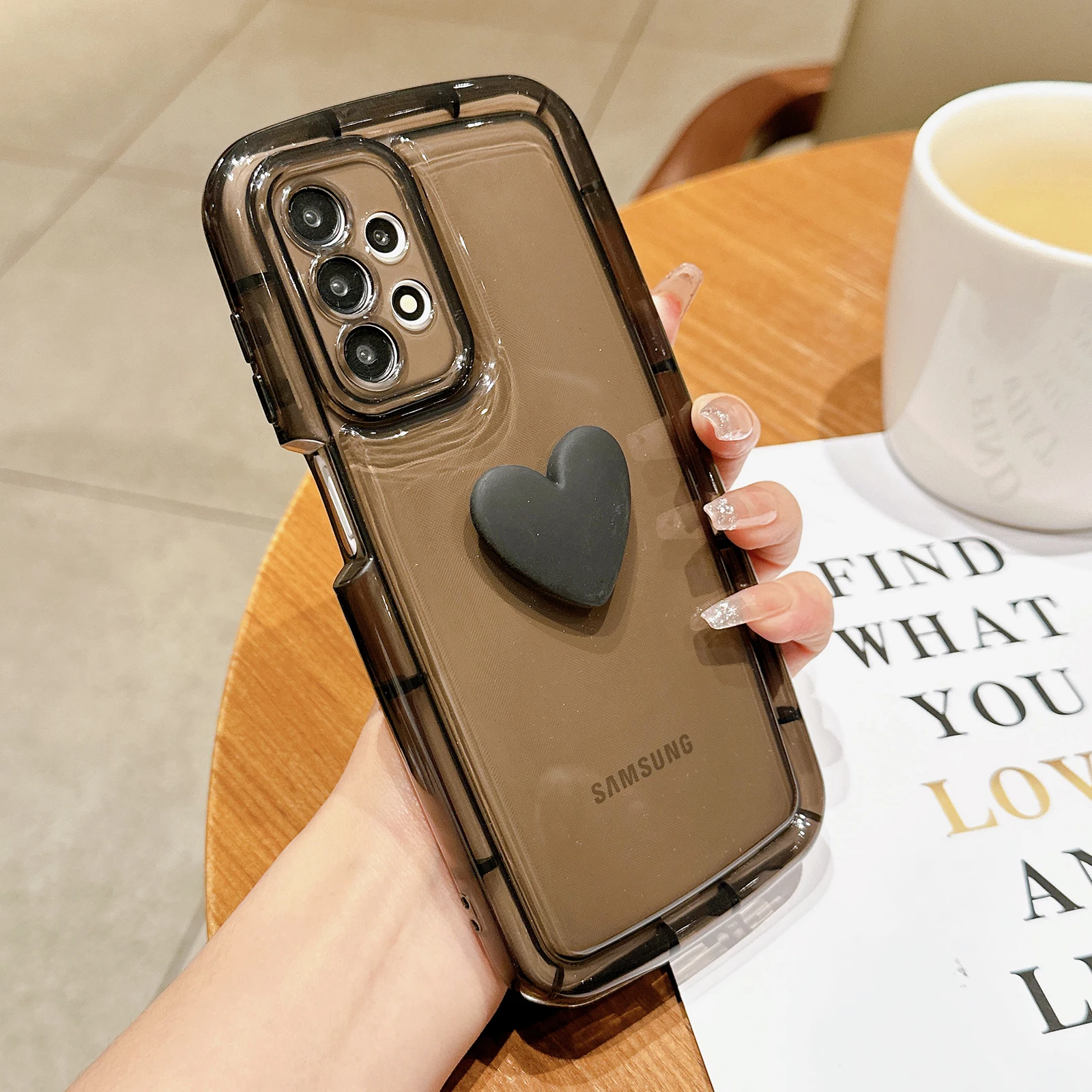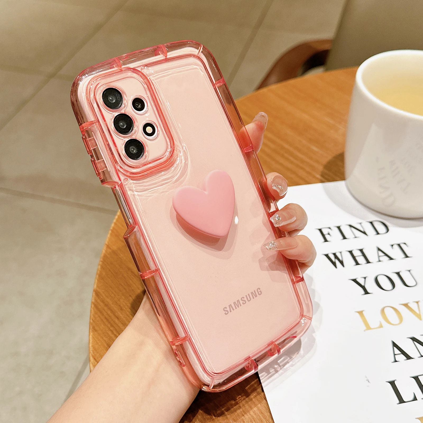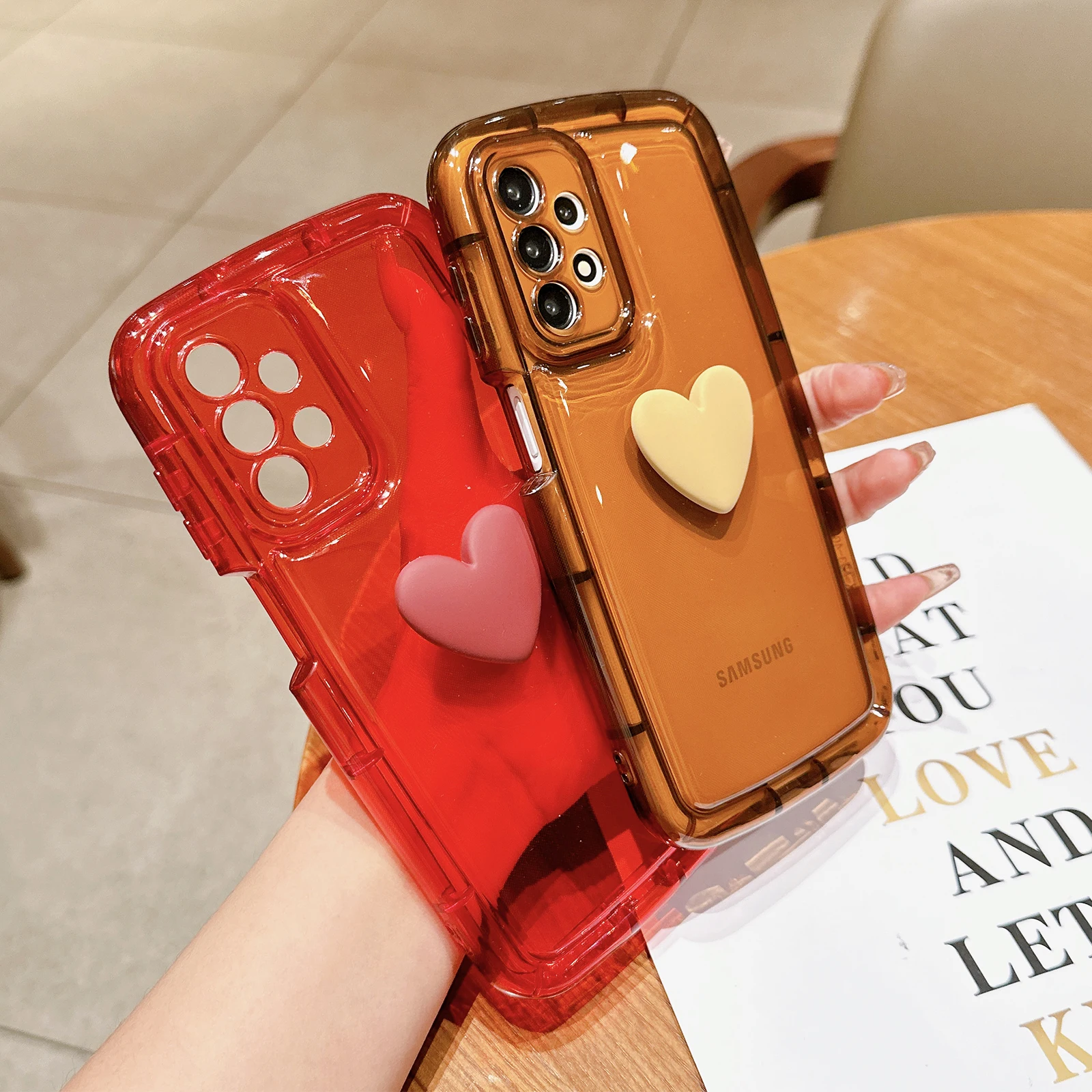 Comprar Funda transparente con corazón 3D para Samsung Galaxy, carcasa suave a prueba de golpes, bonita, para S23, S22, S21 Ultra Plus, A54, A52, A34, A14, A32, A13, A12, A51