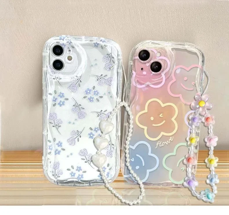 Comprar Funda transparente con cordón y cadena de corazón y flores para Honor 90 Lite 5G Nova 5t 7SE 9SE Huawei P30 40 Mate 30 Pro Y9 2019 Cover S