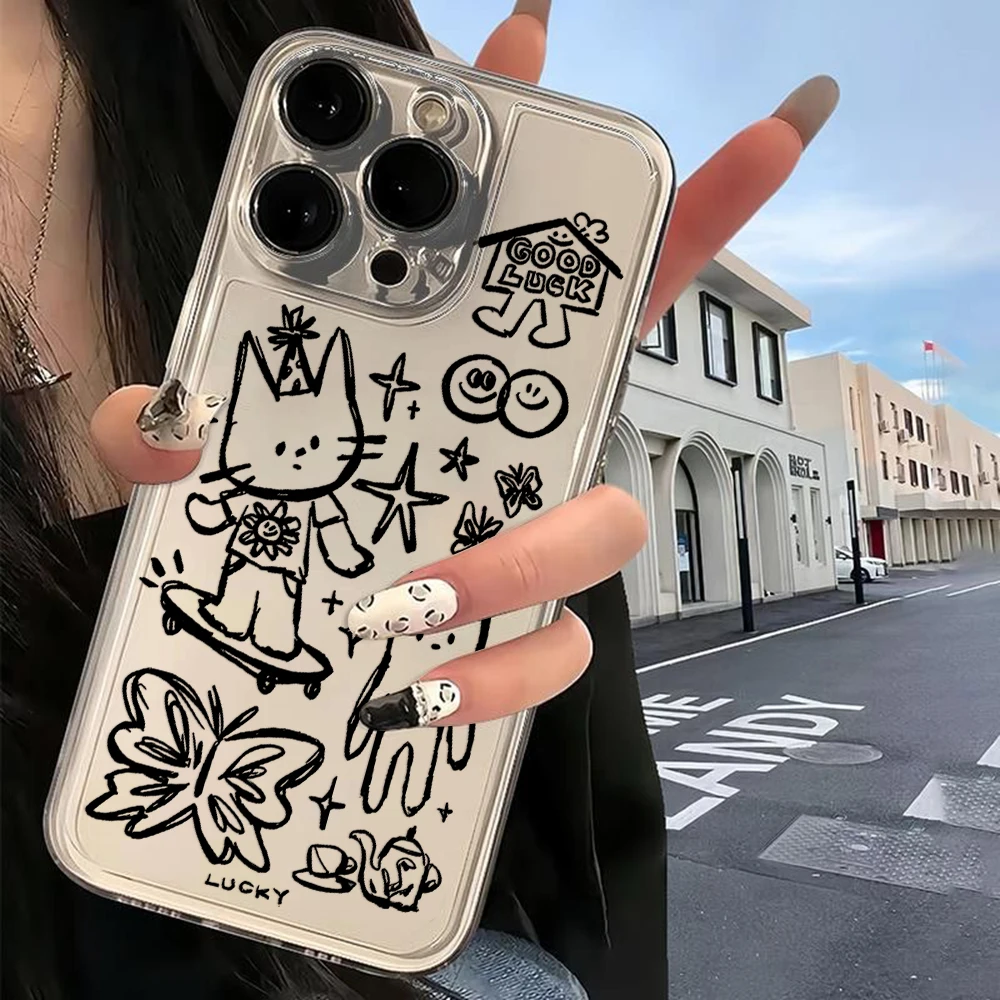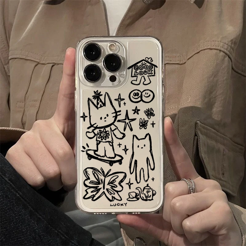 Comprar Funda transparente con dibujo de gato para Samsung, funda bonita y divertida para modelos A73, A72, A71, A55, A52, A51, A50, A35, A33, A32, A31, A30, A24, A23, A22, A13, A12, A05, 5G