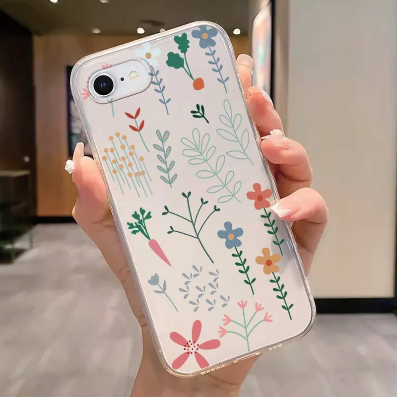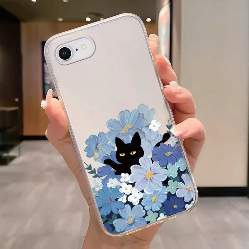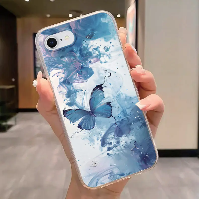 Funda transparente para iPhone 6 6S 7 8 Plus SE 2020 2022 X XR XS MAX 11 12 Mini Pro Max Flor de dibujos animados suave TPU Fundas mariposa