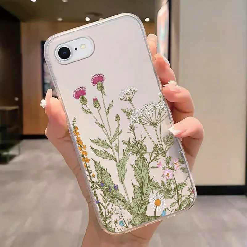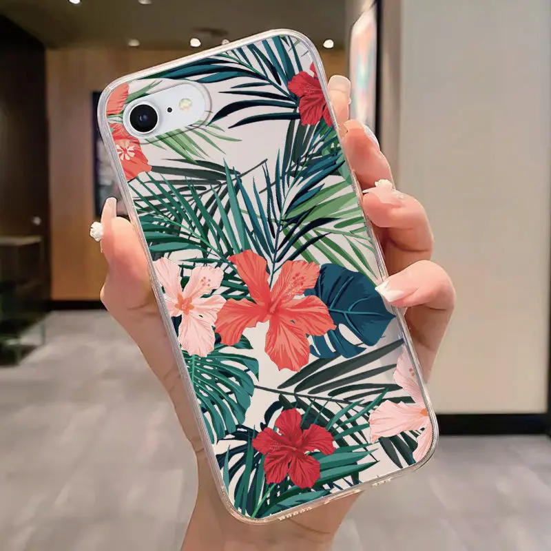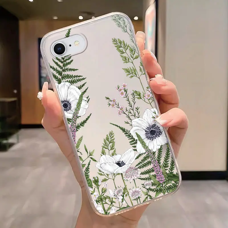 Comprar Funda transparente con dibujos de flores para iPhone, carcasa suave de TPU con mariposas para iPhone 6, 6S, 7, 8 Plus, SE 2020, 2022, X, XR, XS MAX, 11, 12 Mini Pro Max