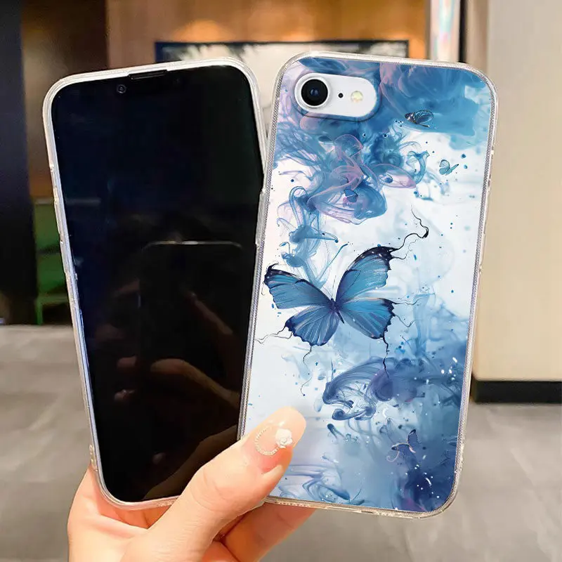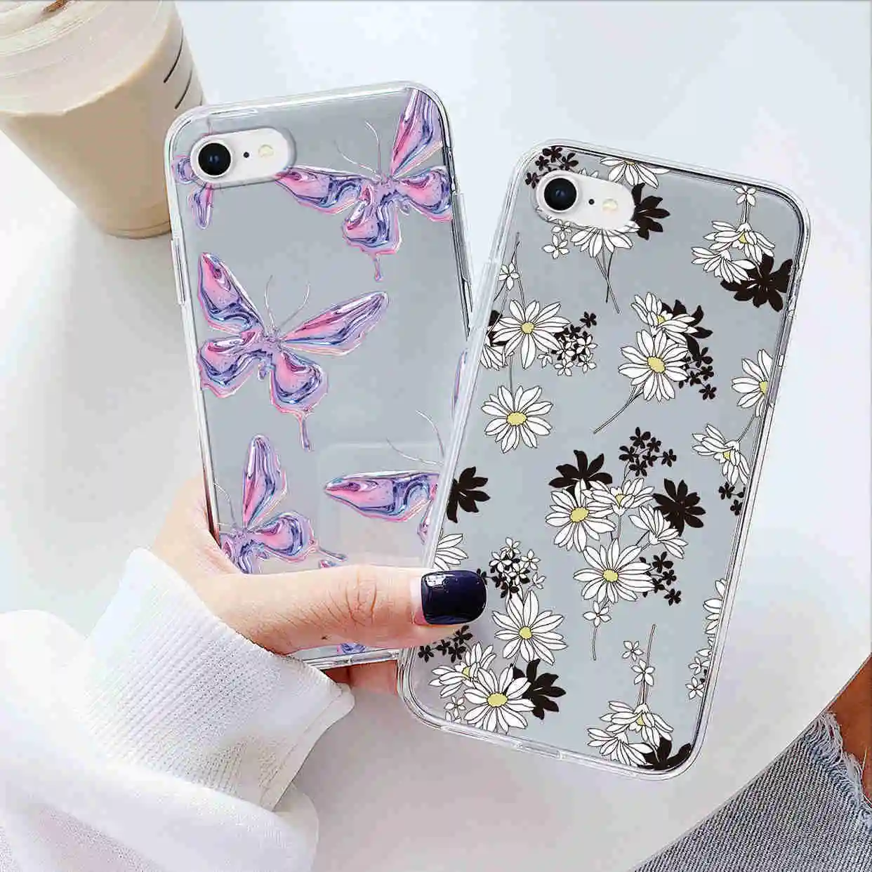 Funda transparente para iPhone 6 6S 7 8 Plus SE 2020 2022 X XR XS MAX 11 12 Mini Pro Max Flor de dibujos animados suave TPU Fundas mariposa