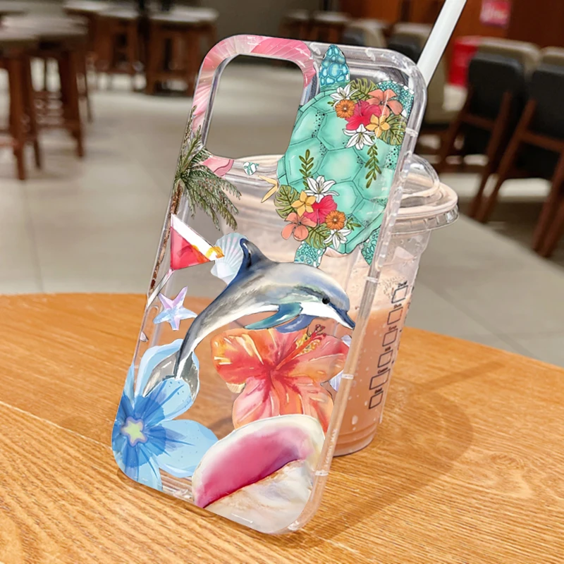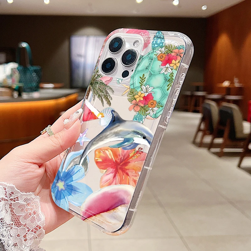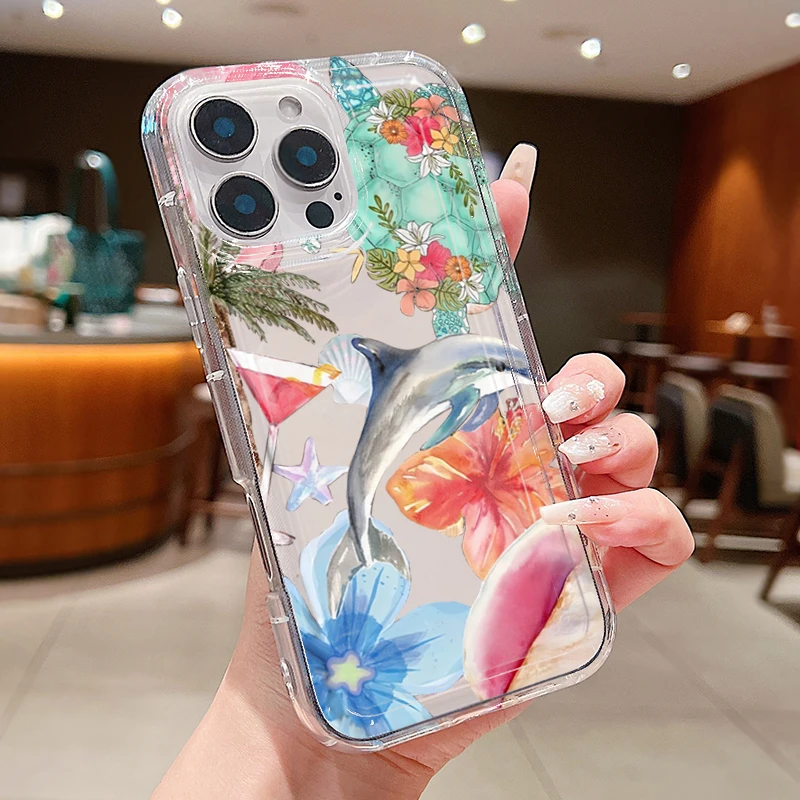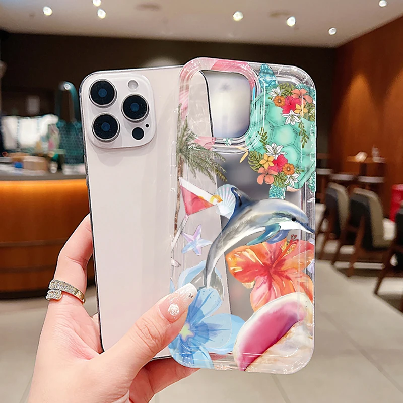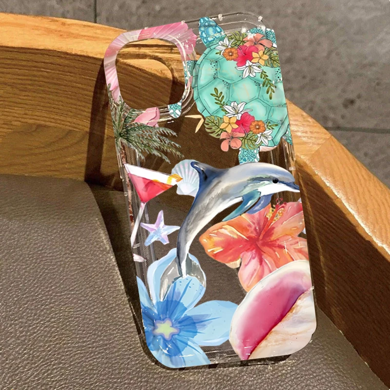 Funda transparente con estampado de delfines y flores de océano para Xiaomi Poco X6 X3 F5 Pro Mi 13 12 11 Lite 5G 14 13T 12T Pro, funda a prueba de golpes