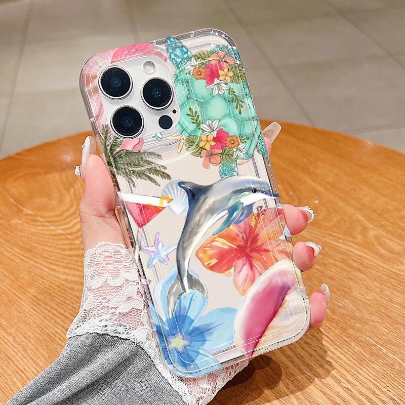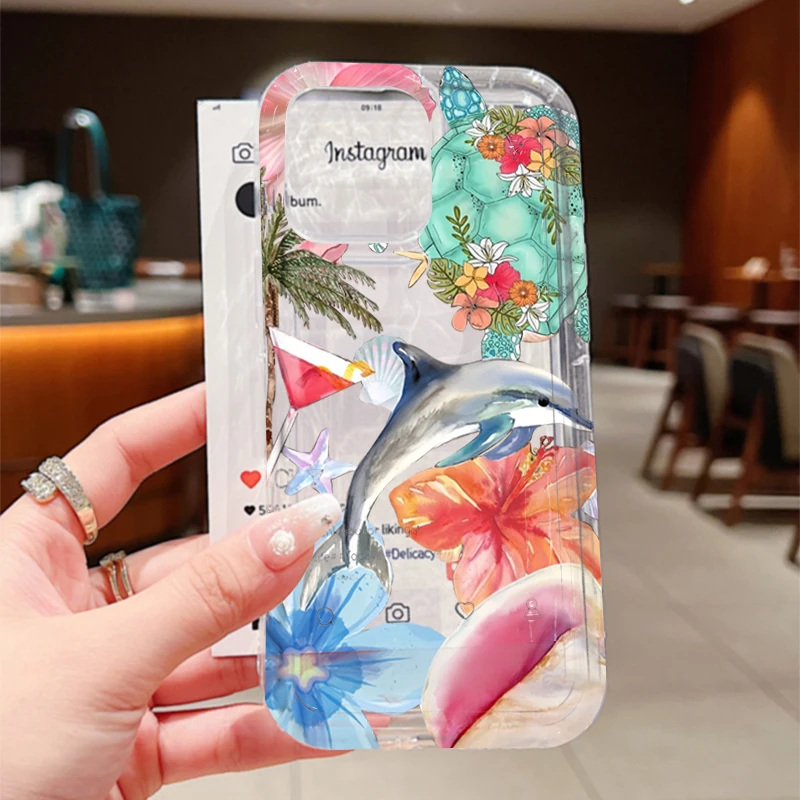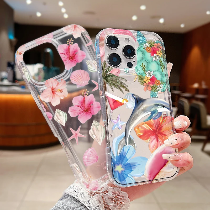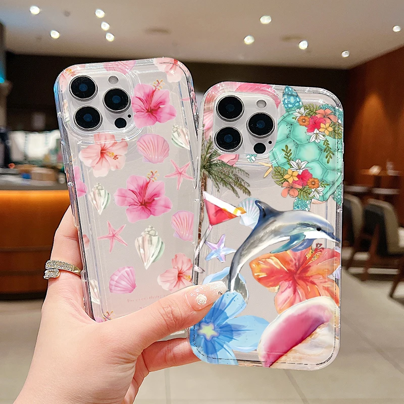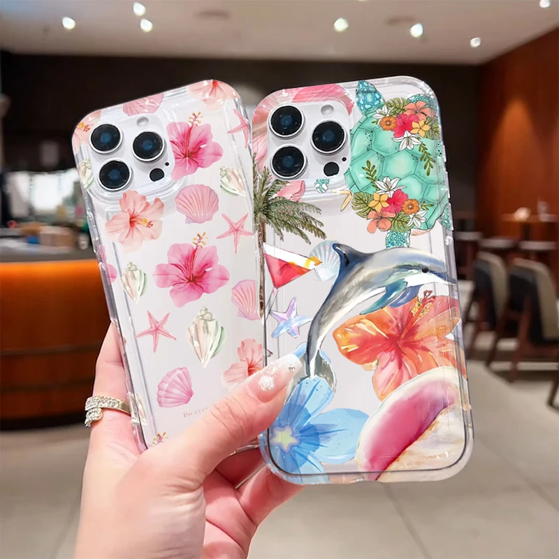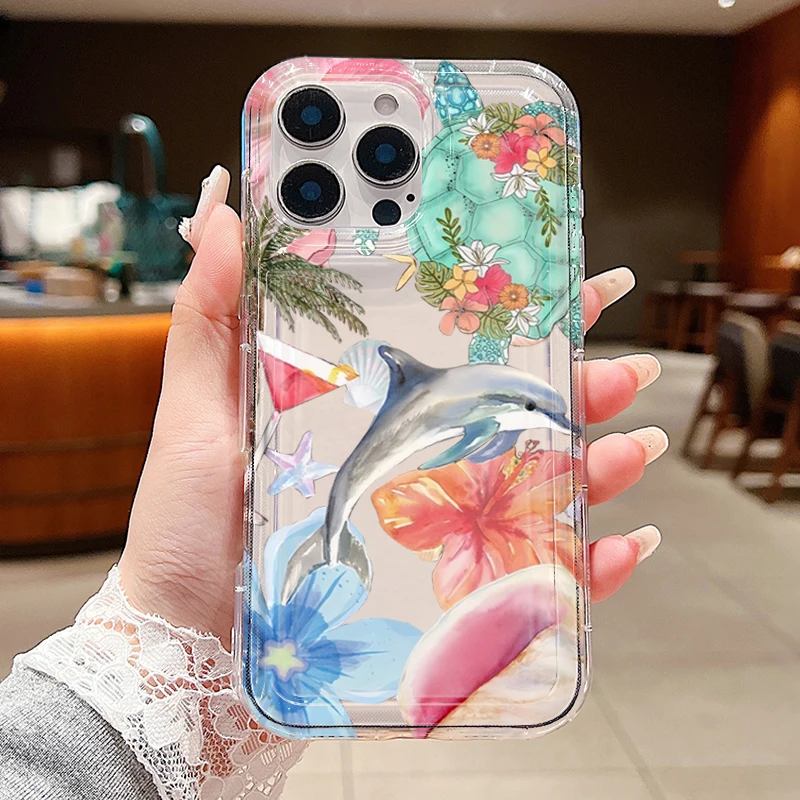 Funda transparente con estampado de delfines y flores de océano para Xiaomi Poco X6 X3 F5 Pro Mi 13 12 11 Lite 5G 14 13T 12T Pro, funda a prueba de golpes