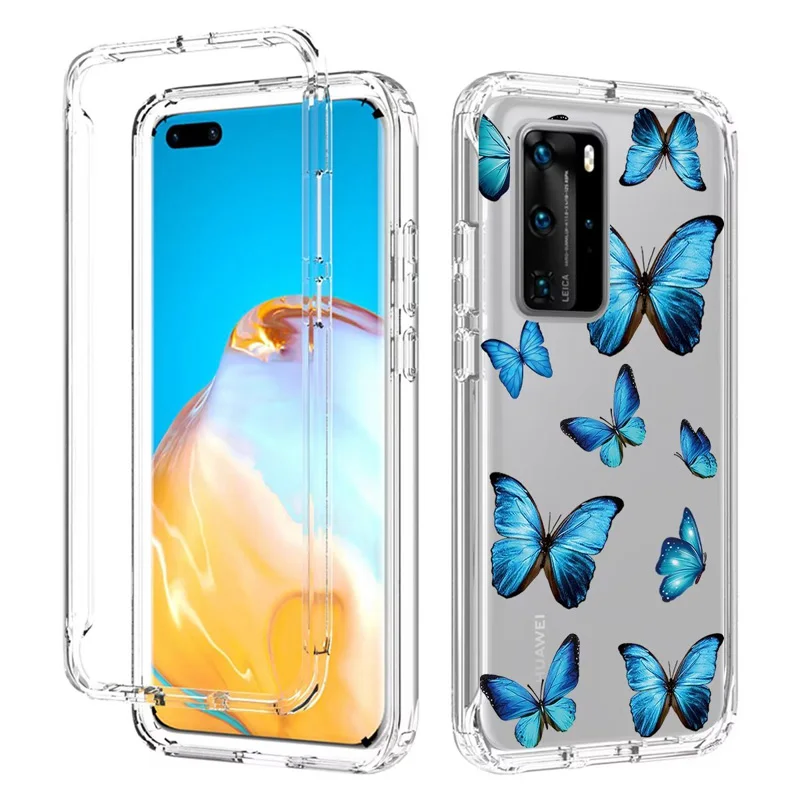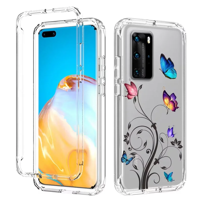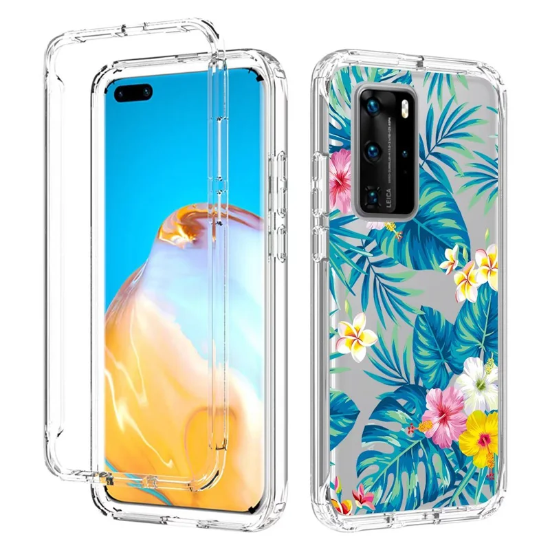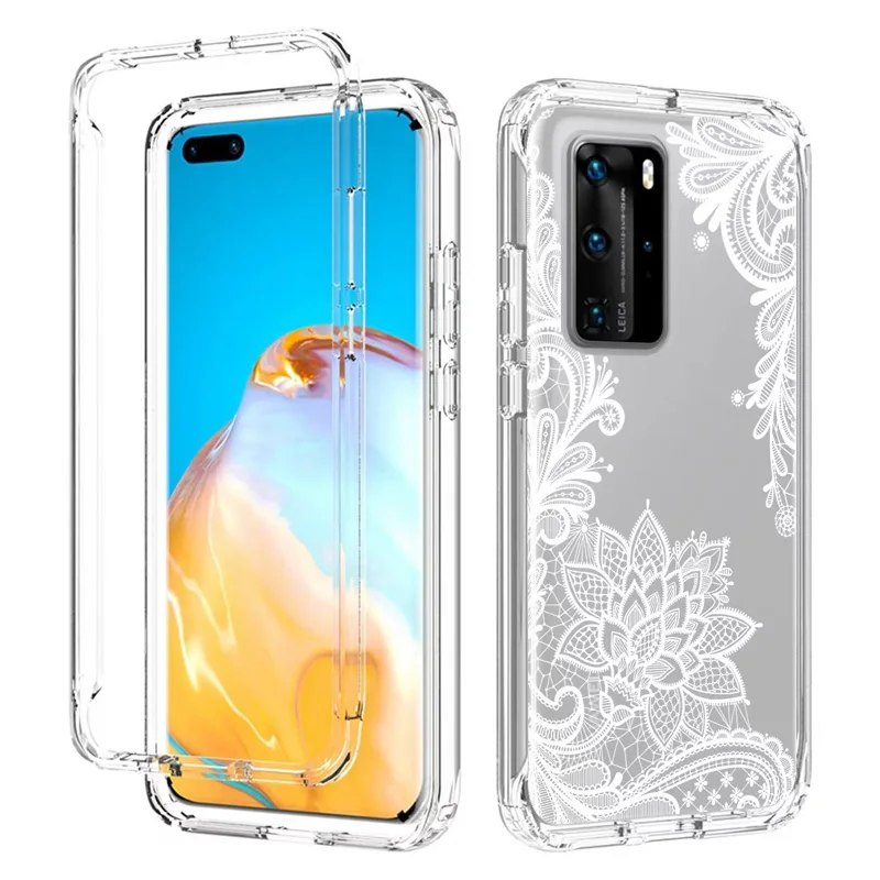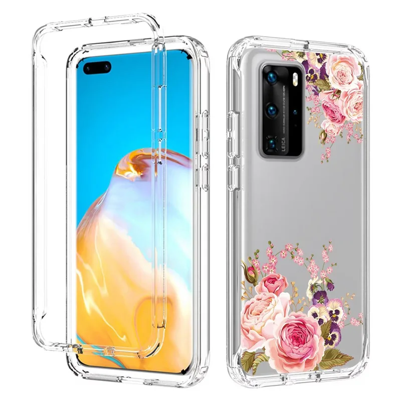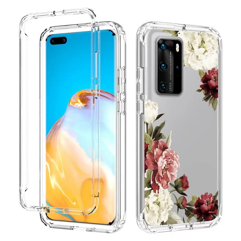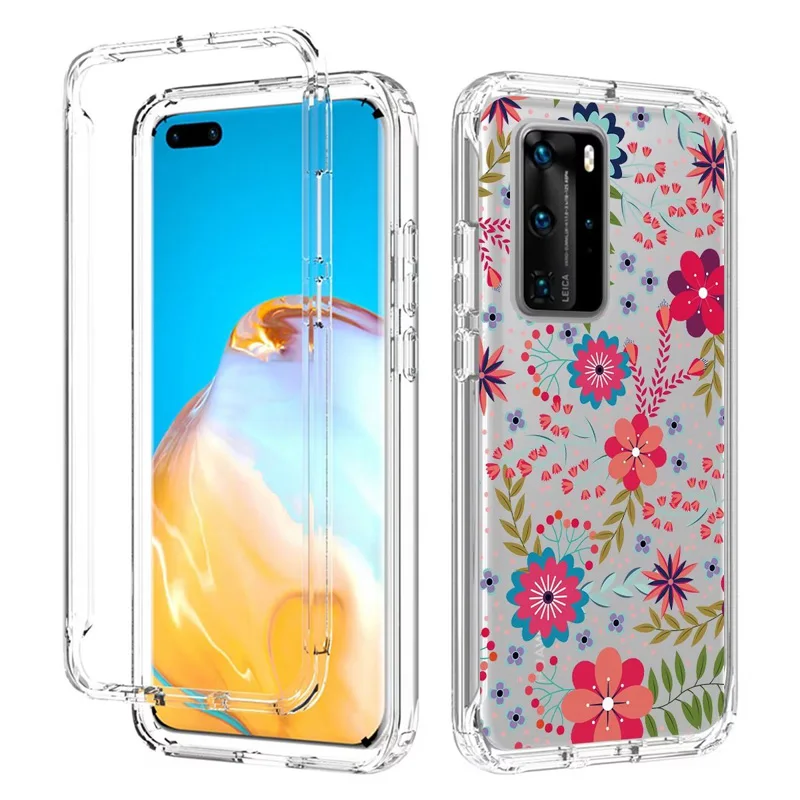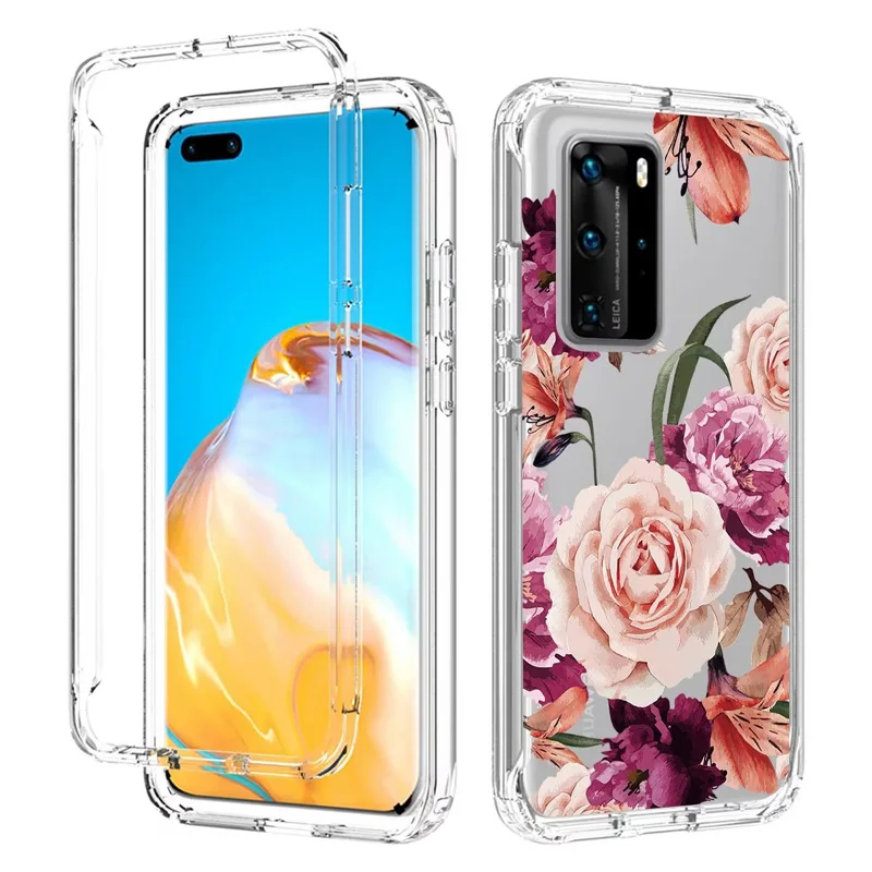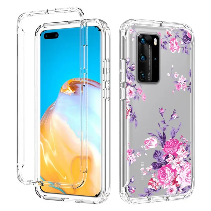 Funda de flores transparente para Huawei P40 Pro, parachoques de PC duro transparente de ELS-N04 + funda trasera de teléfono elegante a prueba de golpes de TPU suave