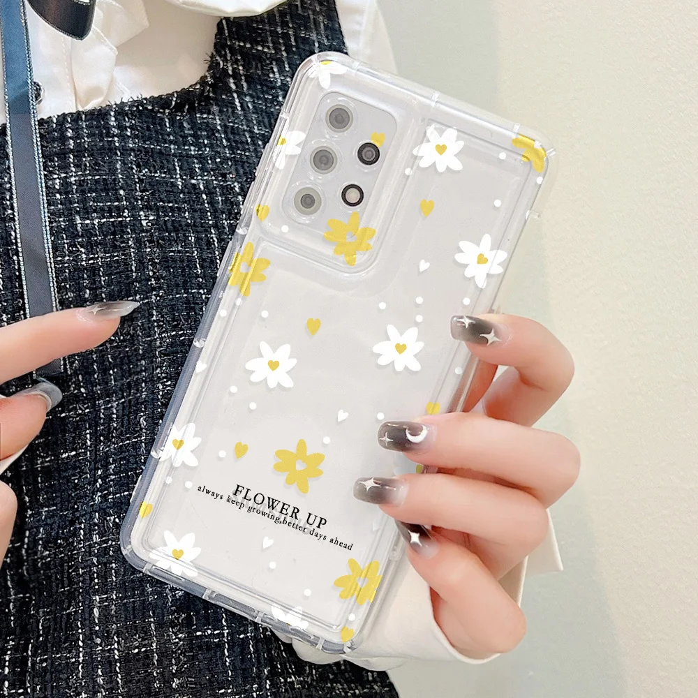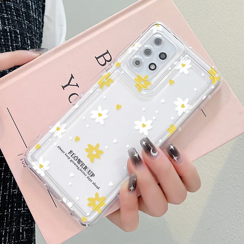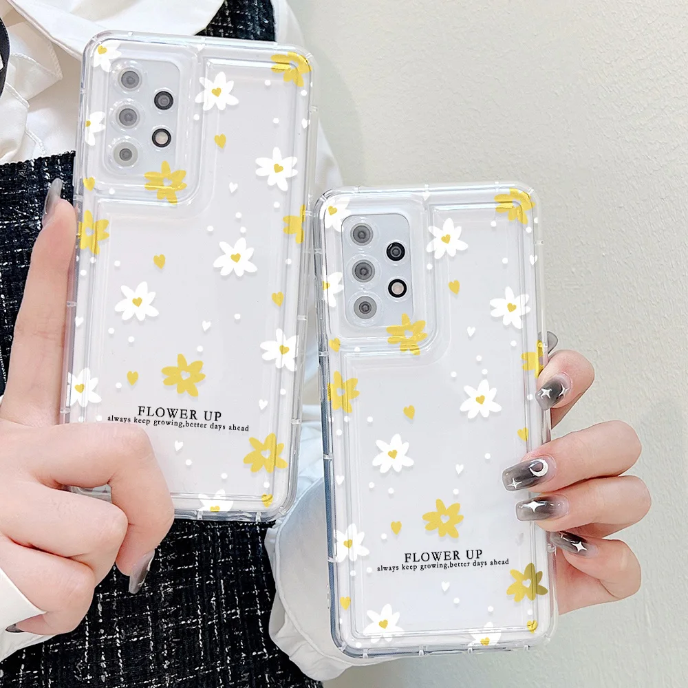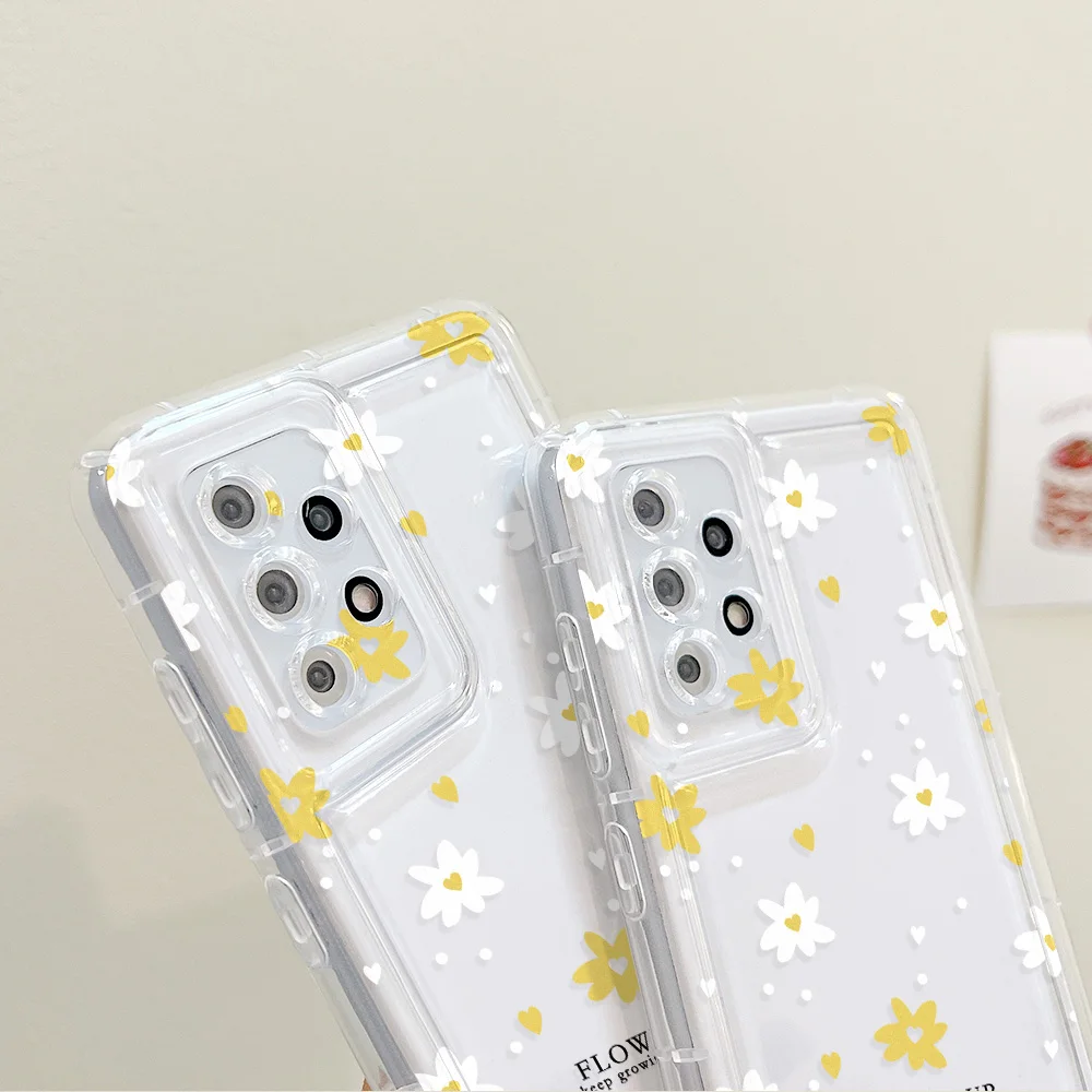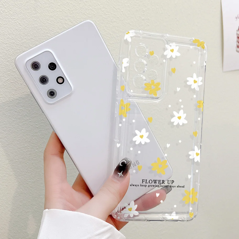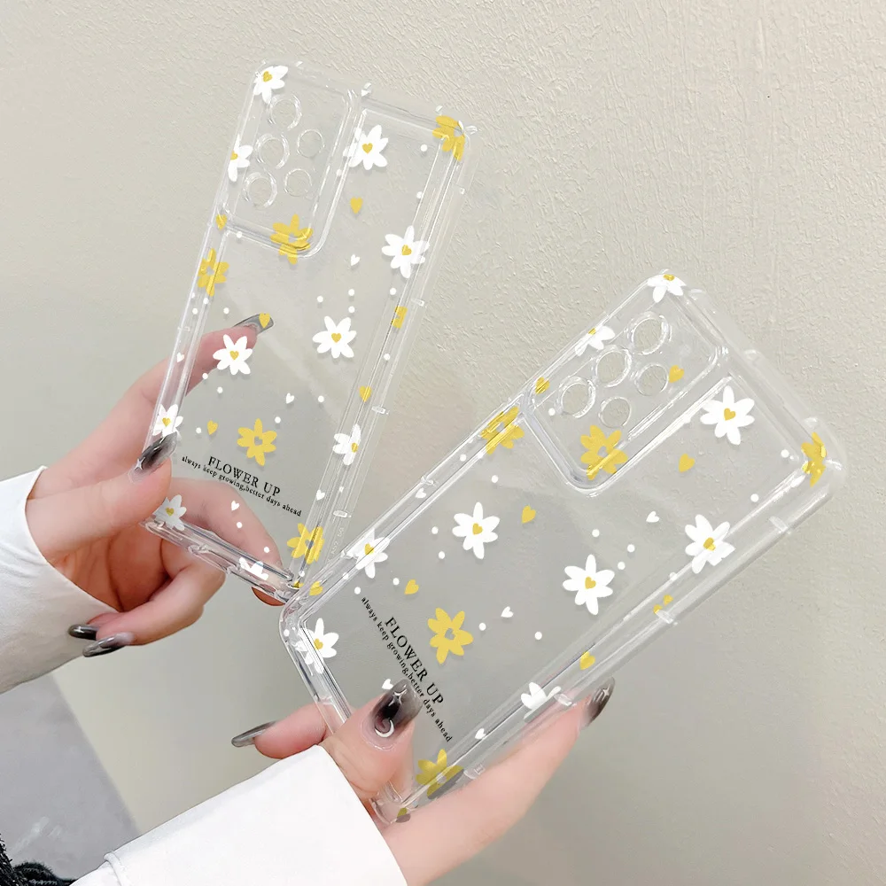 Funda transparente con flores para Samsung S25 S24 Ultra S23 S22 S21 S20 FE A53 A54 5G A55 A56 A52 A36 A35 A34 A33 A26 A15 A13 Fundas