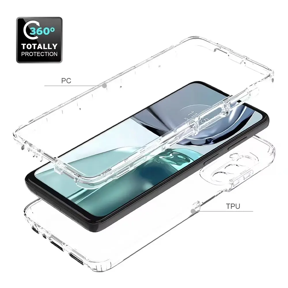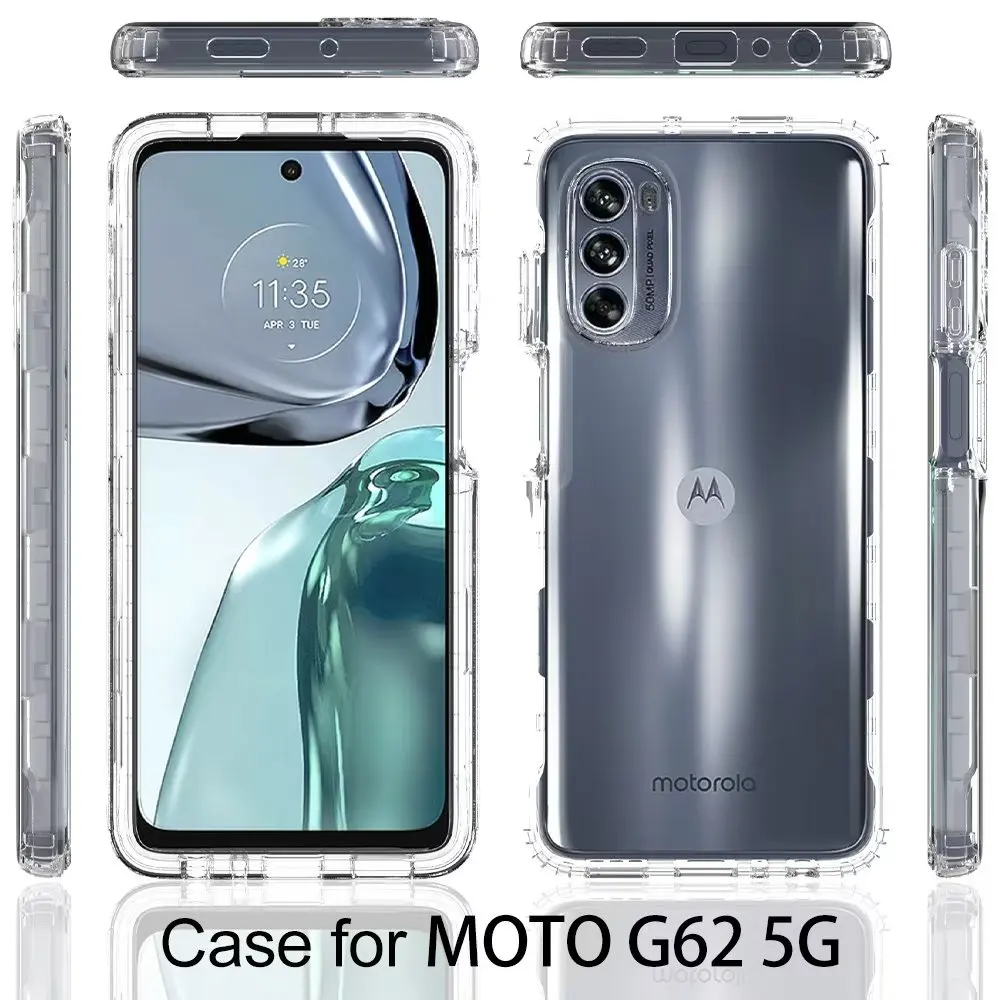 Comprar Funda transparente HD para Motorola Moto G62 5G, funda trasera de silicona para teléfono, PC, parachoques 360, cubierta dura protectora completa para Moto G62