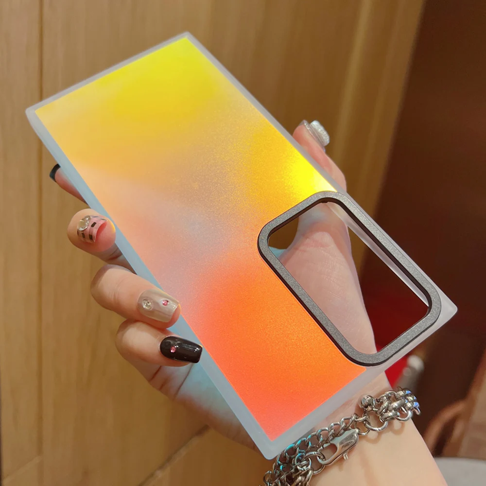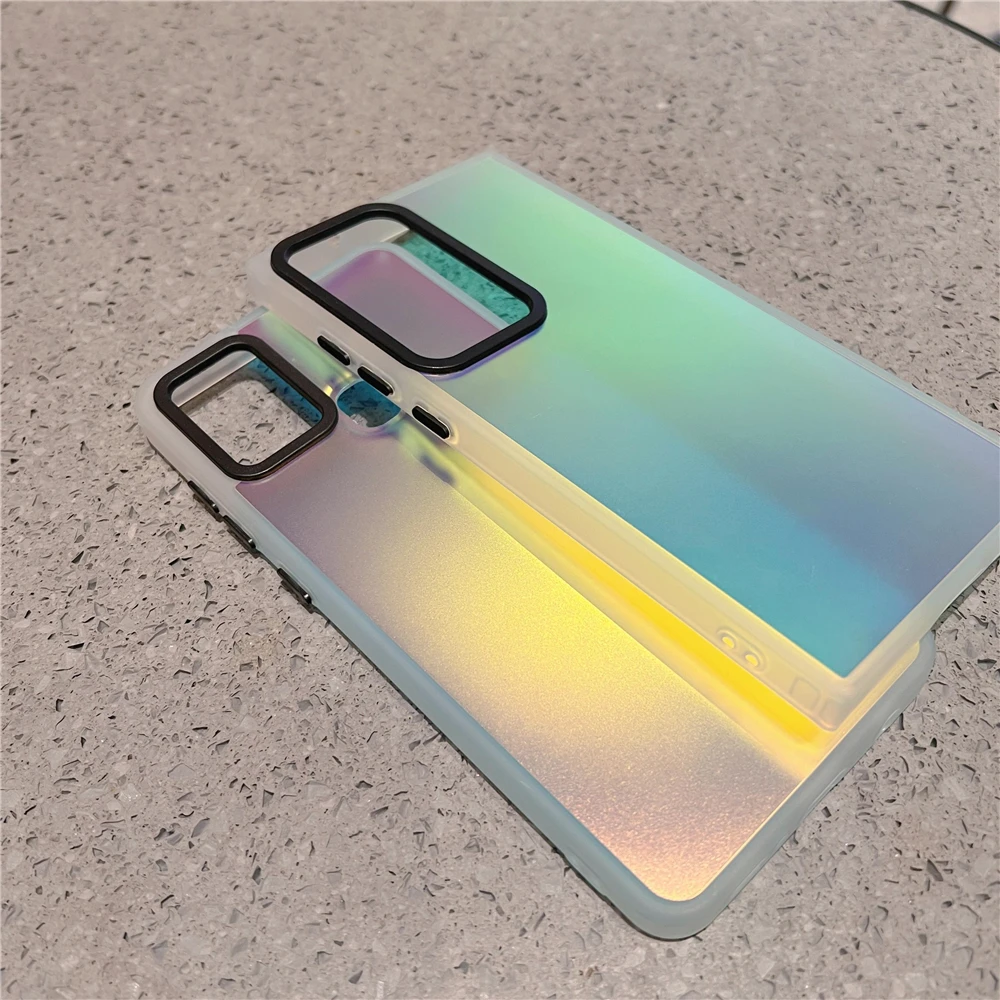 Comprar Funda transparente holográfica láser para Samsung Galaxy S23, S22 Ultra Plus, S21, S20 FE, A54, A14, A34, A53, A52, A13, A12, A32, cubierta mate suave