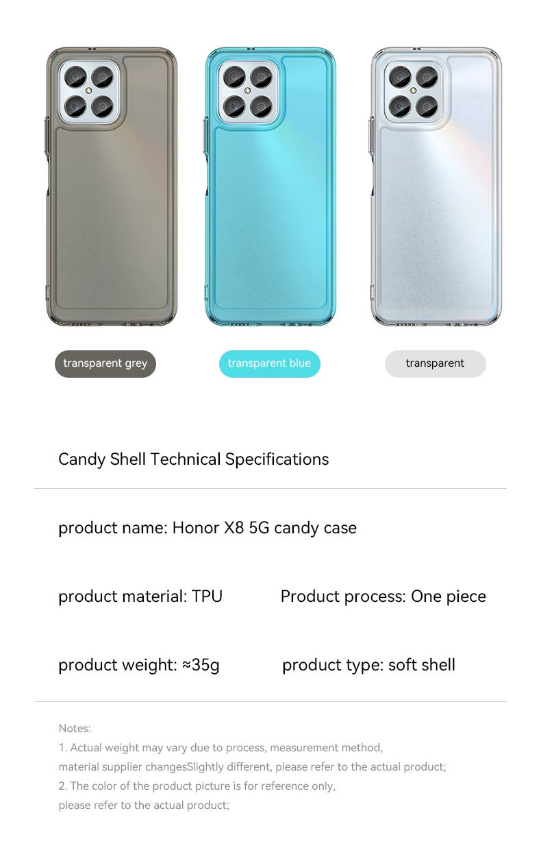 Comprar Funda transparente para Honor X8 5G, carcasa suave y Flexible de Color caramelo, parachoques trasero de TPU para Honor X8