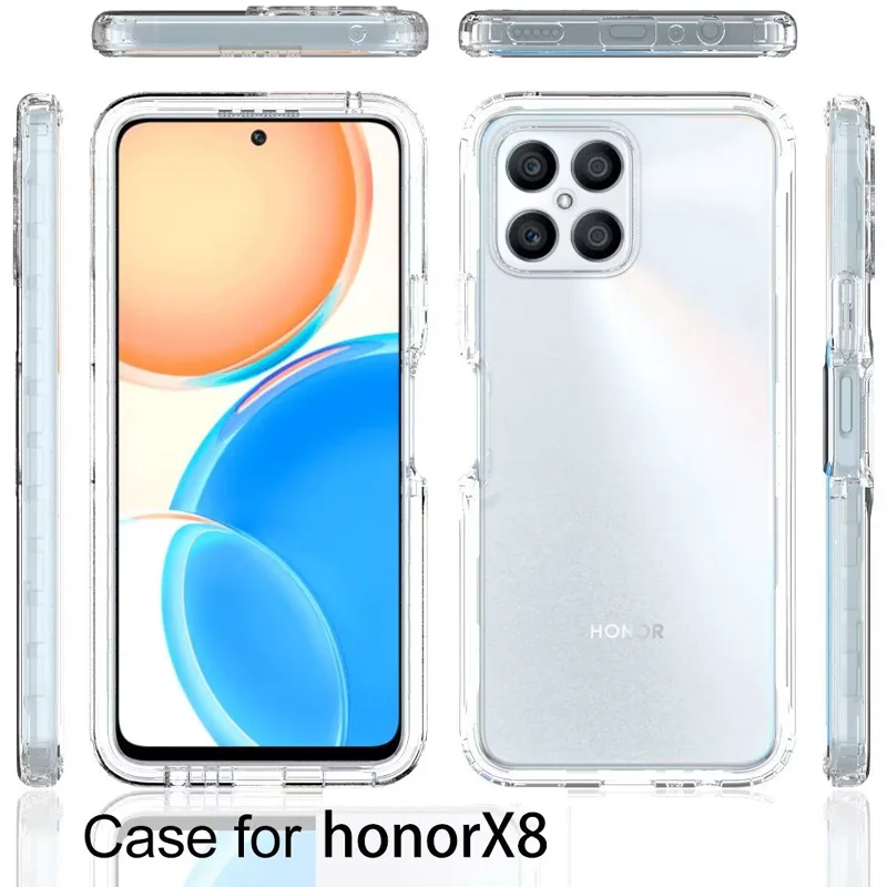 Clear Case for Honor X8 Silicone Phone Back Bag PC Bumper 360 Full Hard Two Layer Hybrid Protect Cover for Huawei Honor X8