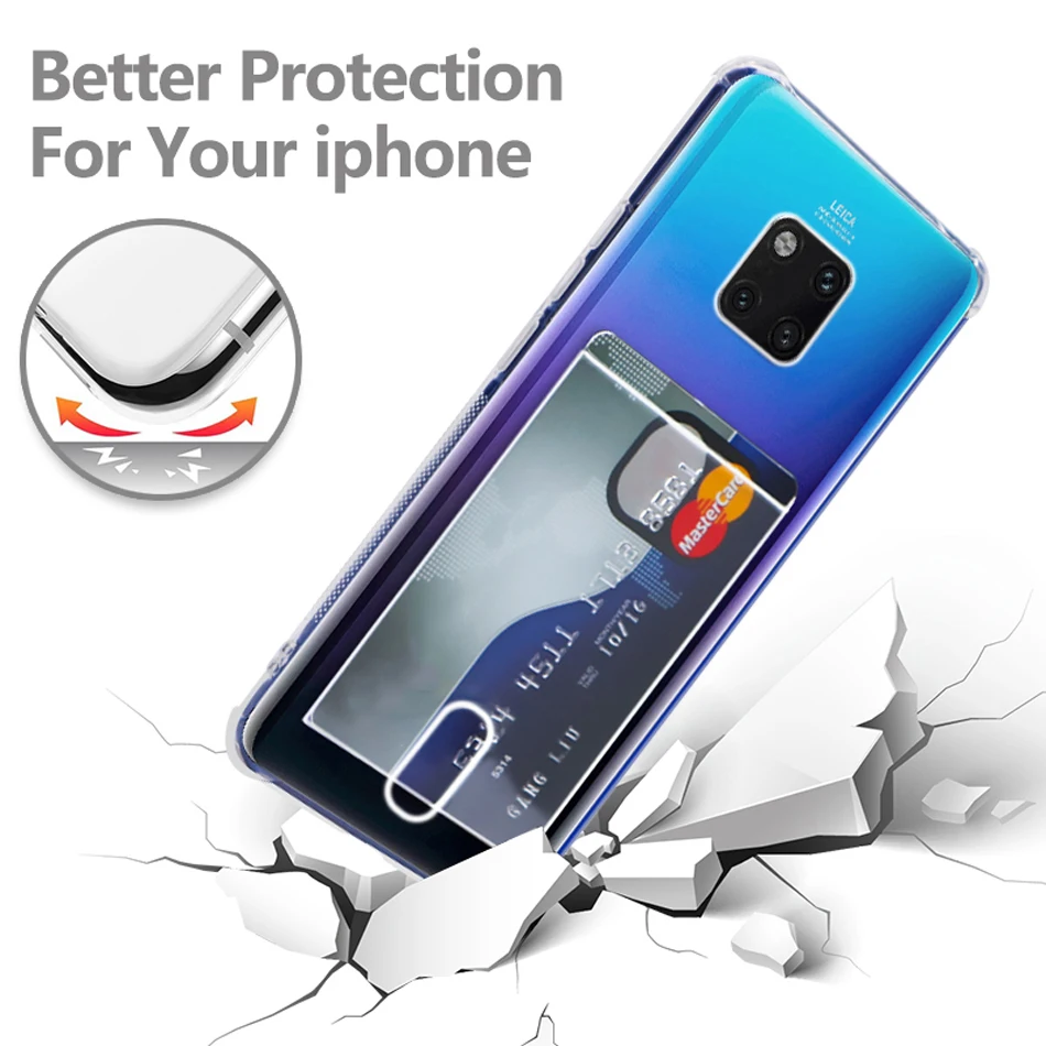Comprar Funda transparente para Huawei P30 P20 Lite, Protector de pantalla con ranura para tarjeta, soporte para Huawei Mate10 20 30 Pro