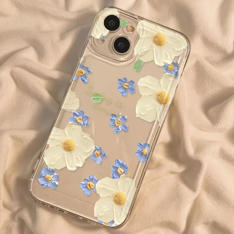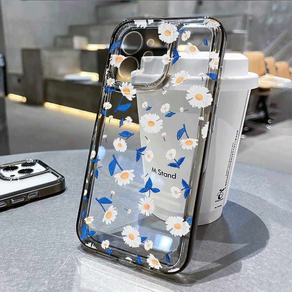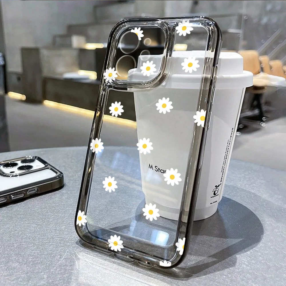 Funda transparente para iPhone 16 fundas iPhone 15 Pro Max 16 14 13 12 11 Pro 7 8 SE X XR XS Max Fundas flor margarita funda suave a prueba de golpes