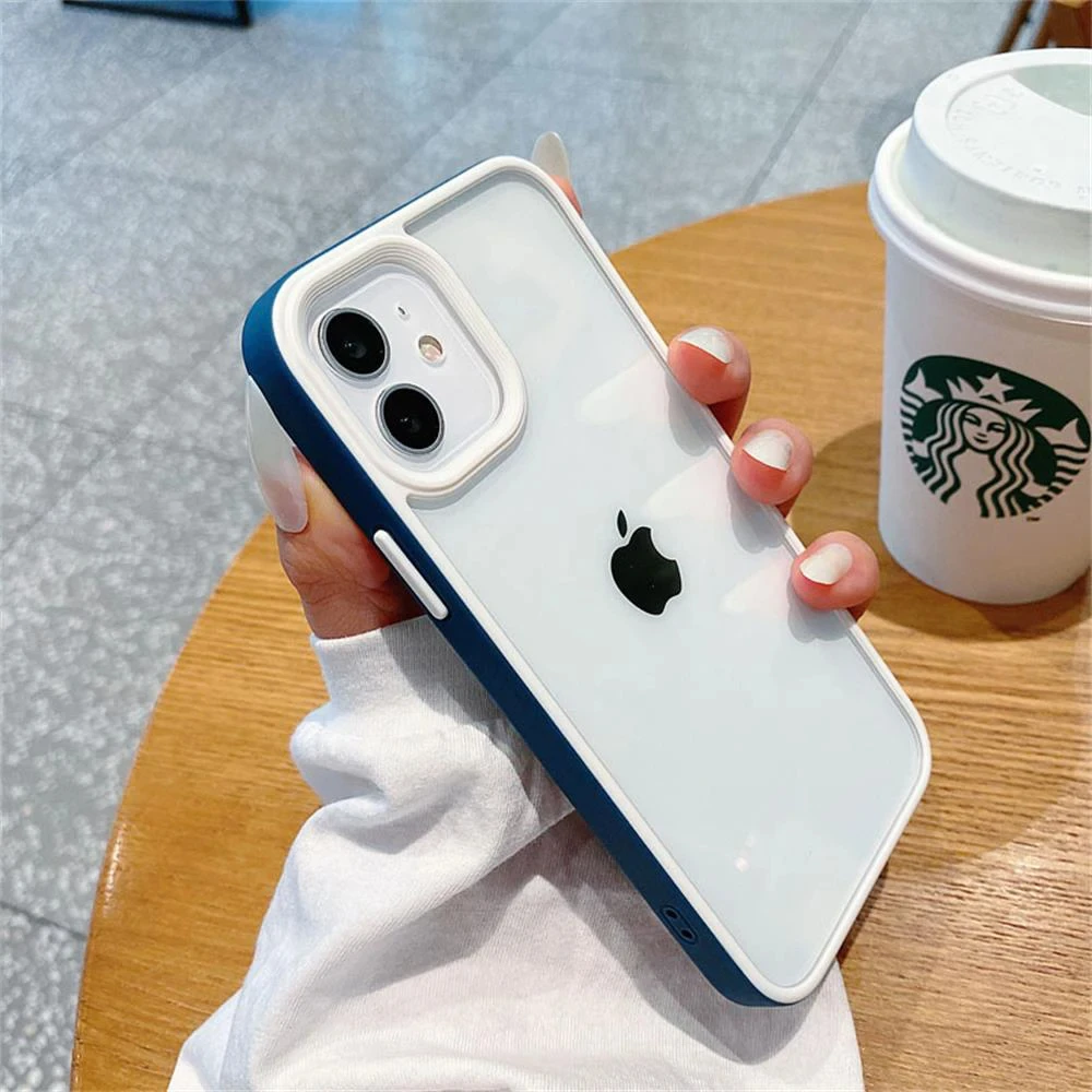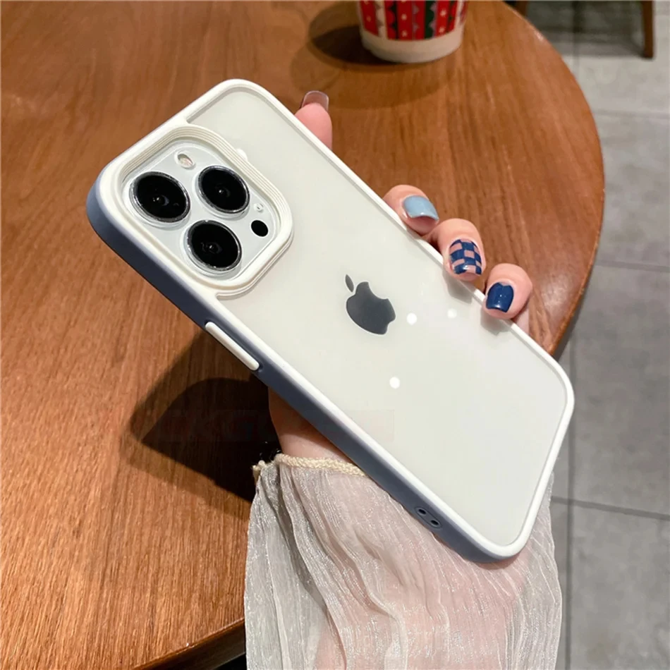 Funda transparente de lujo con marco de caramelo para Apple iPhone 15, 14, 13, 12, 11 Pro Max, parachoques a prueba de golpes, cubierta trasera transparente, accesorios para teléfono