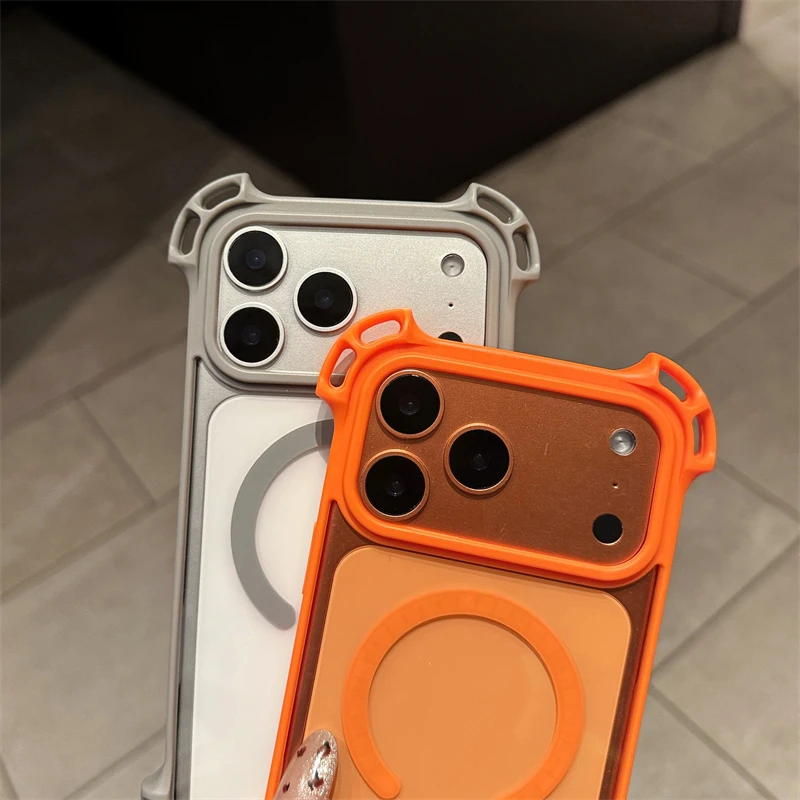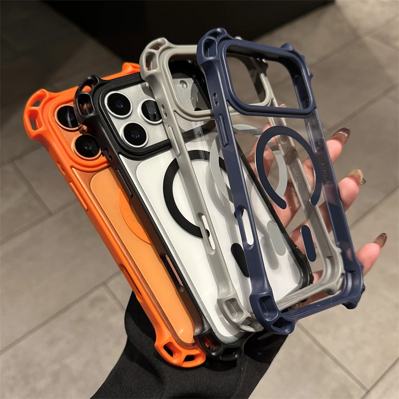 Funda transparente magnética con parachoques a prueba de golpes de cuatro esquinas para iPhone 17 16 14 15 13 12 Pro Max Plus 11 para funda de carga inalámbrica Magsafe