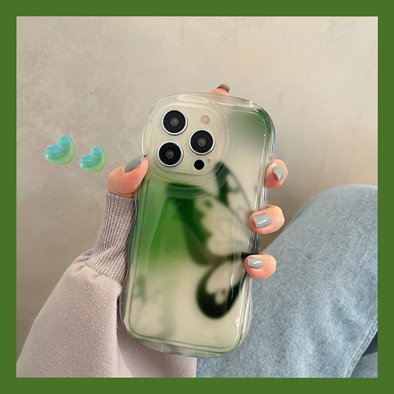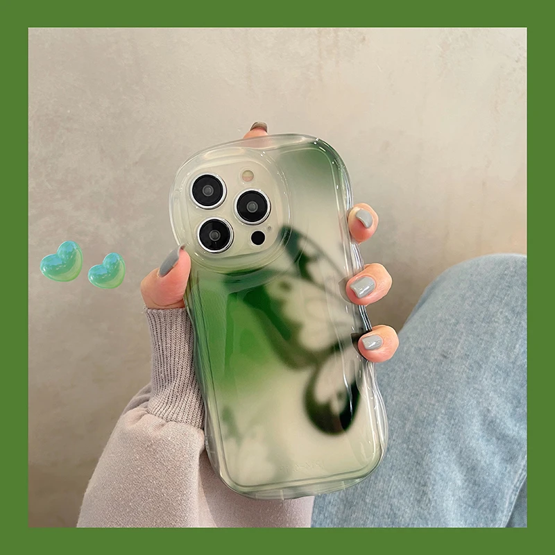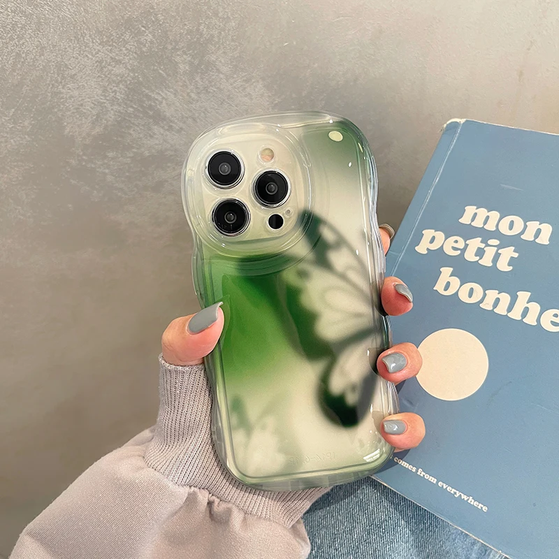 Funda protectora de onda transparente con mariposa a la moda para iPhone 14 Pro Max 13 12 11, funda trasera anticaída para teléfono