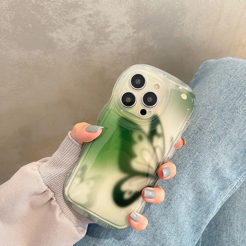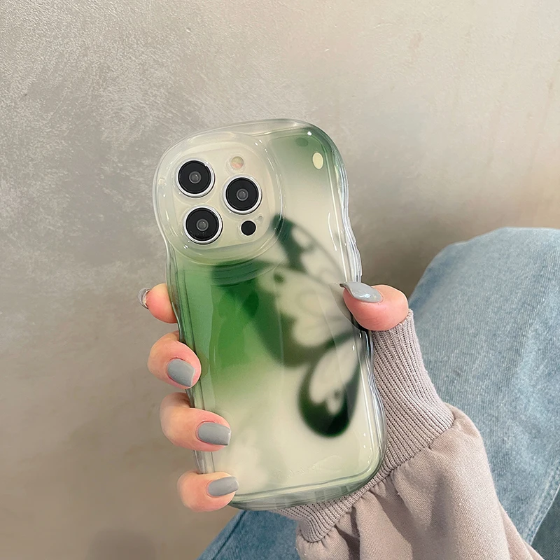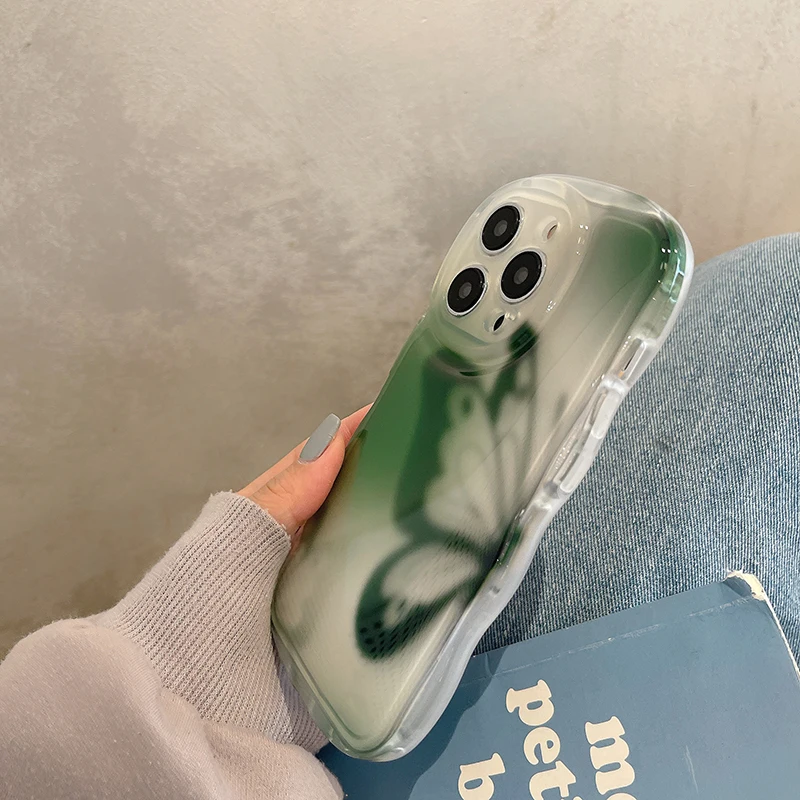 Funda protectora de onda transparente con mariposa a la moda para iPhone 14 Pro Max 13 12 11, funda trasera anticaída para teléfono