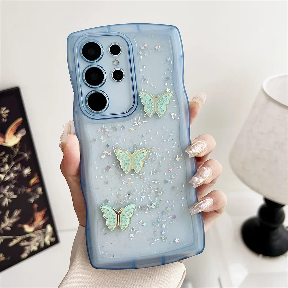 Funda transparente de mariposa para Samsung Galaxy S24, S23 Ultra, S22 Plus, S21, S20 FE, A05, A73, A54, A55, A25, A15, Note 20, Diamante brillante