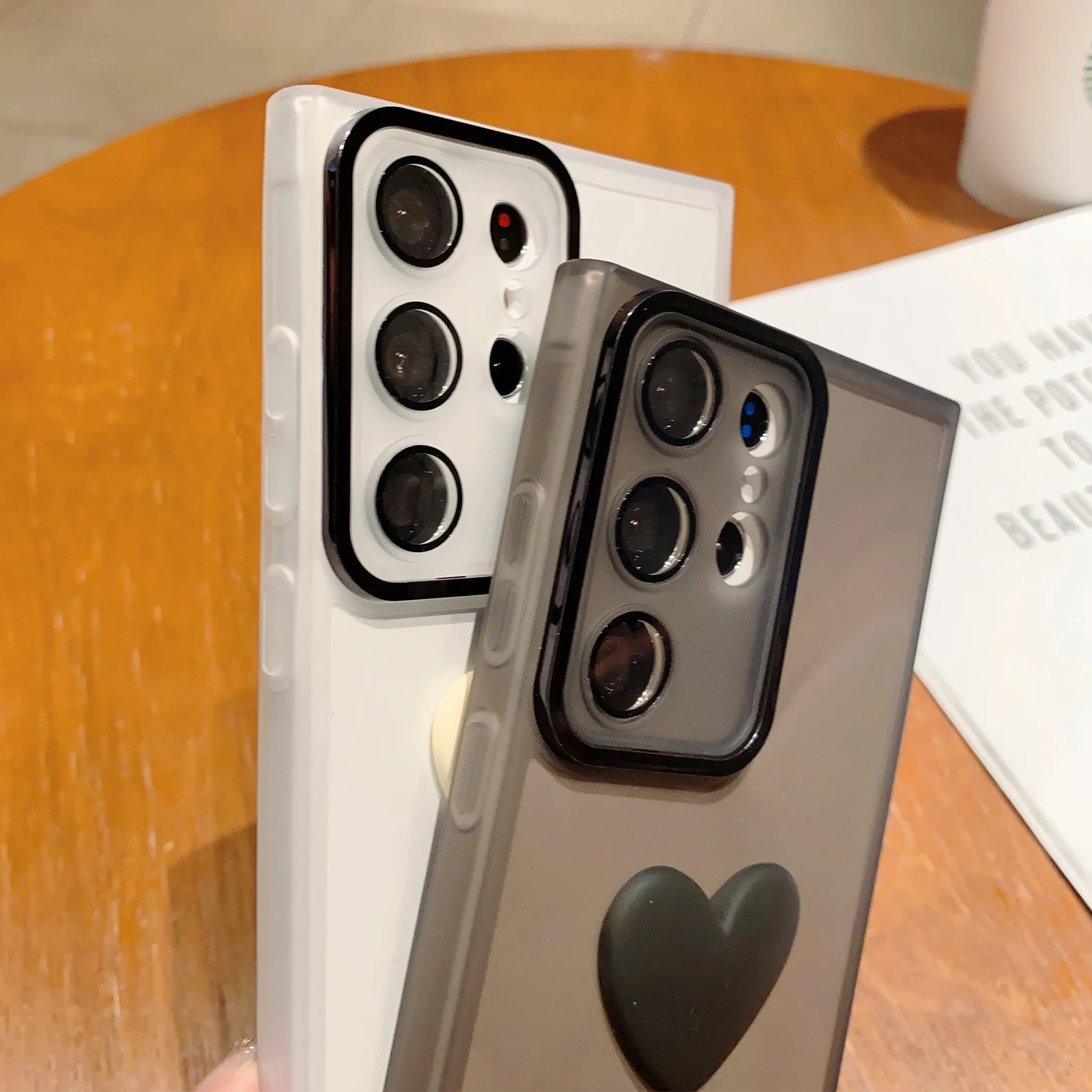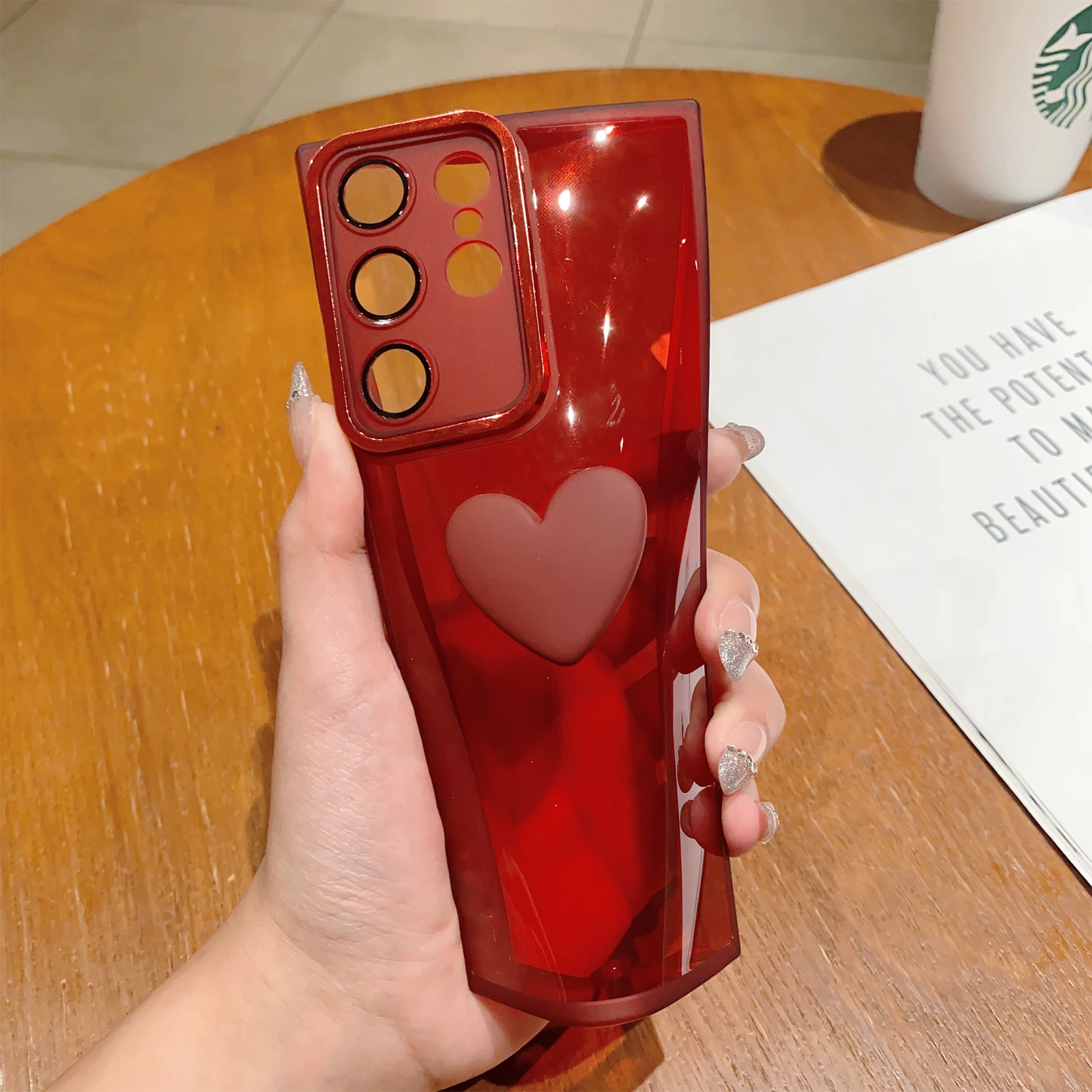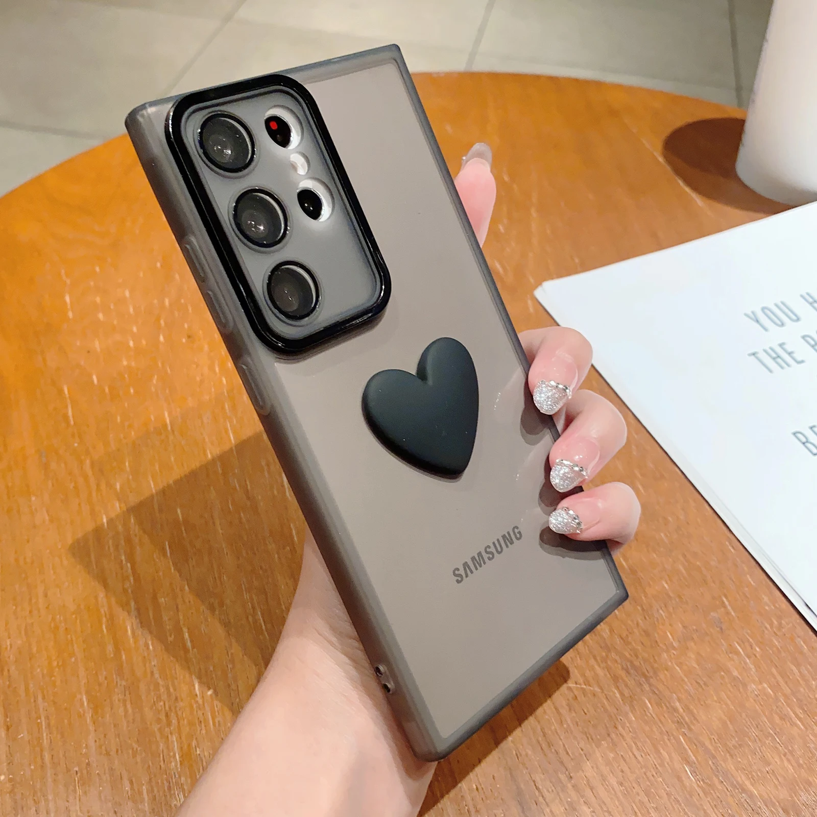 Comprar Funda transparente mate con corazón 3D para Samsung Galaxy S23 Ultra Plus, A54, A34, A14, A53, A52, A51, A32, A13, A12