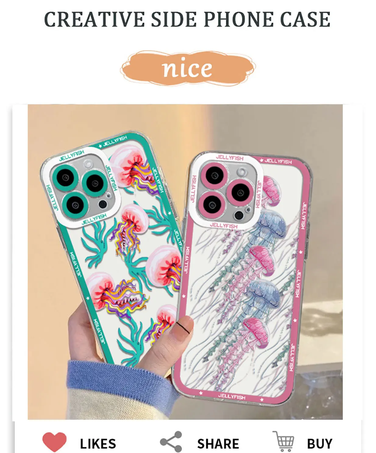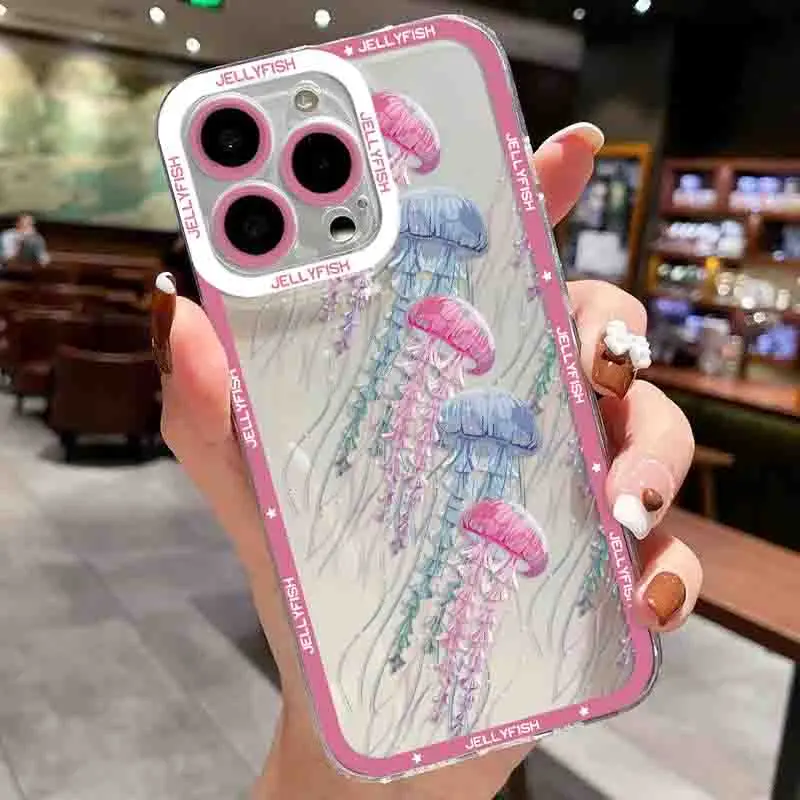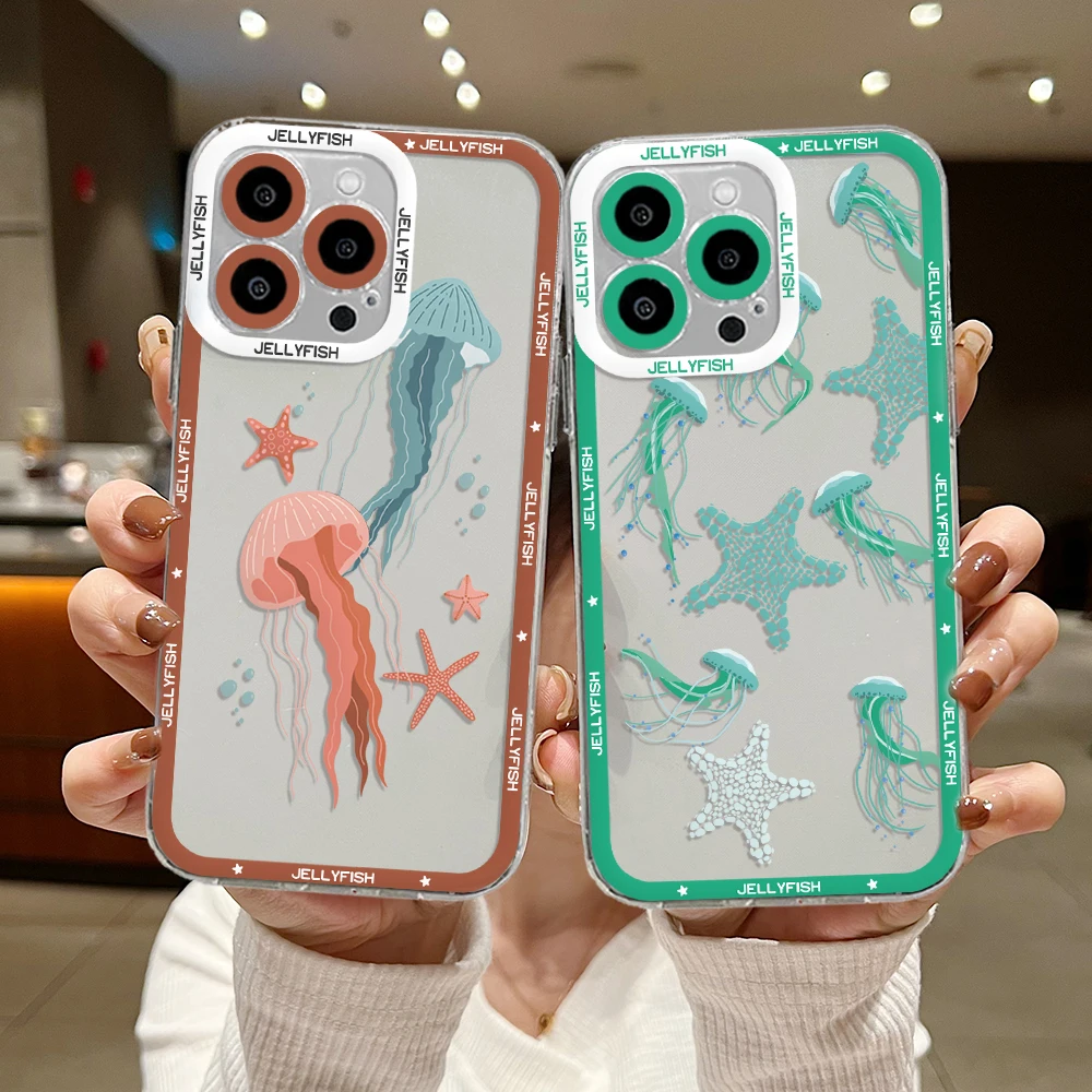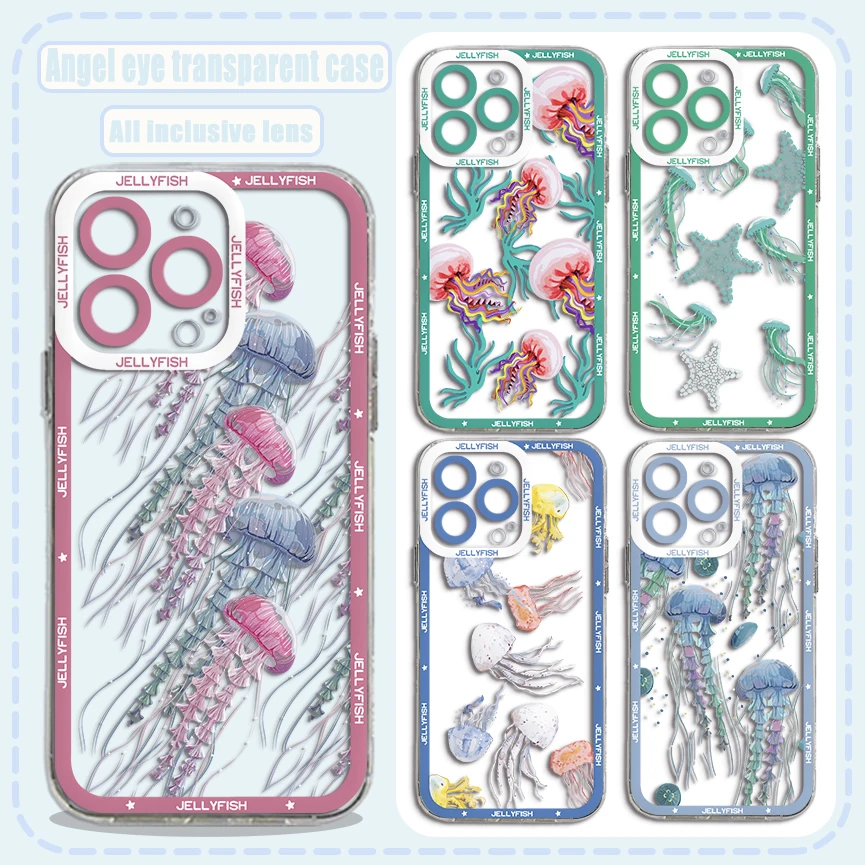 Comprar Funda transparente de medusas de dibujos animados para Samsung, funda bonita de verano para Samsung A73, A72, A71, A55, A52, A51, A50, A35, A33, A32, A31, A30, A24, A23, A22, A13, A12, A05, 5G