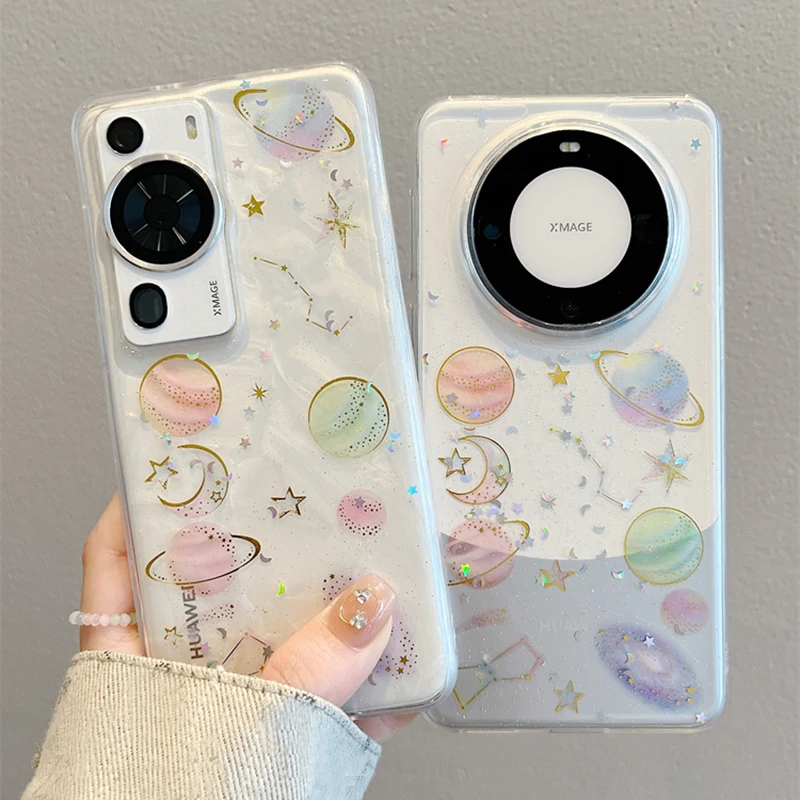 Comprar Funda transparente con purpurina para Huawei, Funda suave de epoxi, P60 Pro, P50, P40, P30 Pro, P40, P30 Lite, Mate 60 Pro, 50, 40, 30, 20 Pro