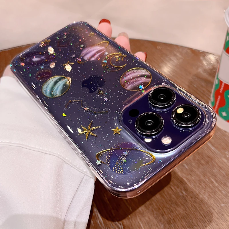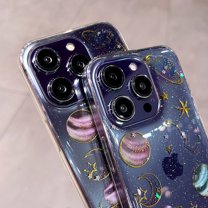 Comprar Funda transparente con purpurina para iPhone, carcasa suave a prueba de golpes para iPhone 15 Pro Max, 14, 13, 12, 11 Pro Max, XS Max, XR, X, 7, 8 Plus, SE2
