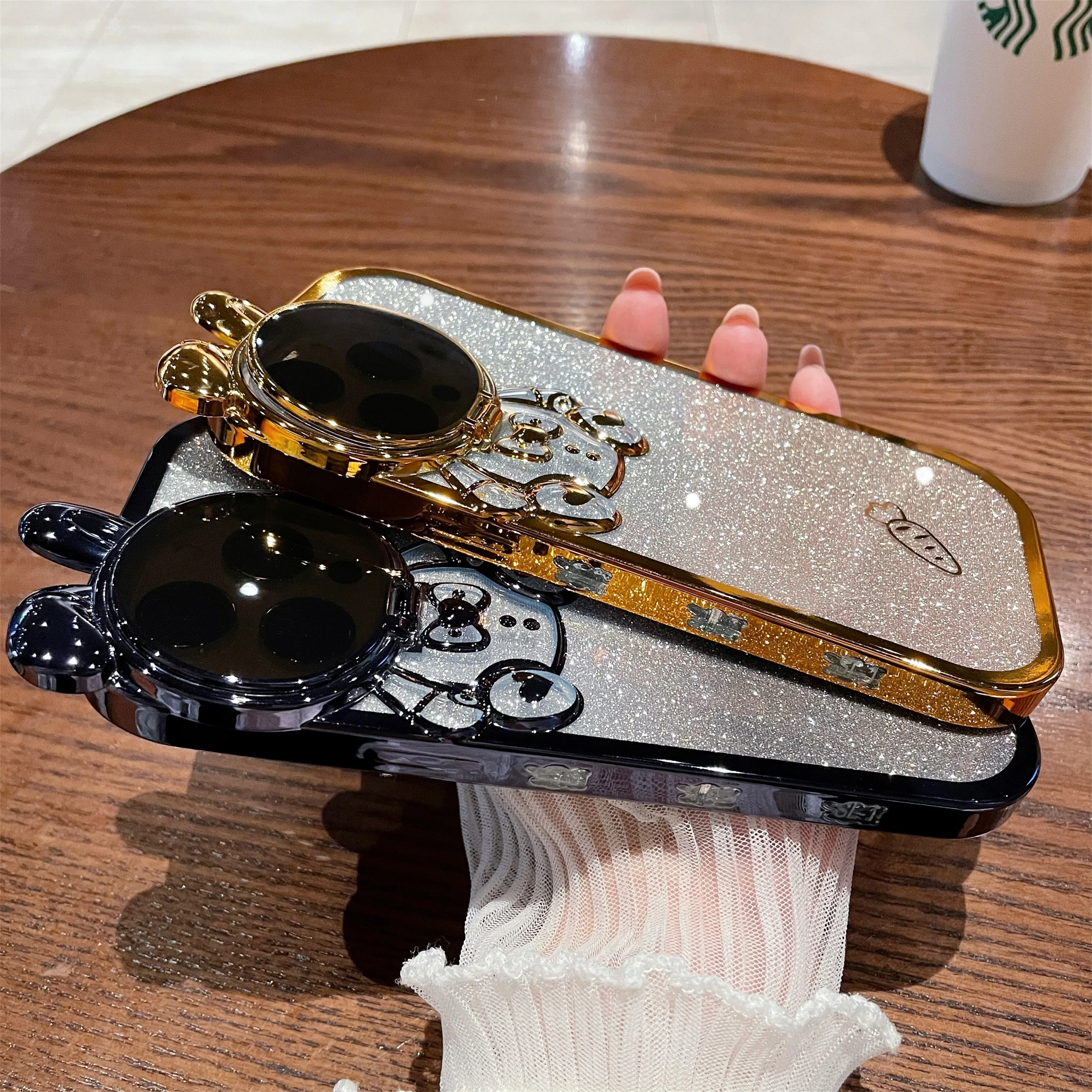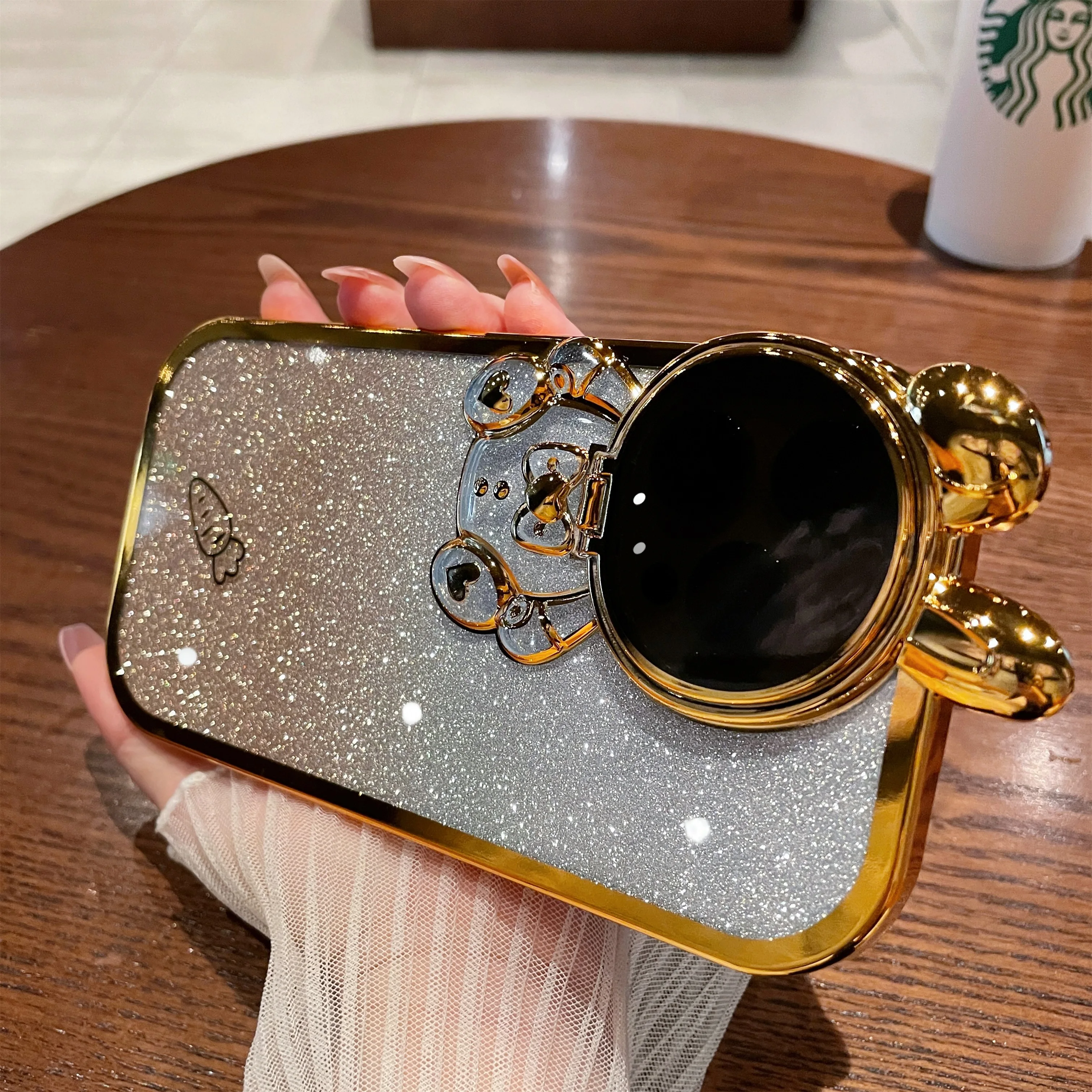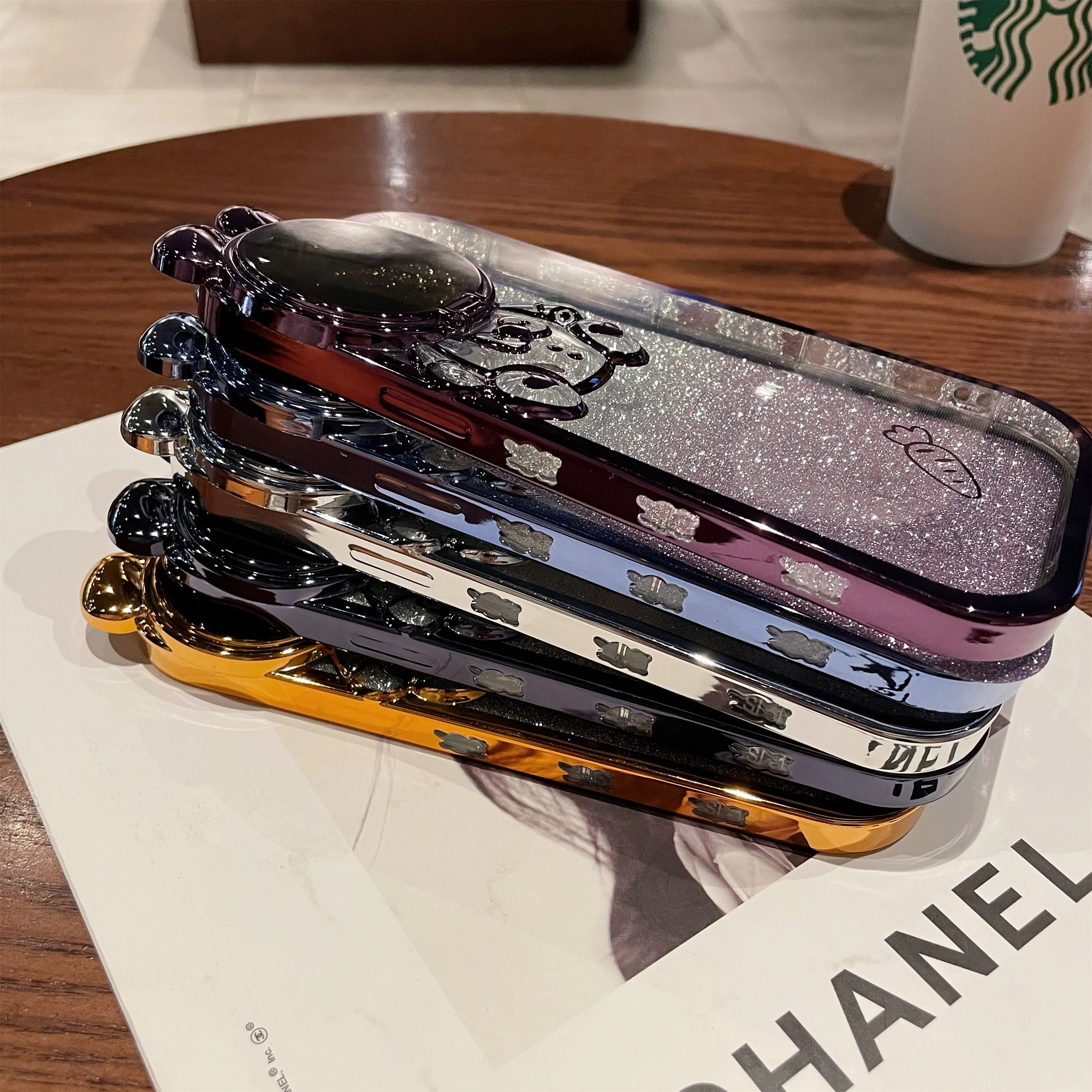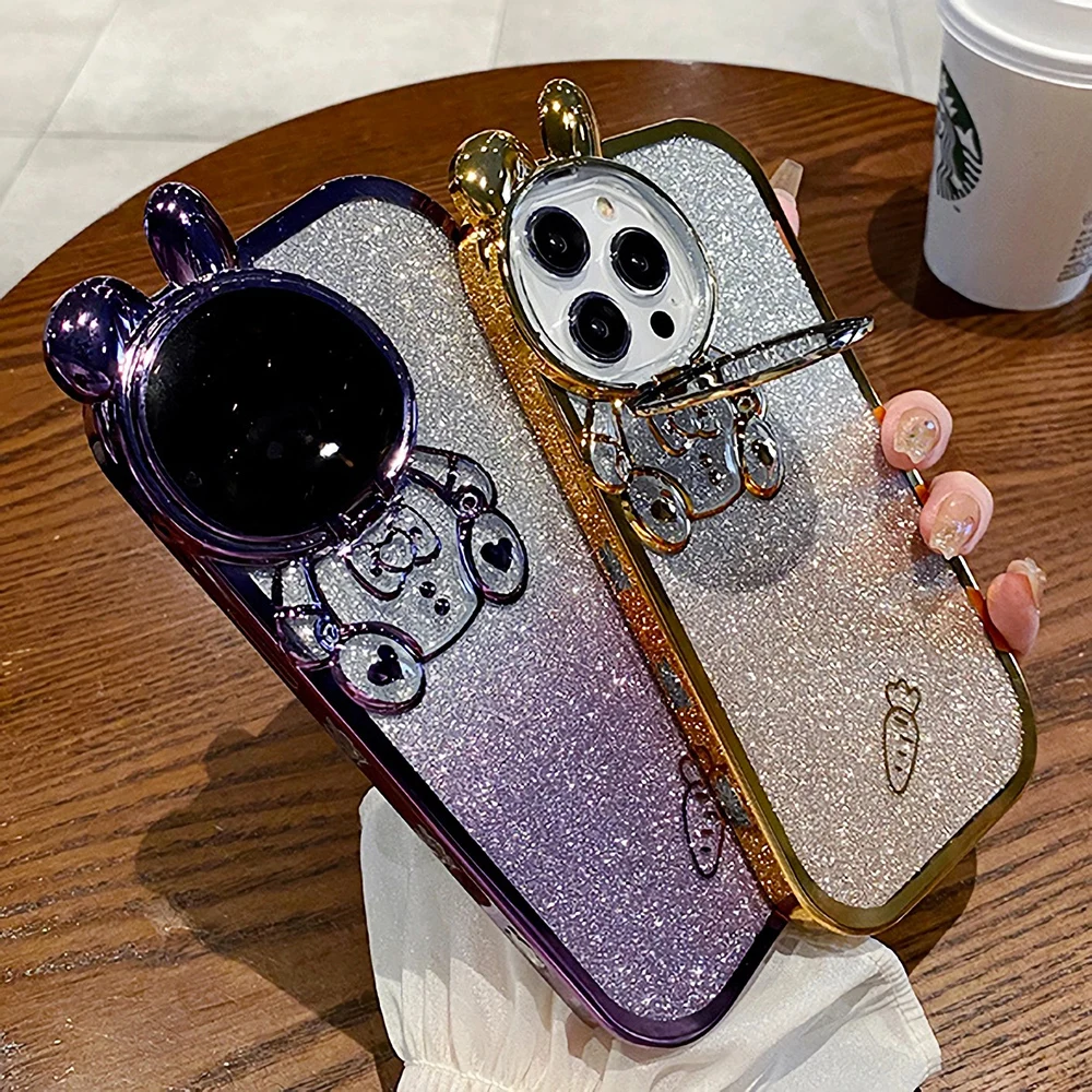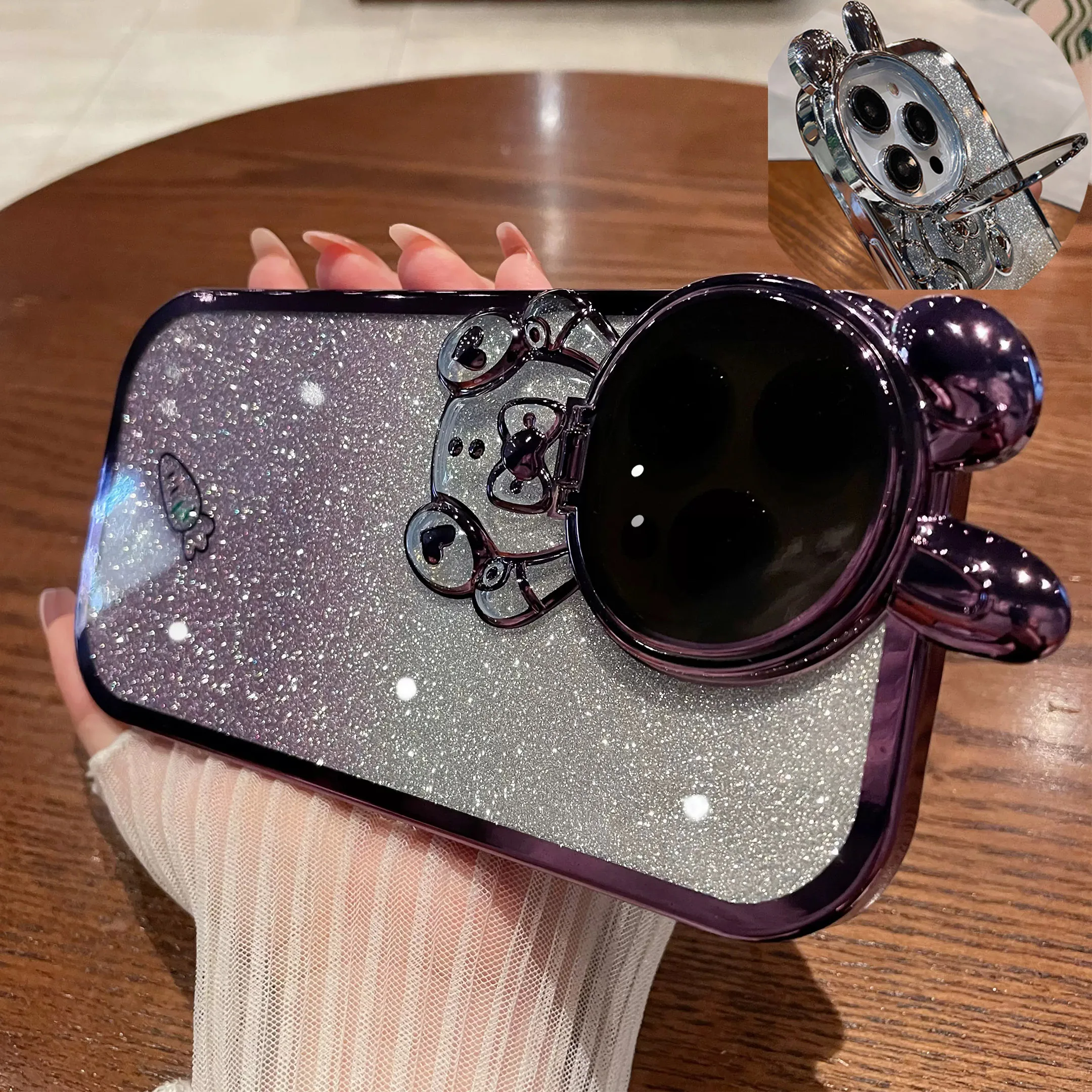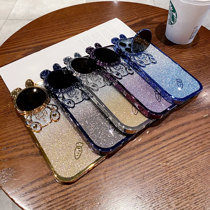 Comprar Funda transparente con purpurina para iPhone, Protector de cámara con soporte, suave y transparente, para modelos 11, 12, 13, 14 Pro Max, XR, XS Max