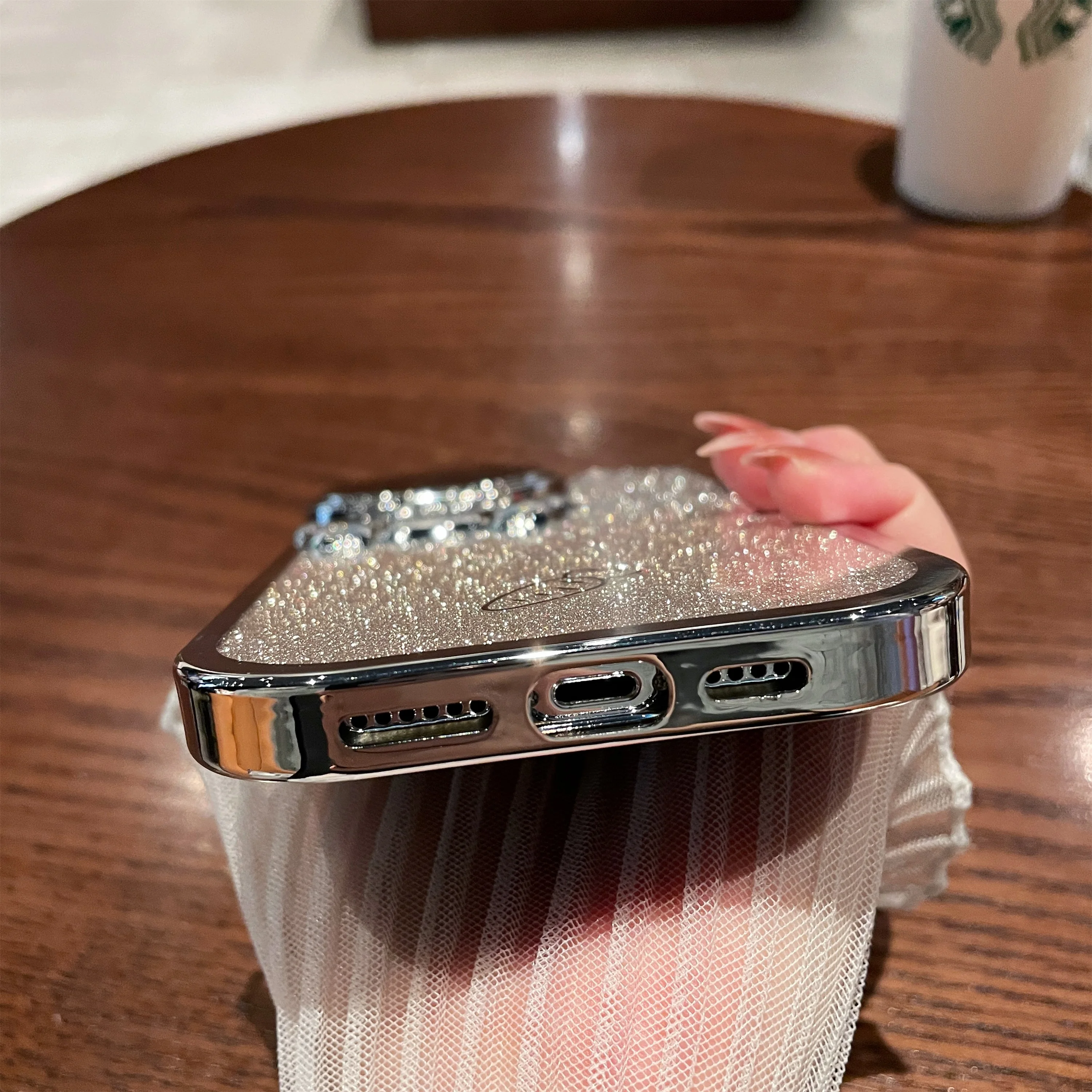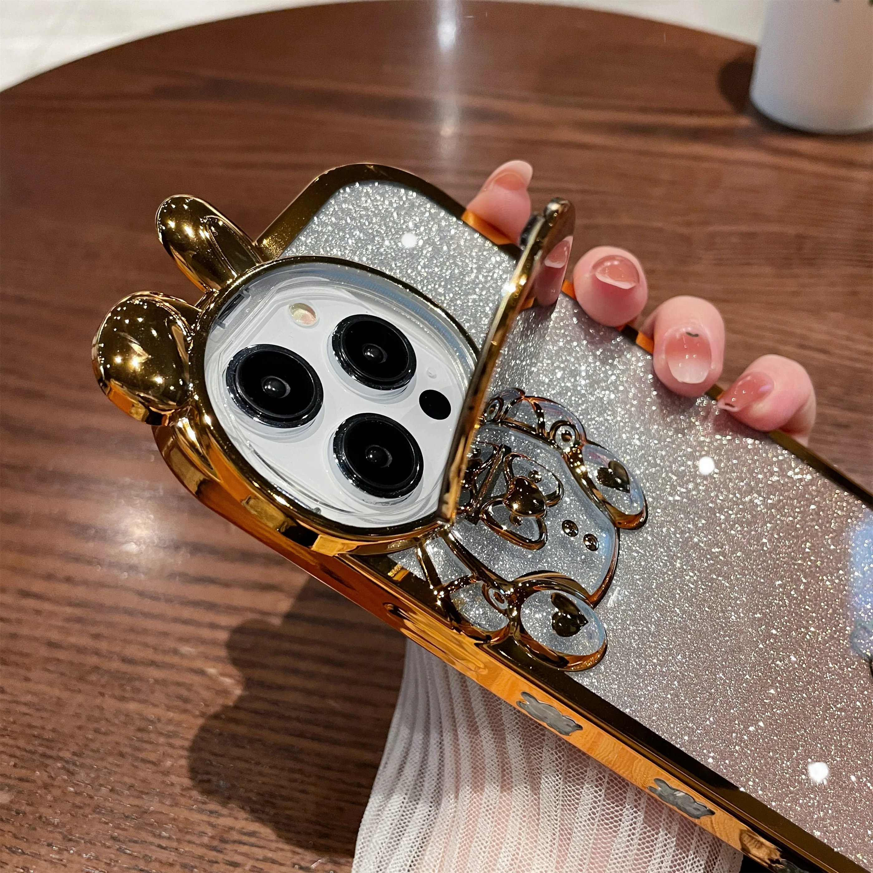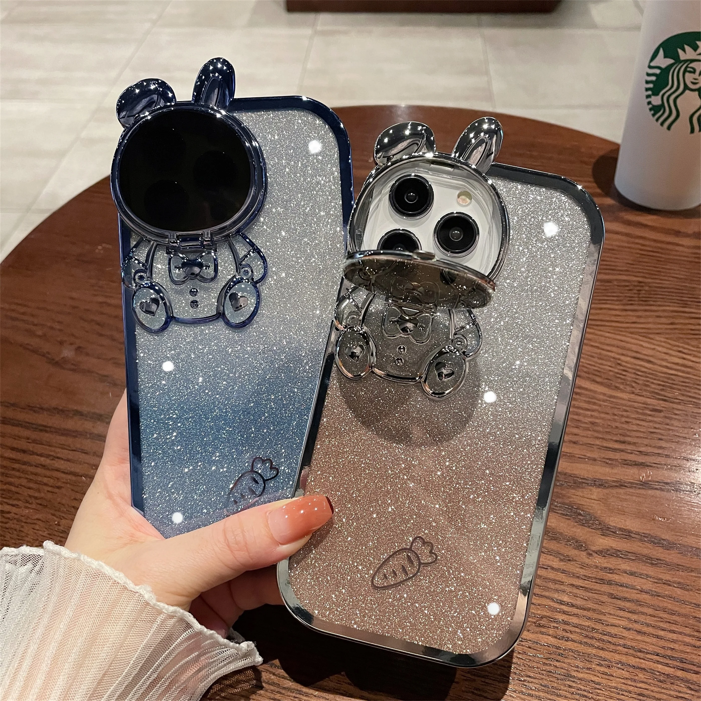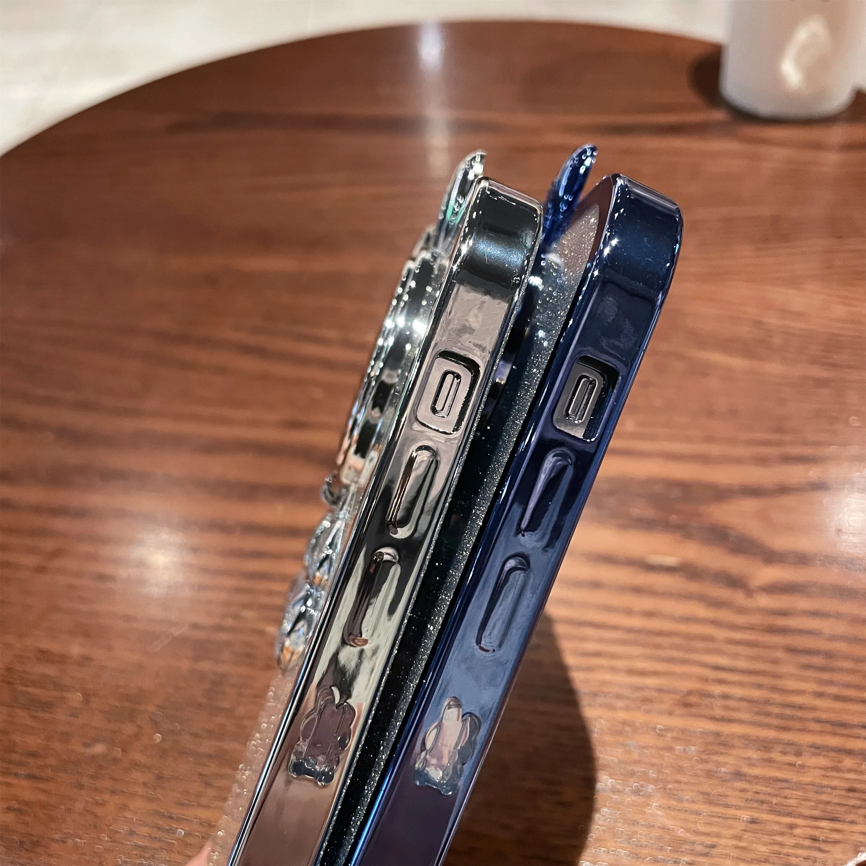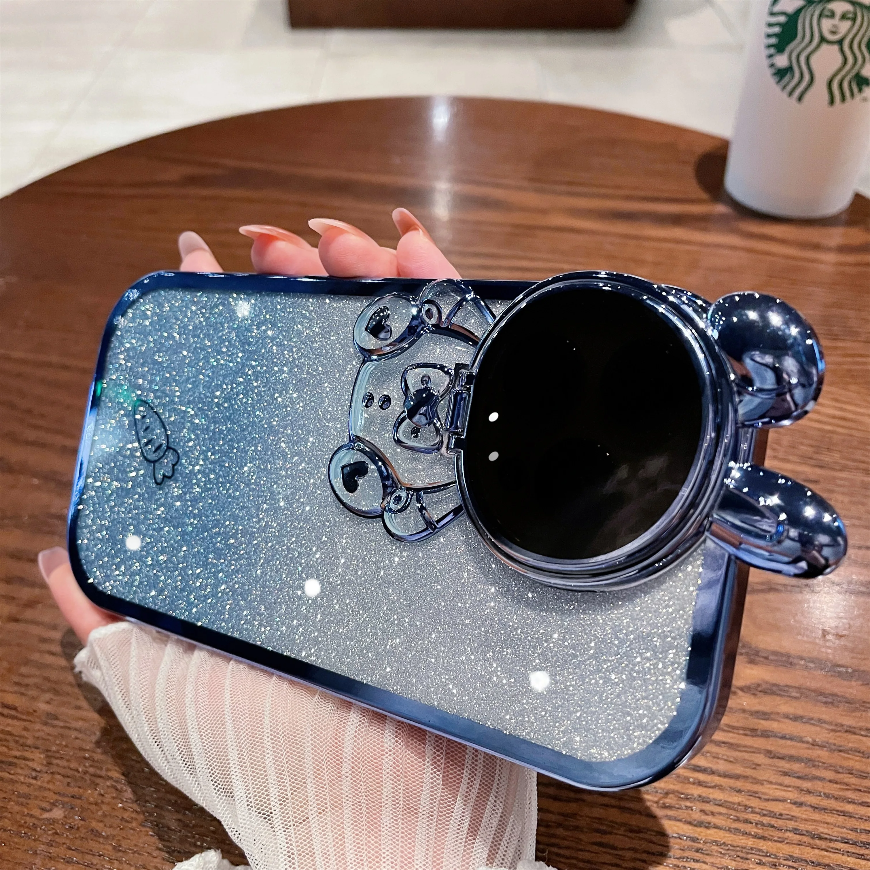 Comprar Funda transparente con purpurina para iPhone, Protector de cámara con soporte, suave y transparente, para modelos 11, 12, 13, 14 Pro Max, XR, XS Max