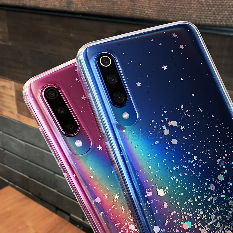 Comprar Funda transparente con purpurina para móvil, carcasa brillante para Redmi 9 9A, 9T, 9C, 8A, 7A, Note 9S, 8T, 7, 8, 9 Pro, Xiaomi Mi 9 Lite, SE, 9T, 10, POCO X3, NFC, M3