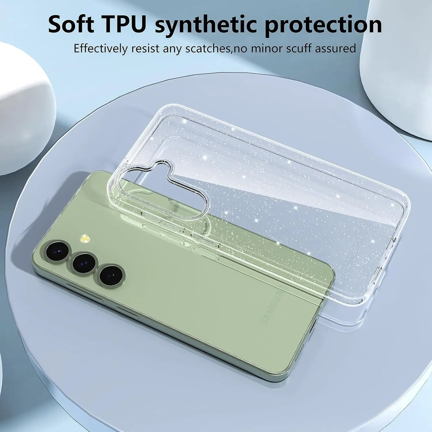 Funda transparente con purpurina para Samsung Galaxy S25 Ultra S24 Plus S23 FE S22 S21 S20 A55 5G A35 A25 A15 A16 A06 Accesorios de cubierta de teléfono