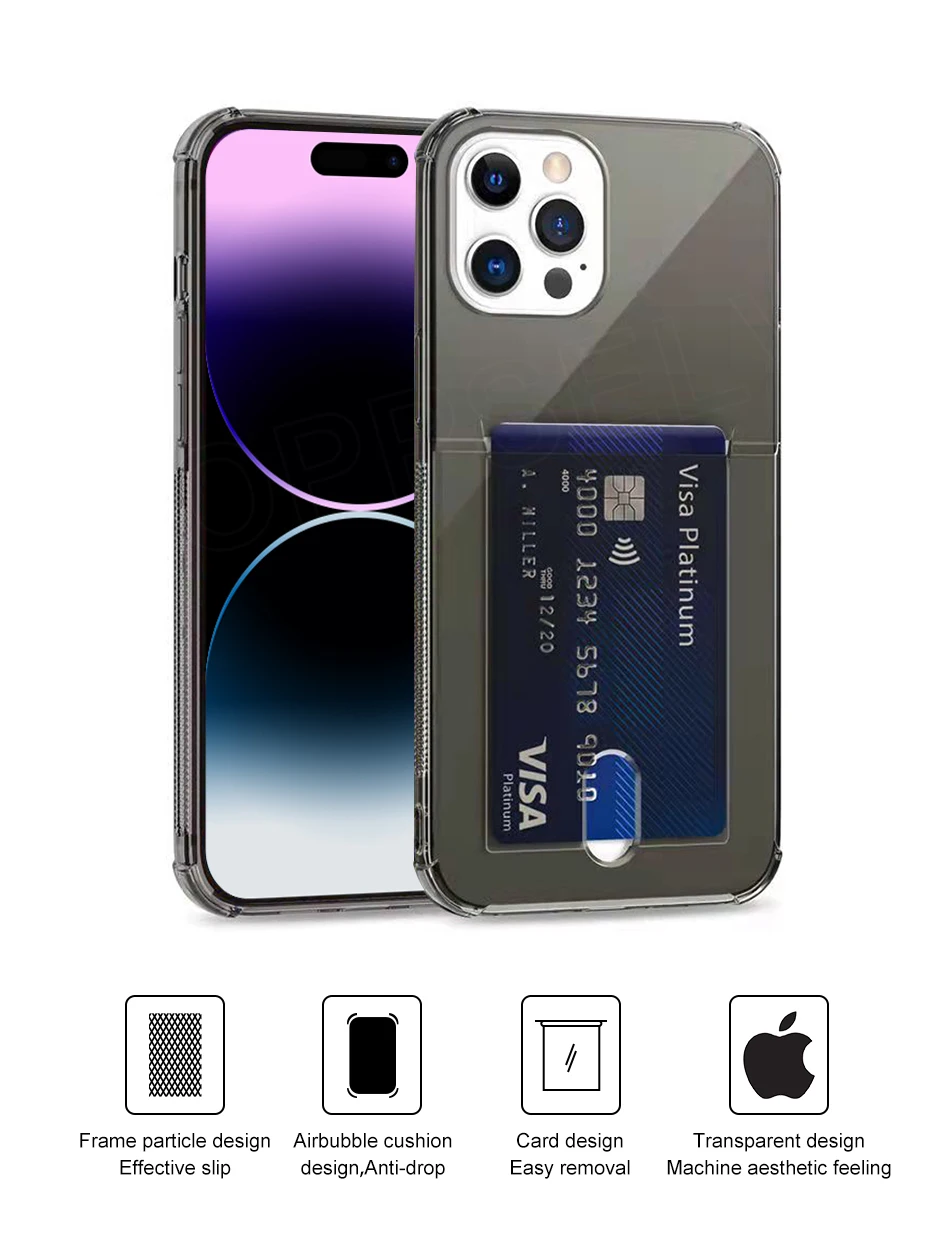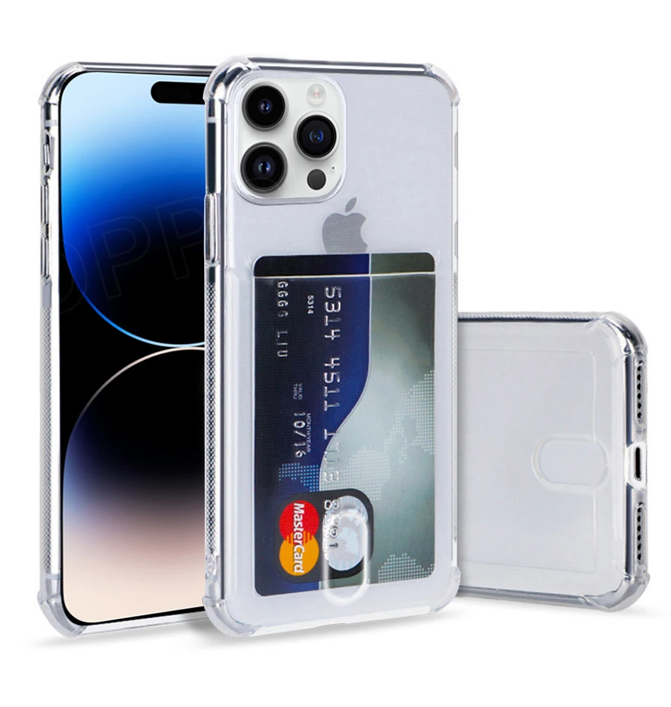 Comprar Funda transparente con ranura para tarjeta para iPhone 14 13 12 11 Pro XS Max protección de lente para iPhone SE X XR 6 7 8 Plus funda de silicona de lujo