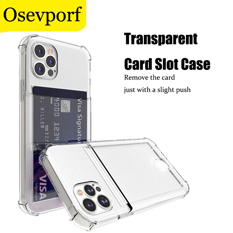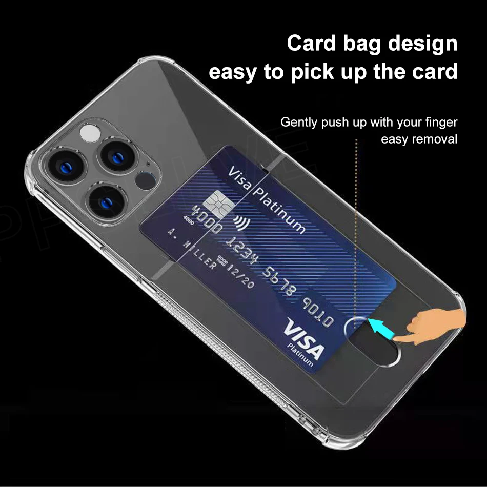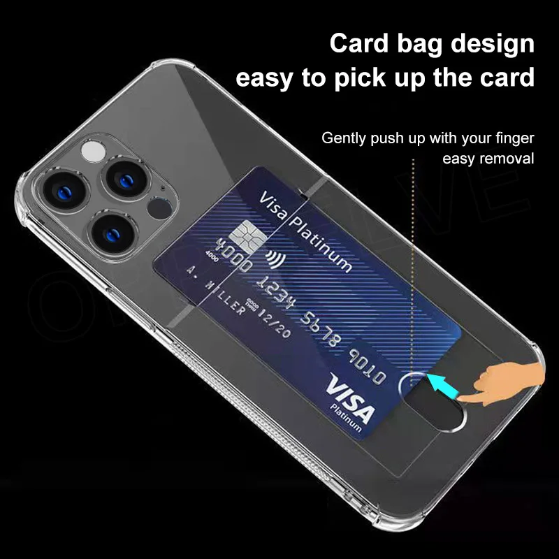 Funda transparente con ranura para tarjeta para iPhone 14 13 12 11 Pro XS Max protección de lente para iPhone SE X XR 6 7 8 Plus funda de silicona de lujo