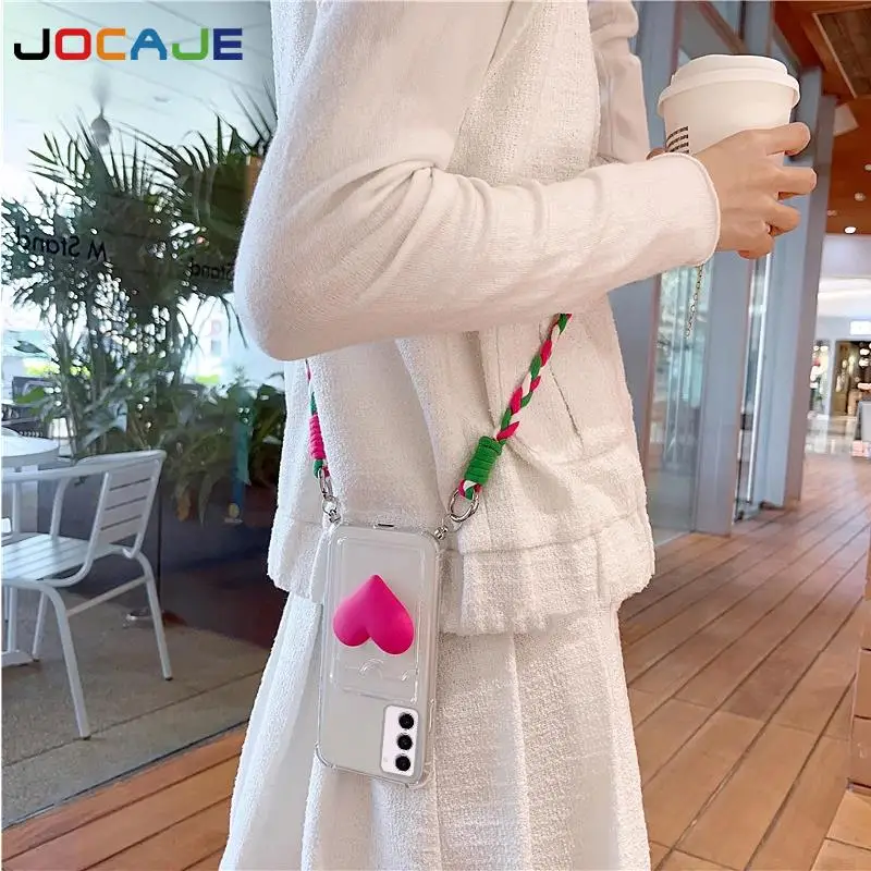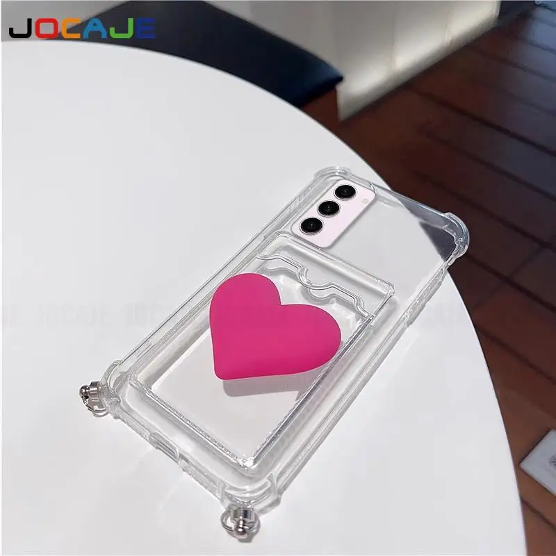 Funda transparente con ranura para tarjetas para Samsung S25 Ultra S24 FE S23 Plus S22 S21 S20 S10, funda cruzada con cordón a prueba de golpes