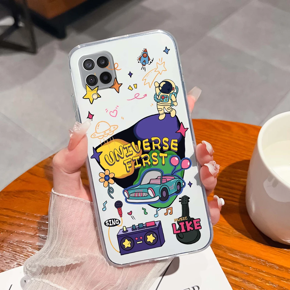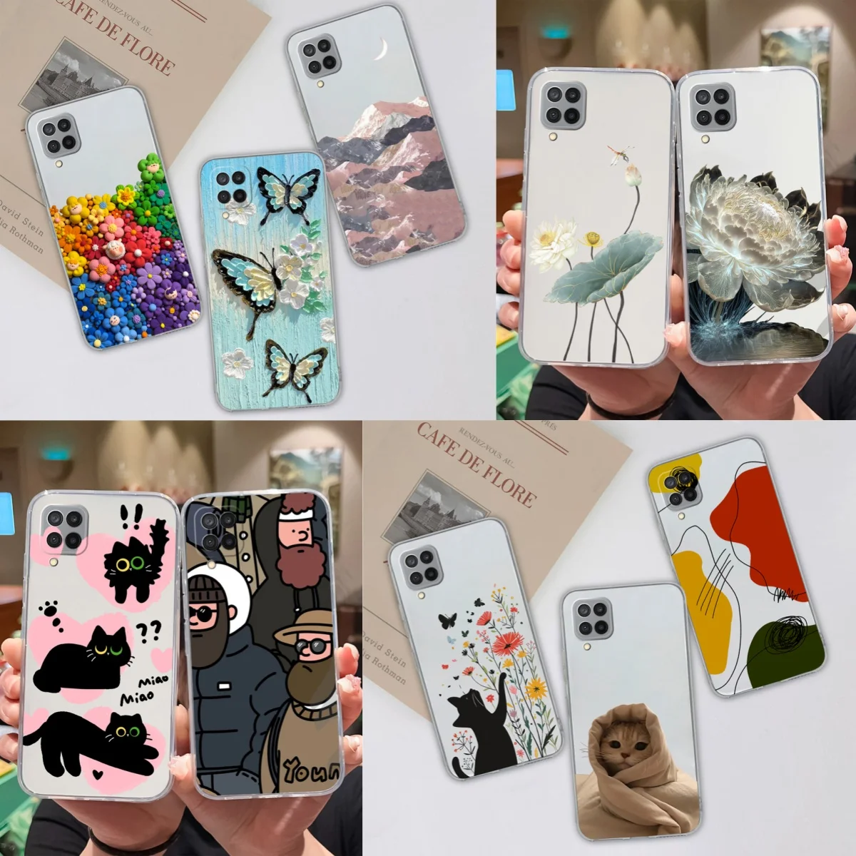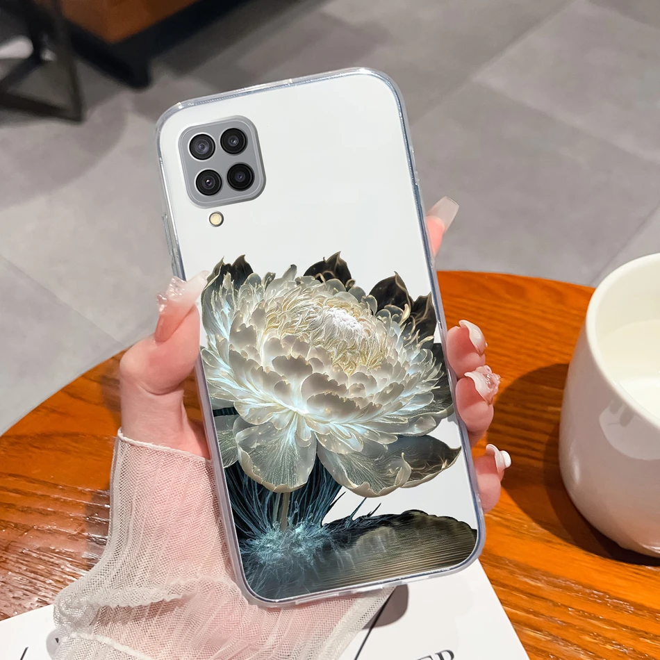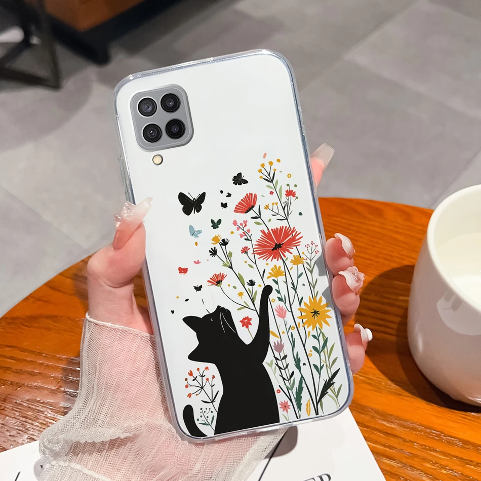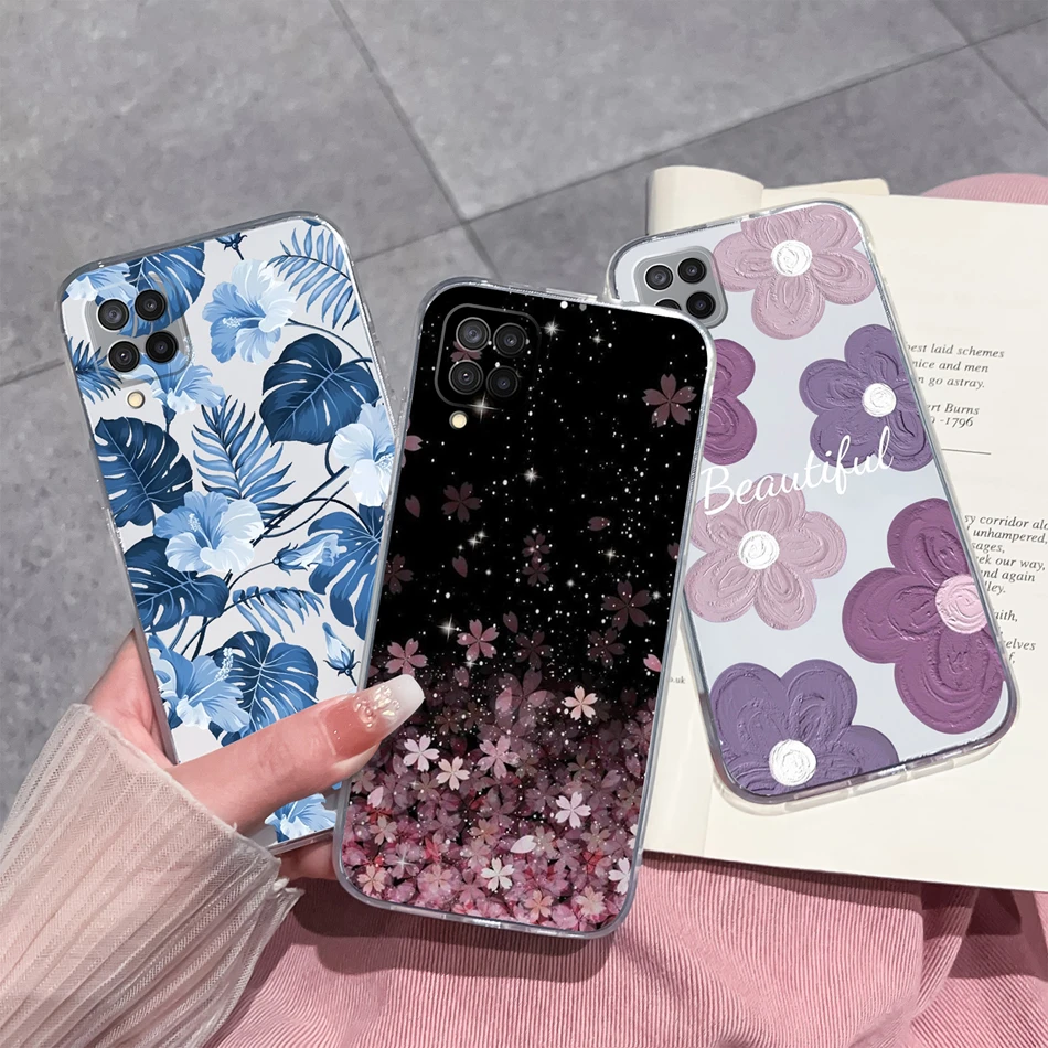 Comprar Funda transparente para Samsung A12, M12, F12, flores coloridas, Galaxy A 12, cubierta trasera suave y ligera, TPU, Capa protectora de silicona