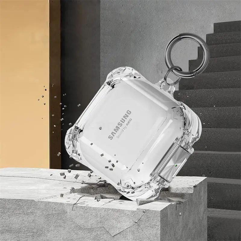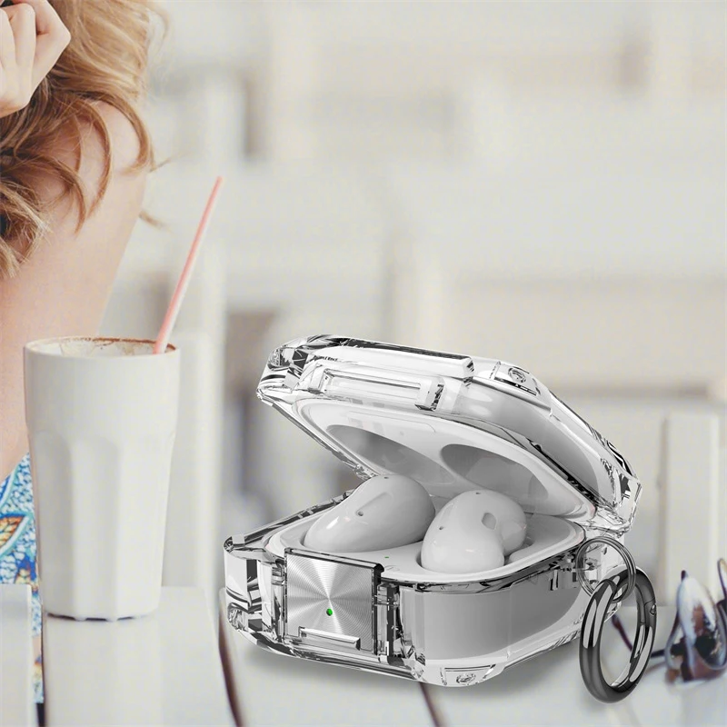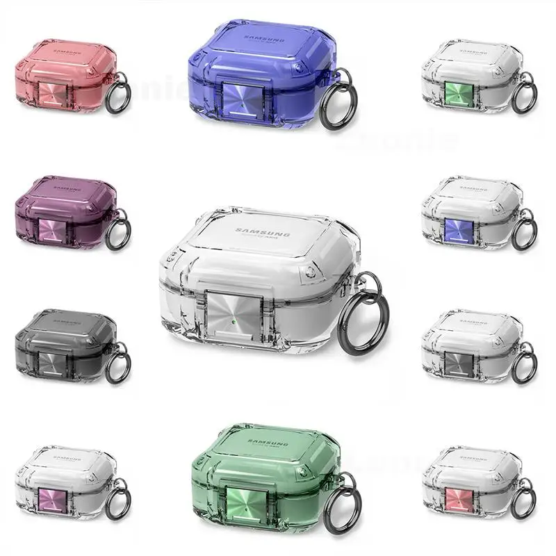 Transparent Switch Earphone Case For Samsung Galaxy Buds Live / Buds Pro / Buds 2 / Buds 2 Pro / Buds FE Cover with Ring Hook