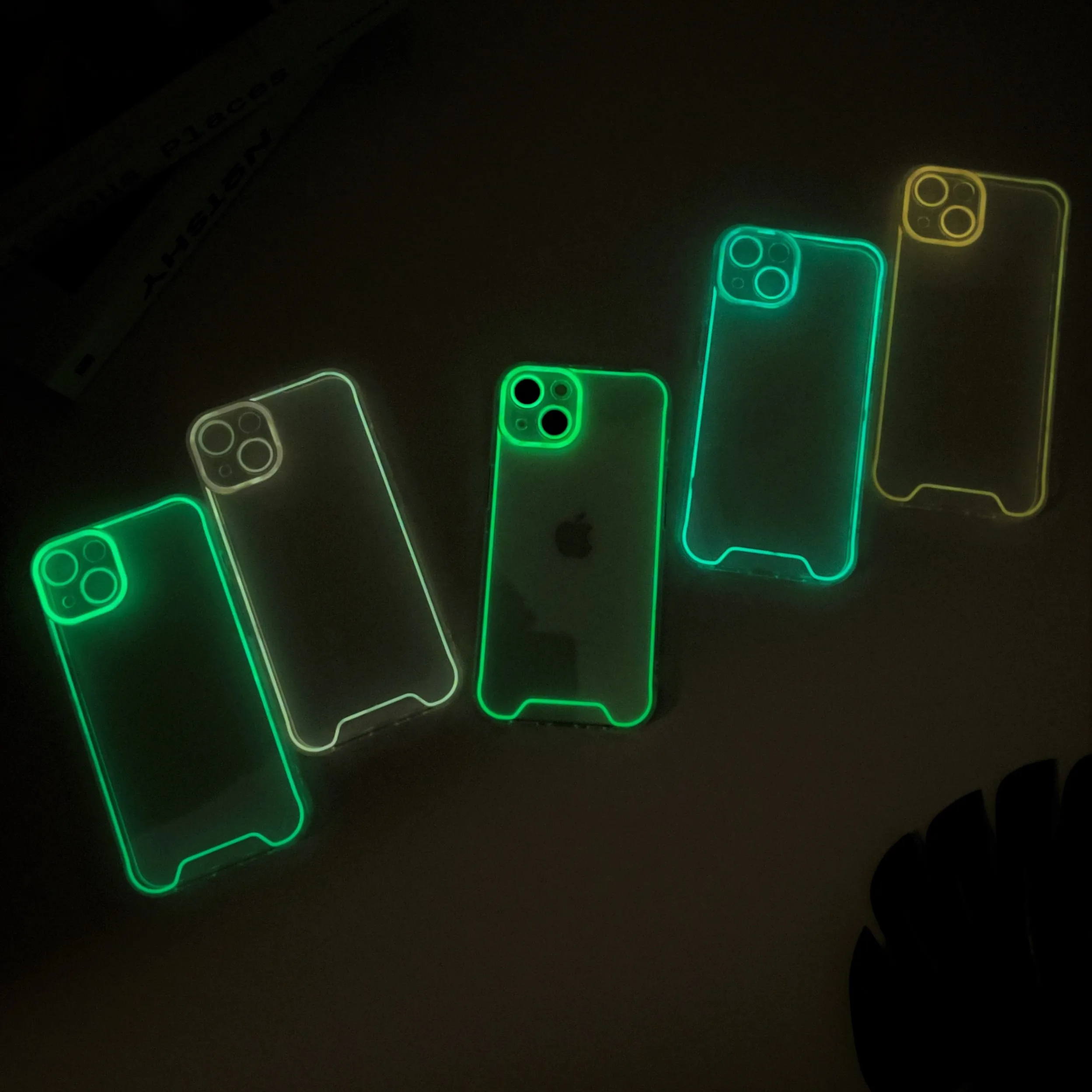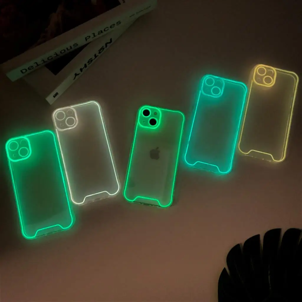 Funda transparente de silicona noctilucente de lujo para iPhone 14 13 12 11 Pro Max 14 Plus X XS Max XR cubierta luminosa suave con luz nocturna